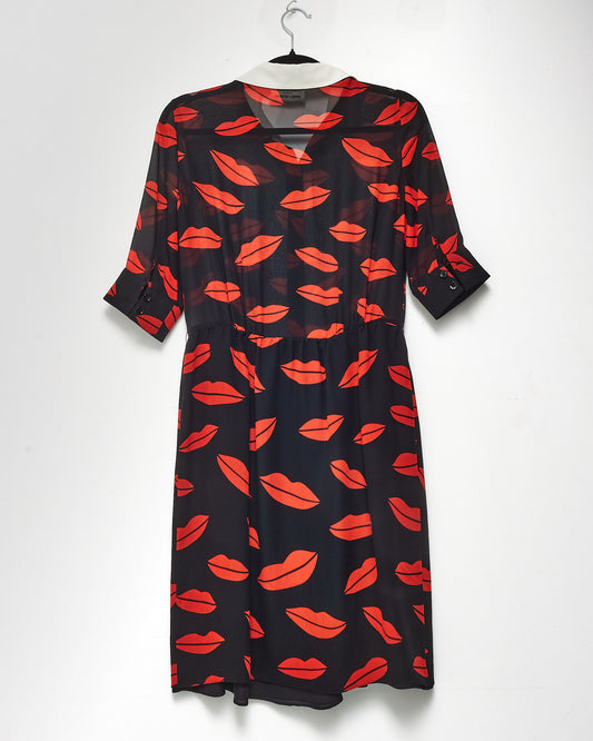 Red/Black Kiss Silk Cocktail Dress - 38F