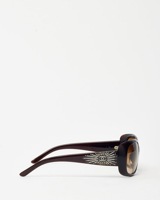 Brown 6026B Crystal Strass CC Logo Round Sunglasses