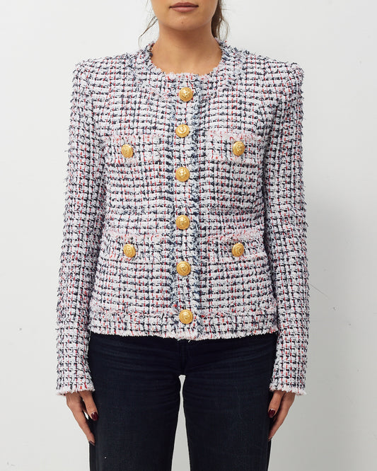 Red/White/Black Tweed Button Up Jacket - 38 FR/US 6