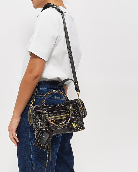 Black Croc Embossed Motocross Metallic Edge Mini City Bag