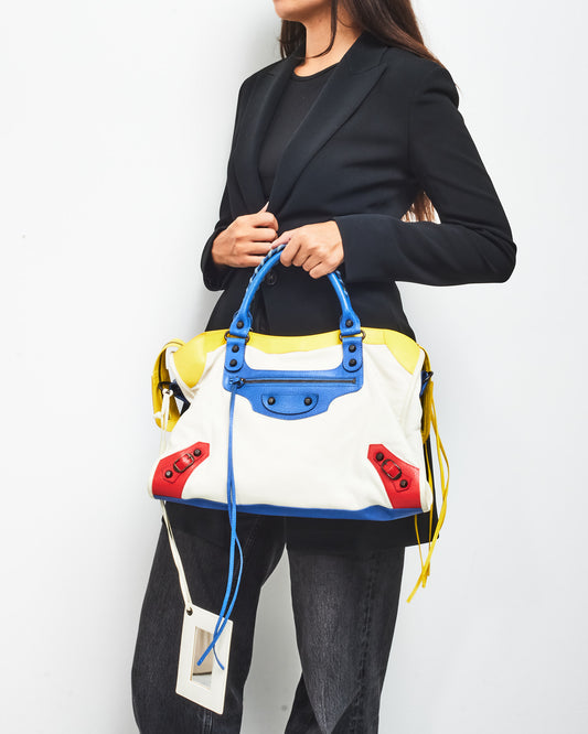 Explore Balenciaga's exquisite collection of handbags, featuring this certified pre-owned White Leather Mondrian LEGO City Bag. Embodying timeless elegance and modern sustainability, each piece, including favorites like this, is authenticated by Retyche. Discover sustainable luxury — shop our current treasures or find inspiration for your next coveted find.