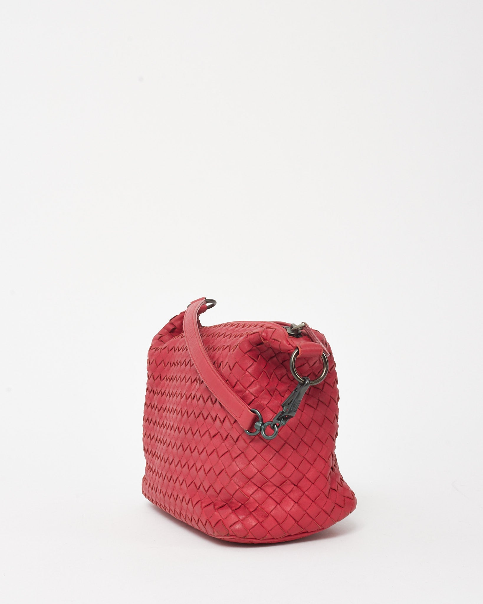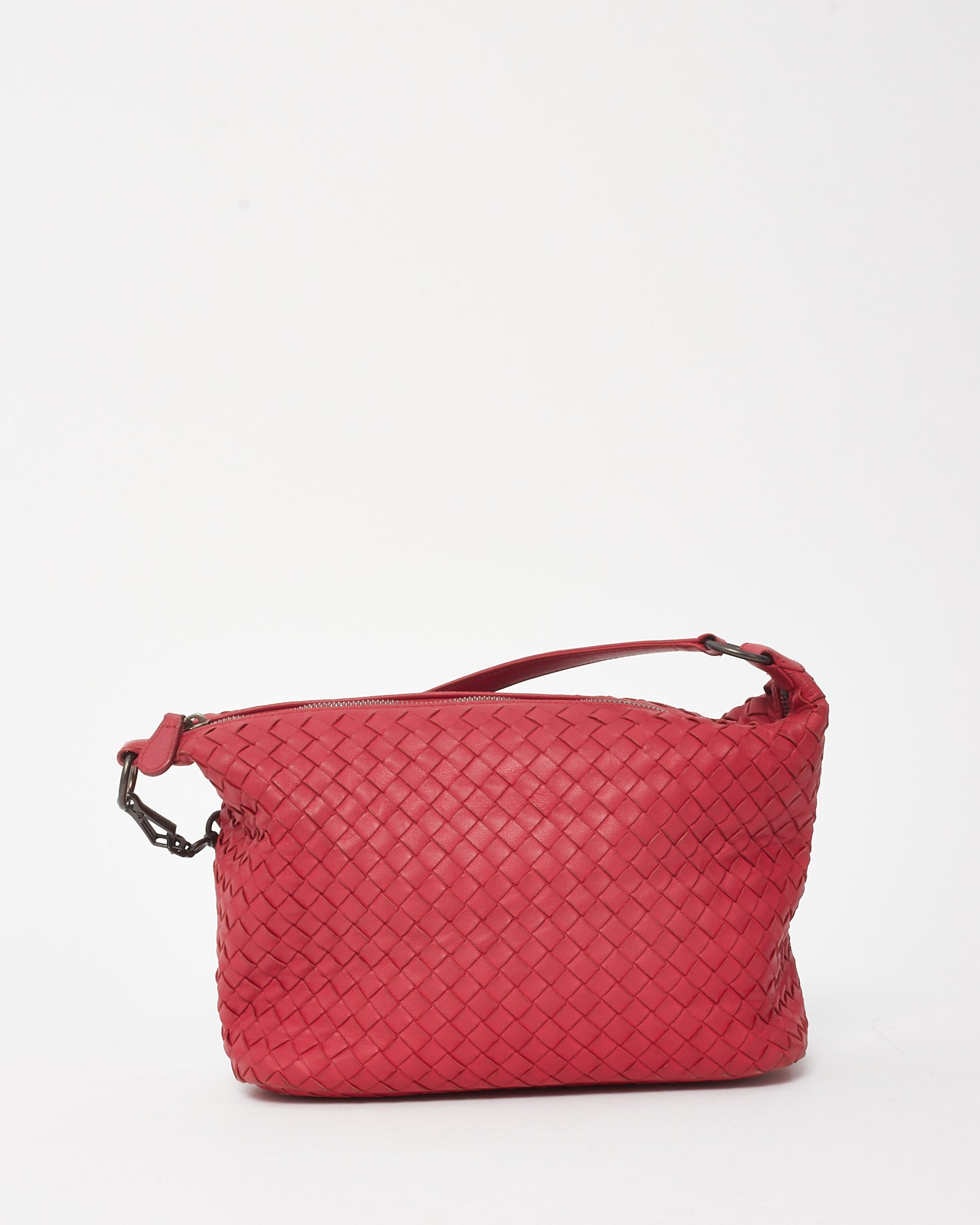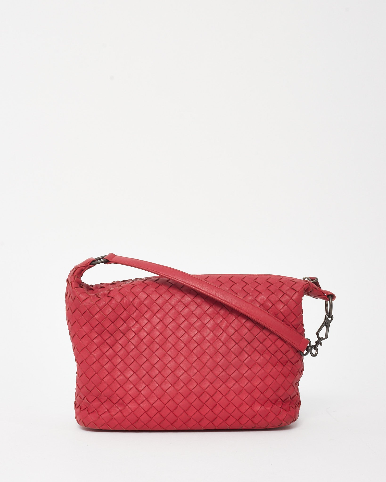 Fuchsia Red Intrecciato Leather Small Zip Hobo Shoulder Bag