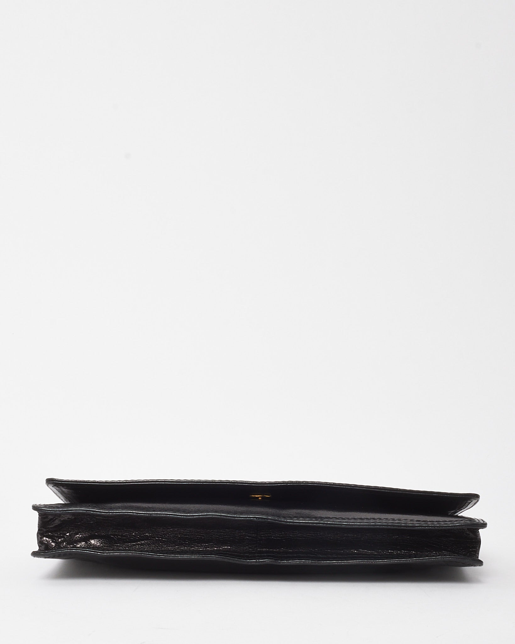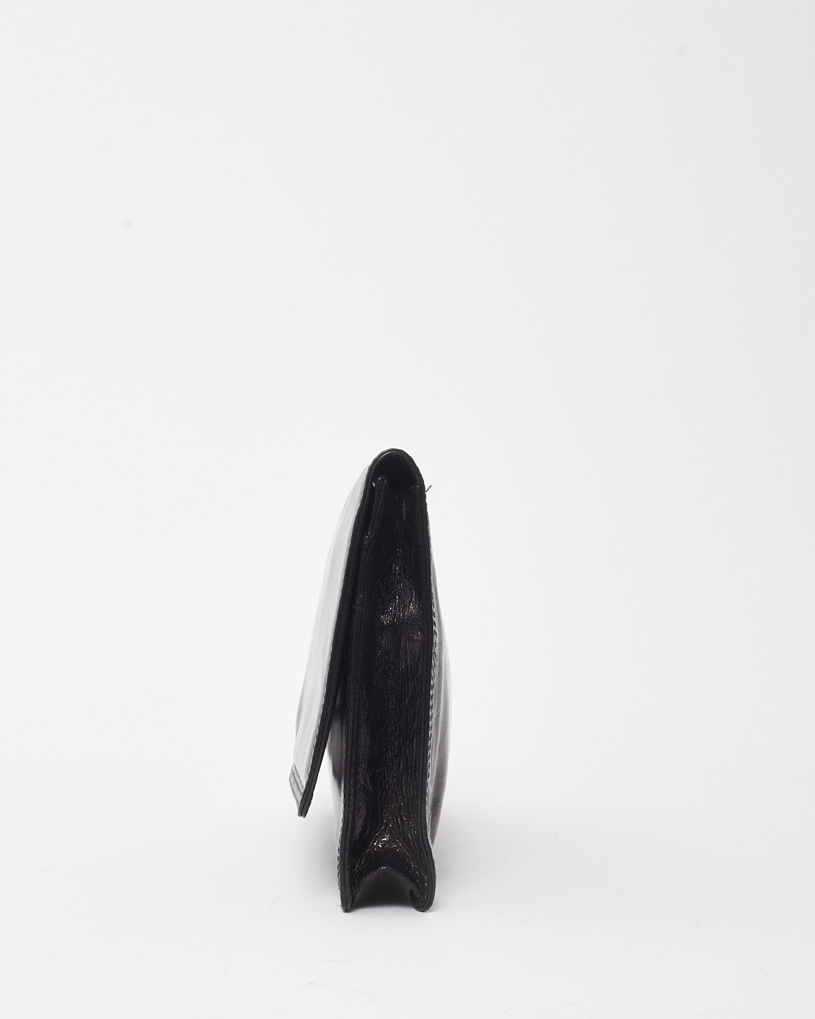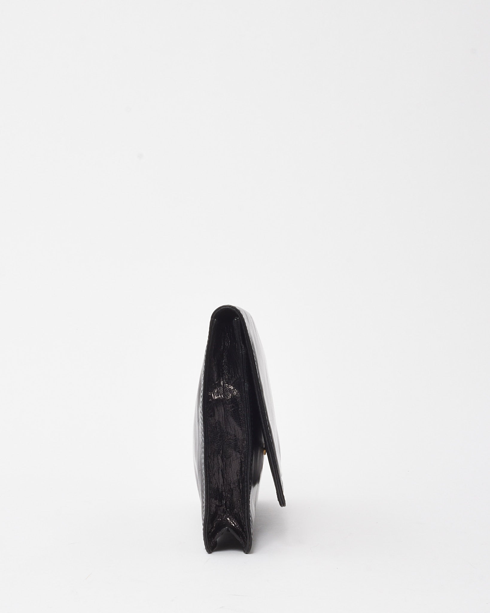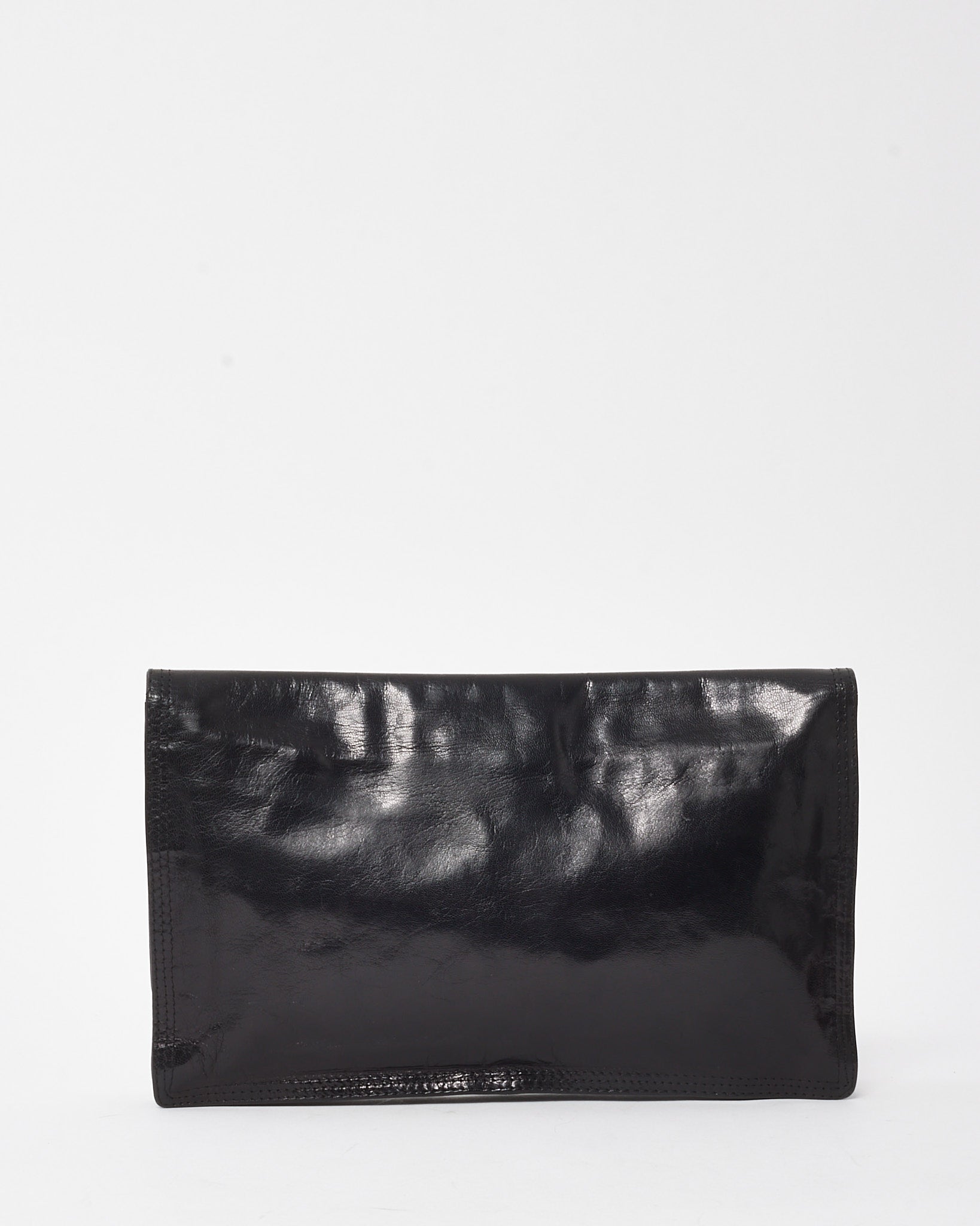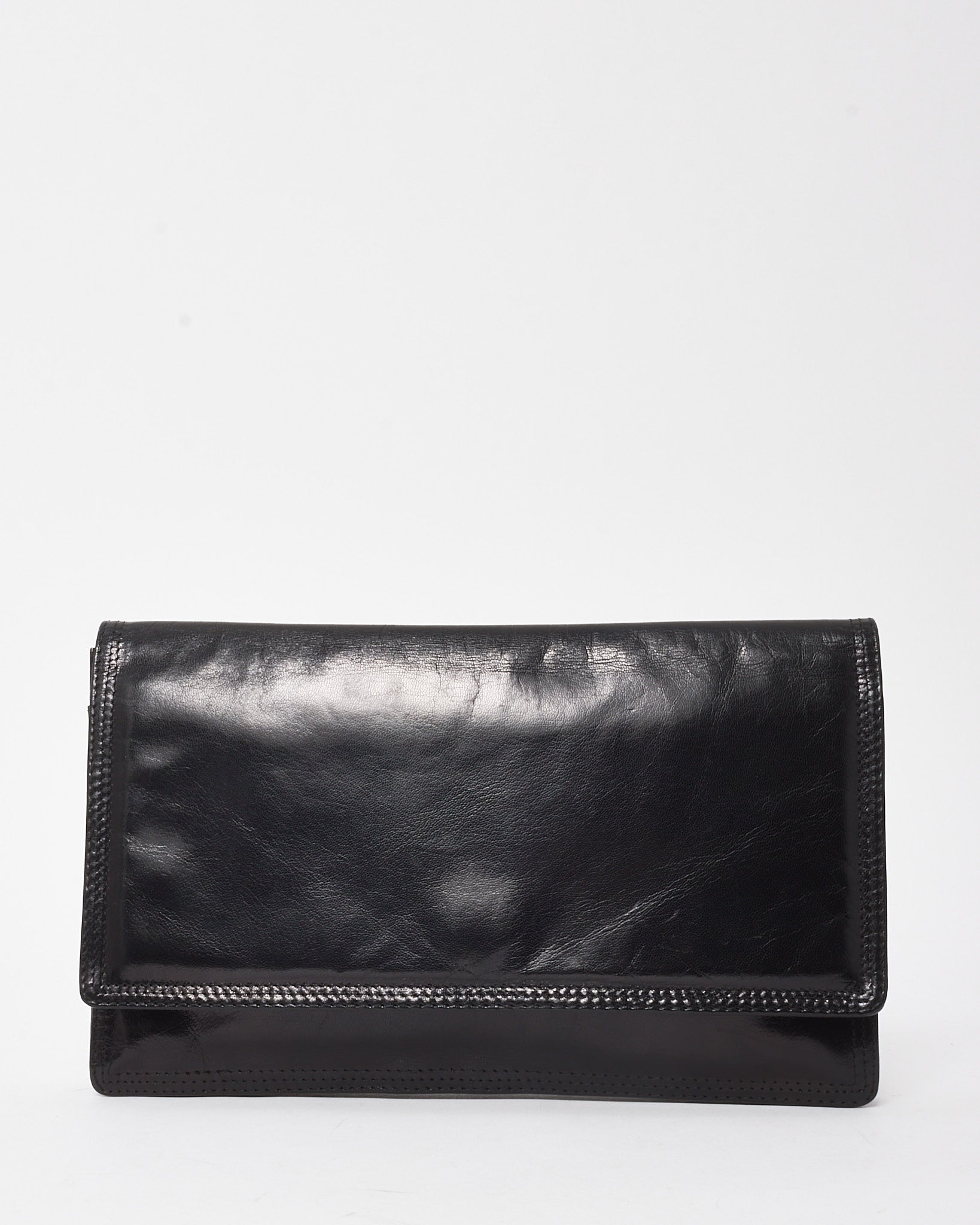 Vintage Black Glazed Calfskin Fold Over Clutch