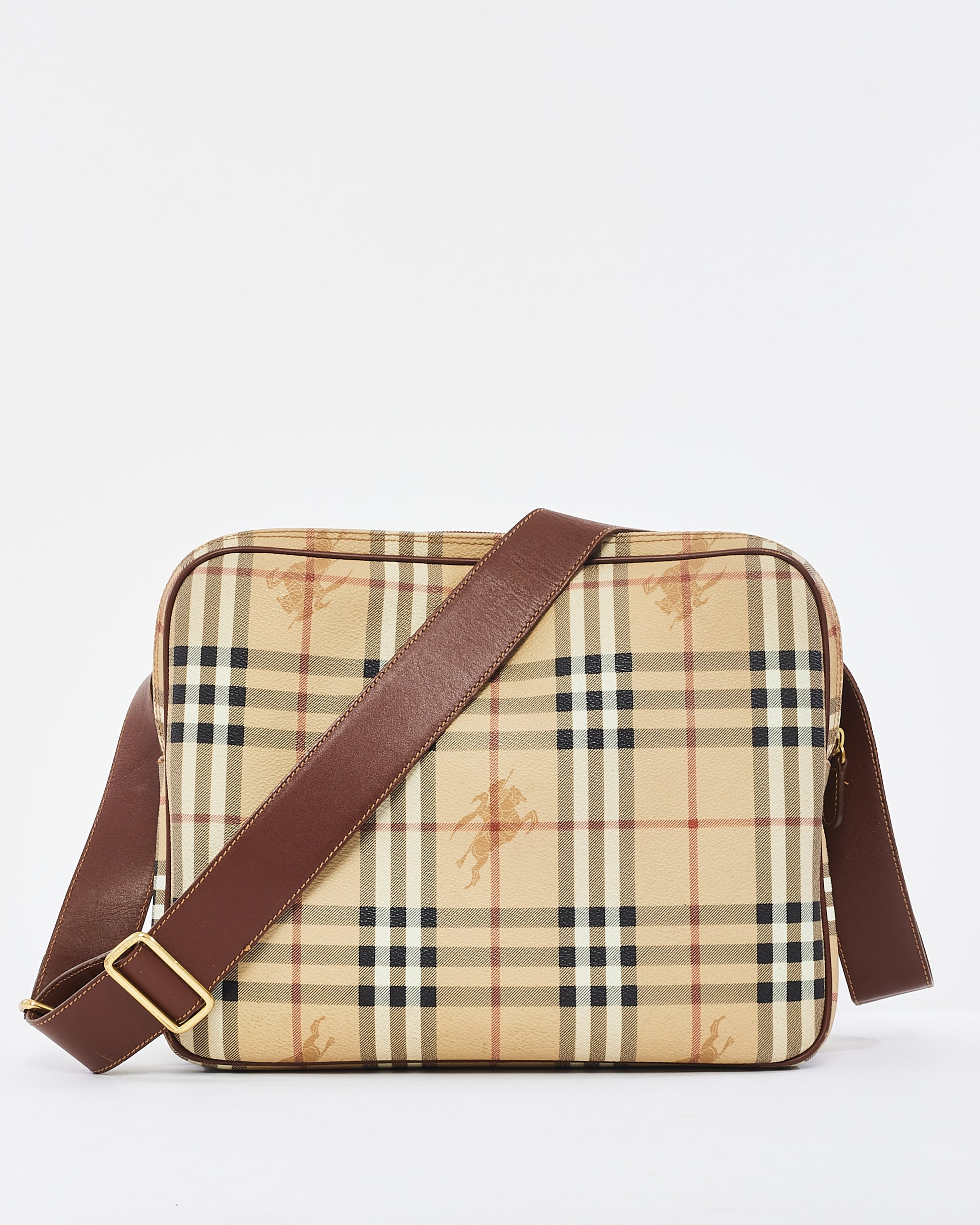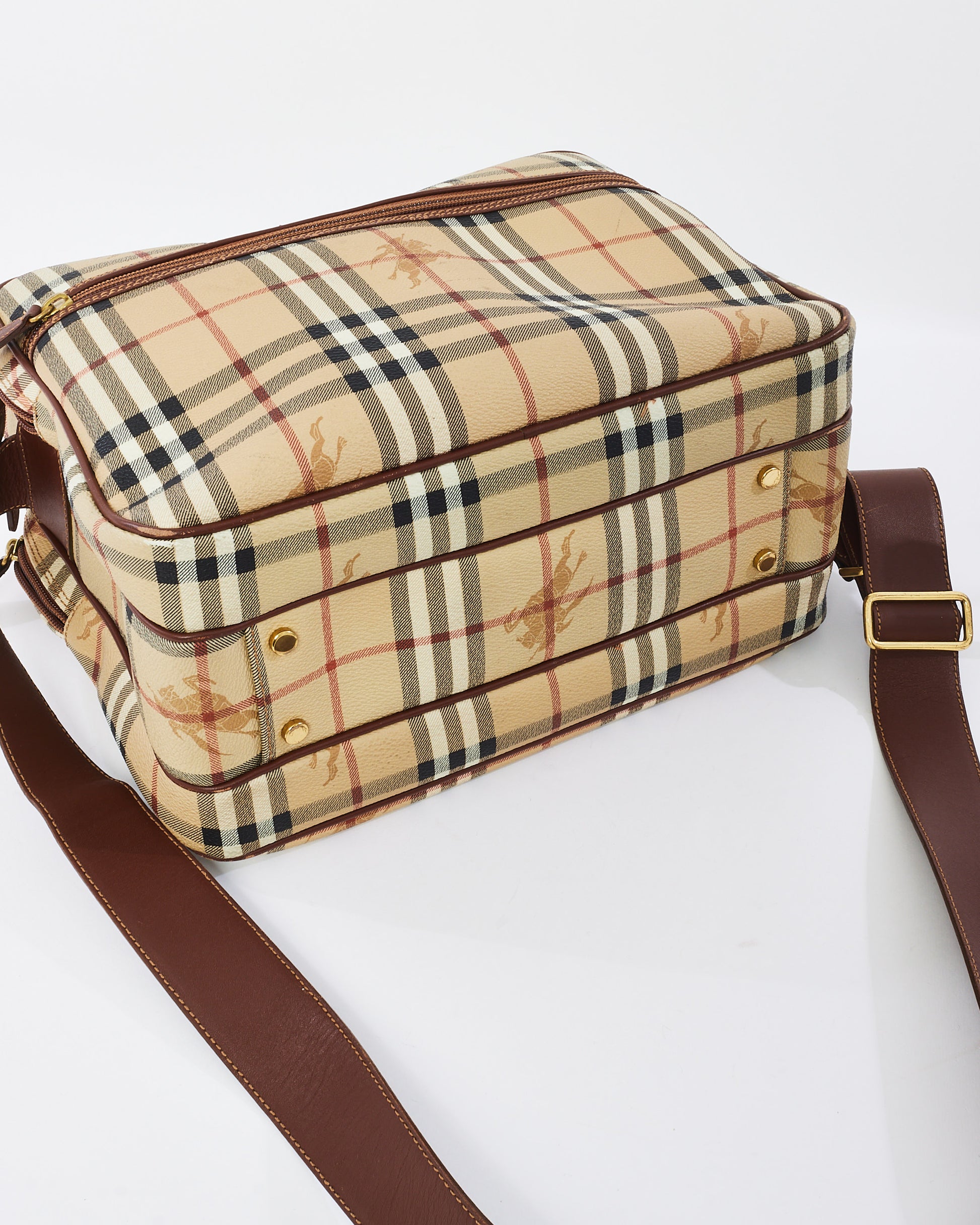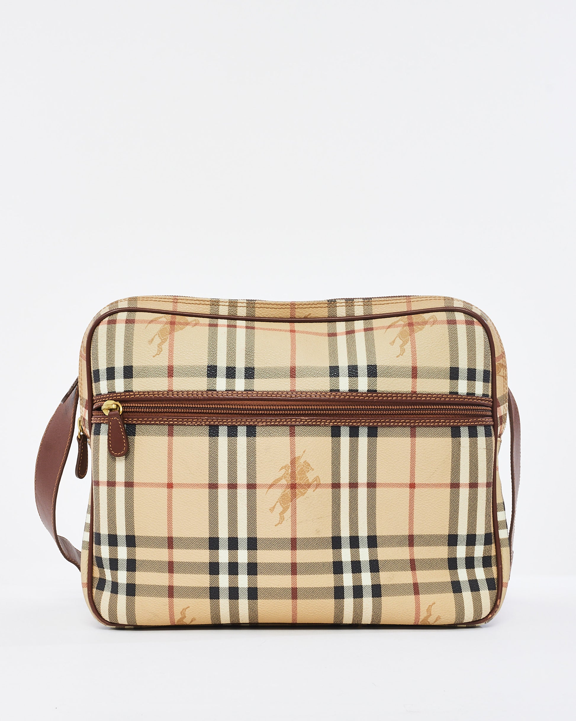 Vintage Beige Haymarket Check Coated Canvas Large Messenger Bag