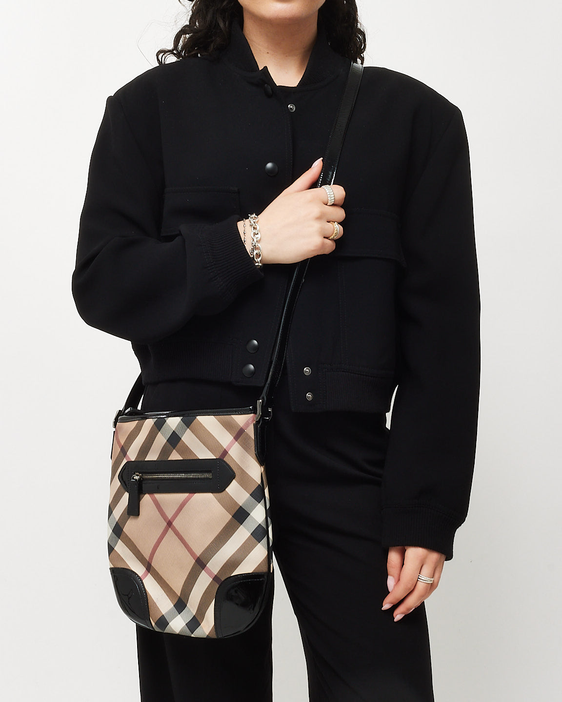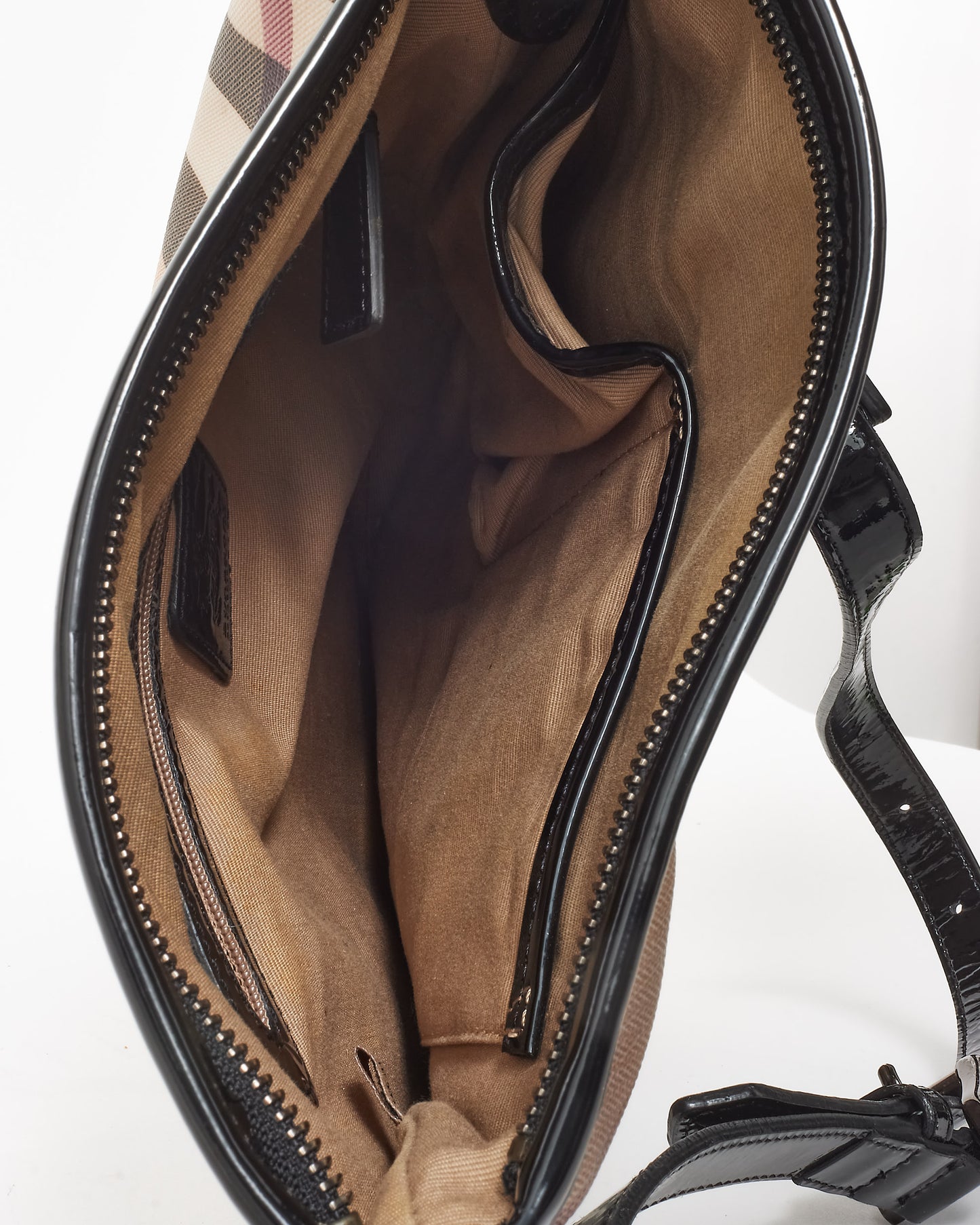 Beige Nova Check Coated Canvas Black Patent Trim Dryden Crossbody Bag