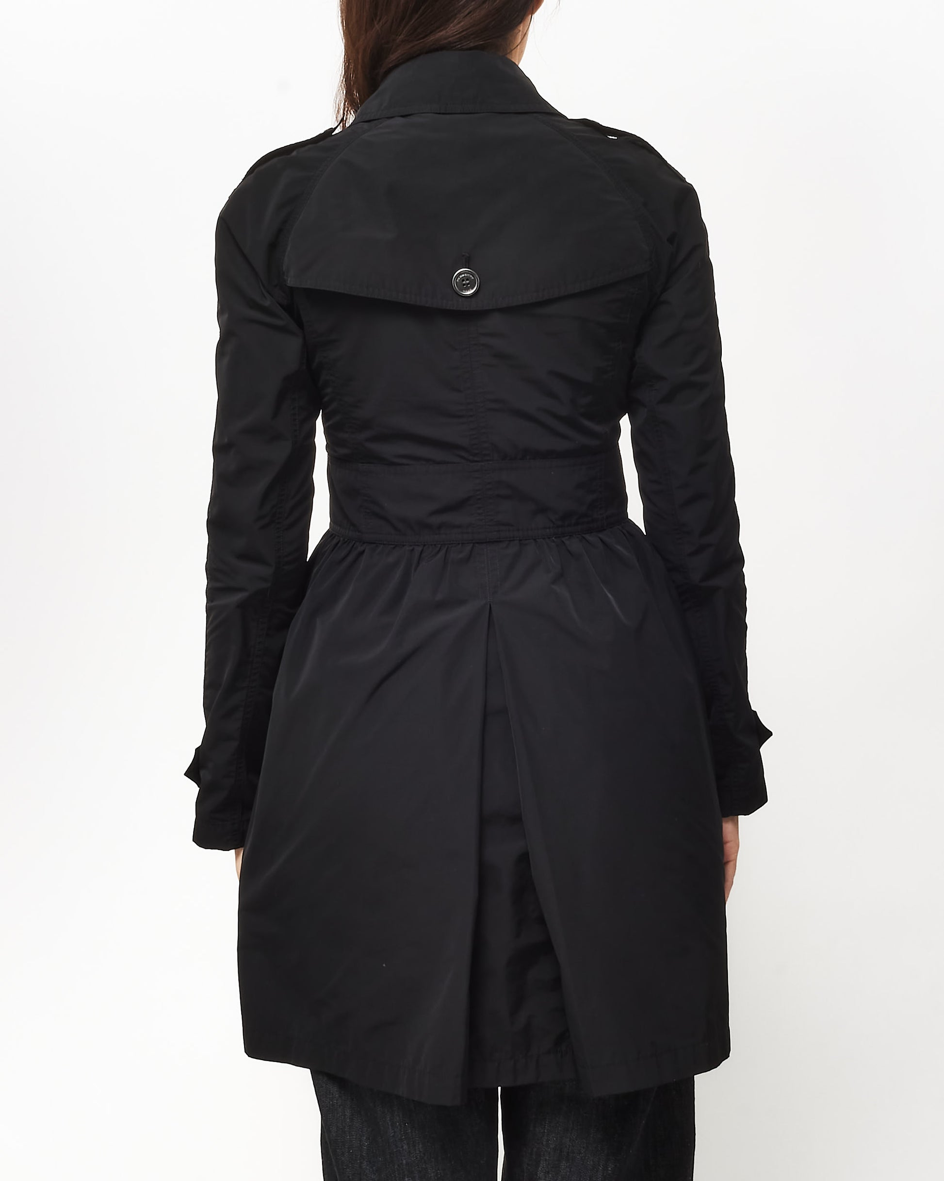 A modern take on an iconic silhouette, the authentic pre-owned Burberry Black Nylon Trench Coat blends timeless elegance with practical functionality. Crafted from lightweight and water-resistant black nylon, this trench coat is perfect for transitional weather while maintaining a polished look.