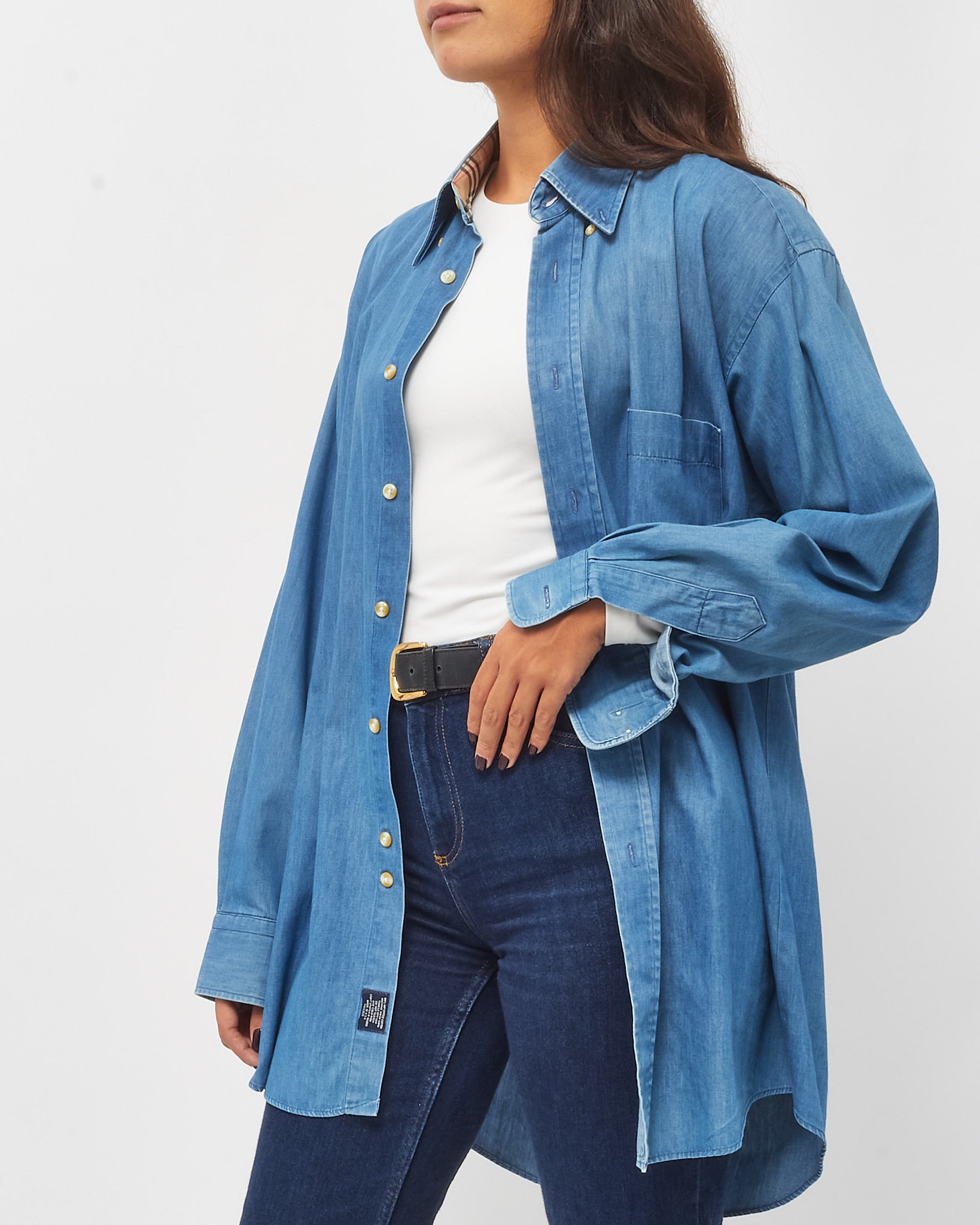 A refined staple with a nod to British heritage, this pre-loved authentic Burberry button-down shirt is crafted in soft denim blue cotton. The tailored silhouette is elevated by the brand’s signature check detailing along the collar interior—adding a subtle yet iconic accent. Designed with a classic point collar, full front button closure, and long sleeves with button cuffs, this versatile piece effortlessly transitions from casual outings to more polished occasions. A timeless addition to any wardrobe that embodies Burberry’s fusion of tradition and contemporary ease.