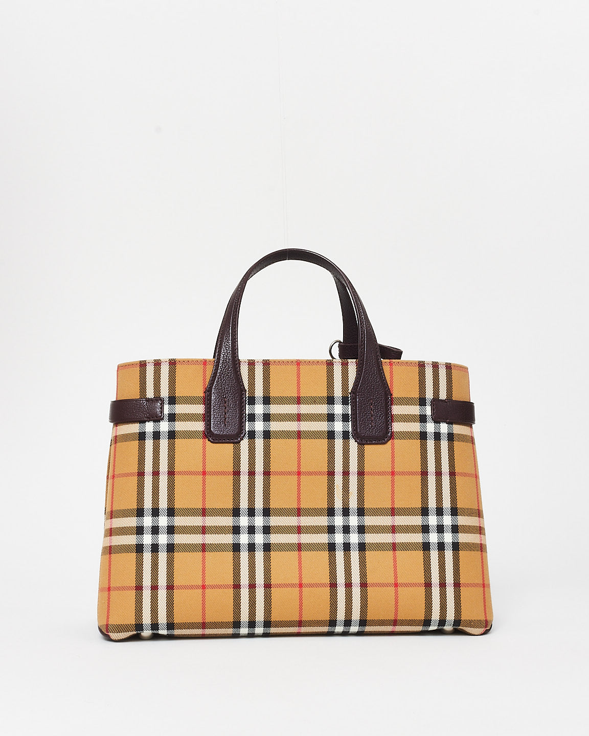 Vintage Check Canvas & Burgundy Leather Banner Tote