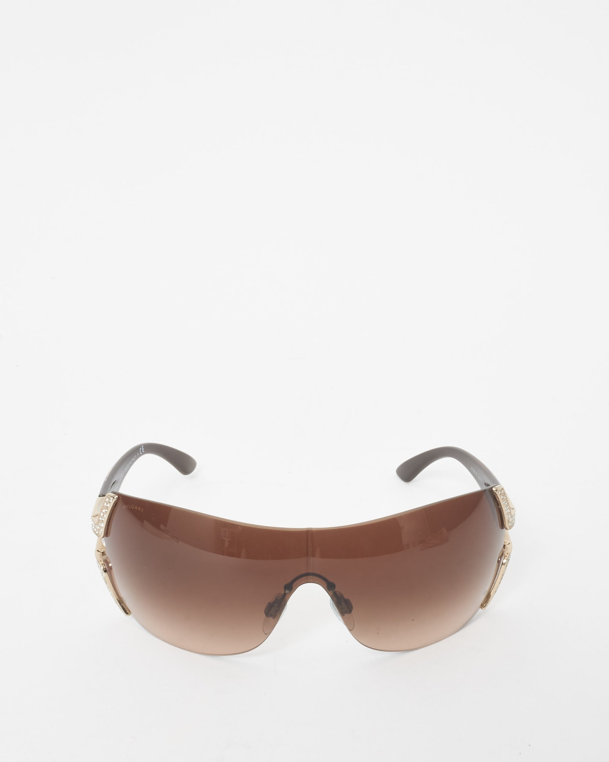 Explore Bvlgari's exquisite collection of Eyewear, featuring this certified pre-owned Rhinestone Shield 6038-B Sunglasses. Embodying timeless elegance and modern sustainability, each piece, including favorites like this, is authenticated by Retyche. Discover sustainable luxury — shop our current treasures or find inspiration for your next coveted find.