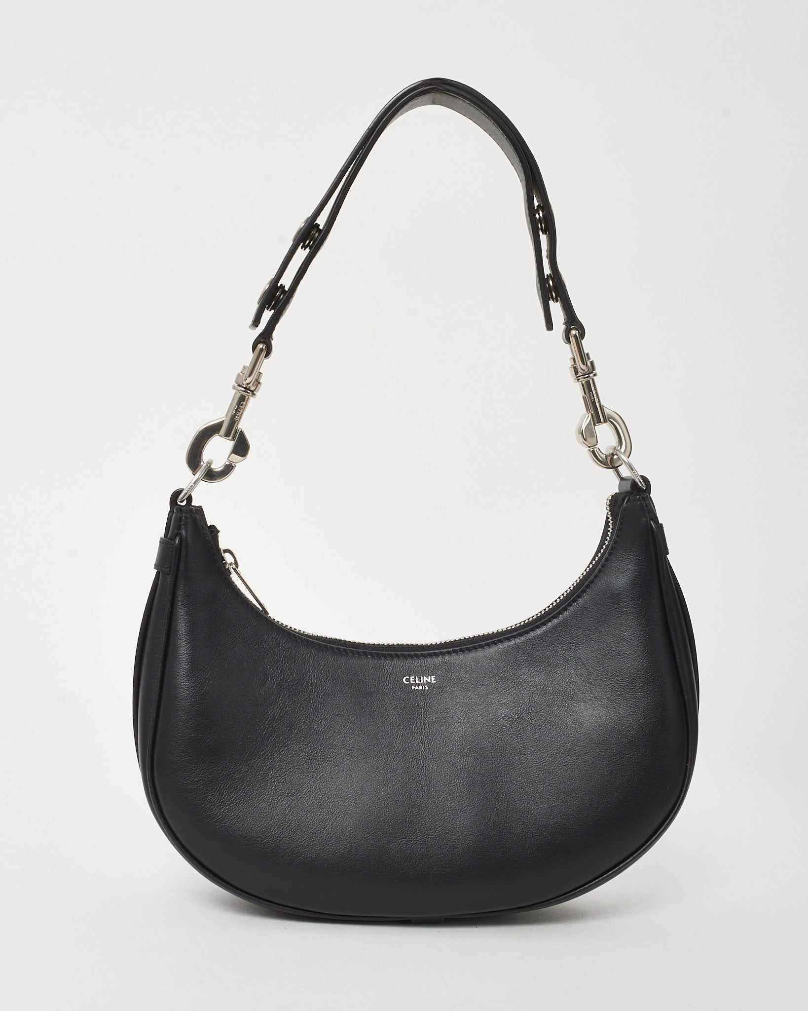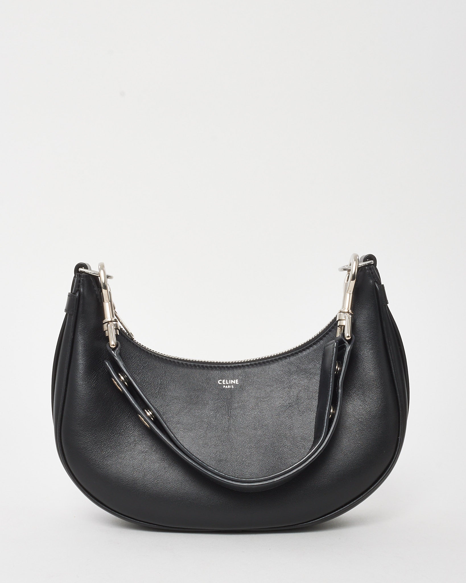 A refined expression of modern minimalism, this pre-loved authentic Celine Black Medium Ava Strap Shoulder Bag showcases the brand’s signature sleek aesthetic. Designed in smooth black material with clean, curved lines, it features a structured silhouette enhanced by a comfortable strap for effortless wear. The minimalist silver-tone hardware adds a subtle touch of elegance, making it a versatile choice for both day and evening styling. Timeless and sophisticated, this shoulder bag is a statement piece for any curated collection.