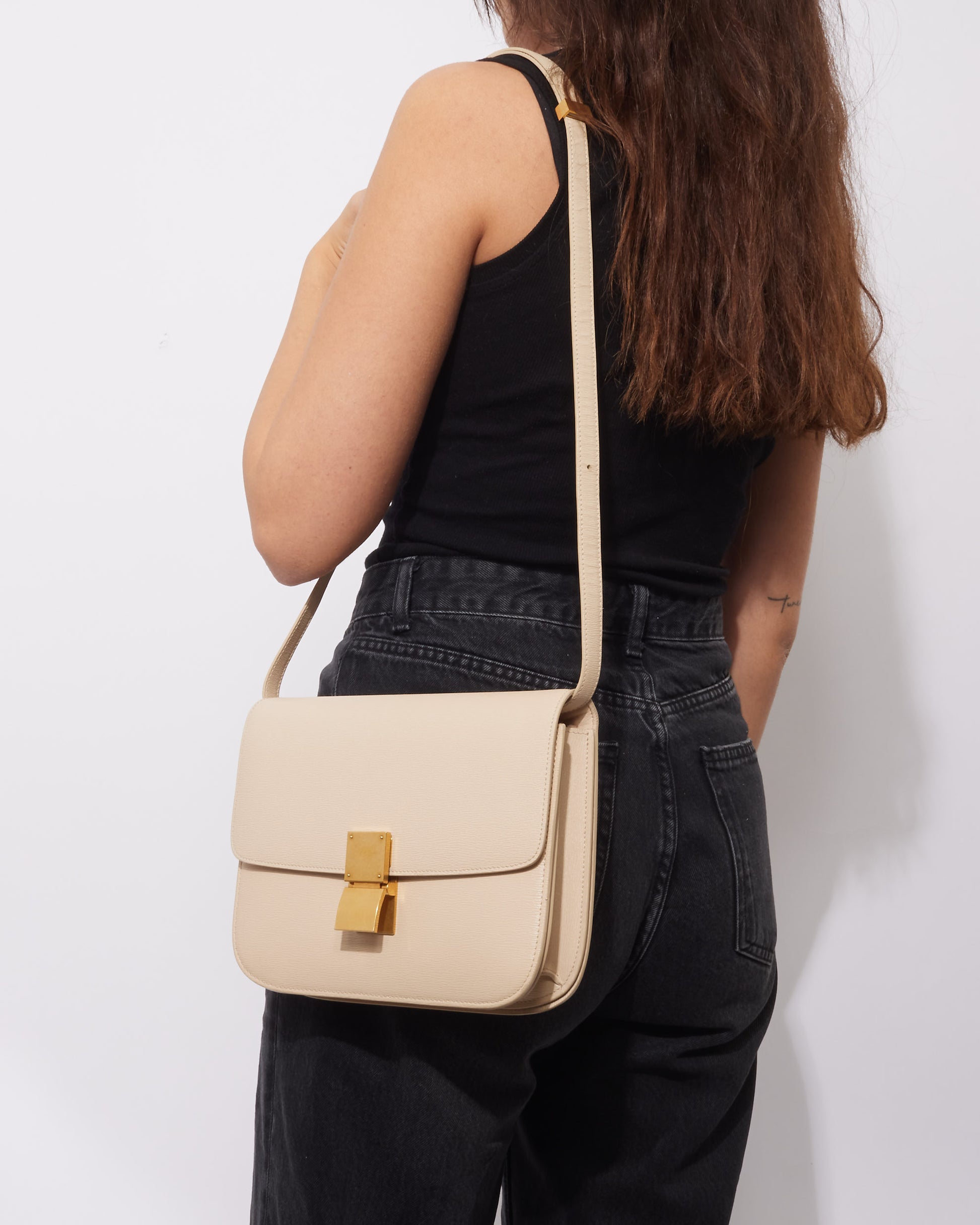 Explore Celine's exquisite collection of handbags, featuring this certified pre-owned Light Beige Calfskin Leather Box Bag. Embodying timeless elegance and modern sustainability, each piece, including favorites like this, is authenticated by Retyche. Discover sustainable luxury — shop our current treasures or find inspiration for your next coveted find.
