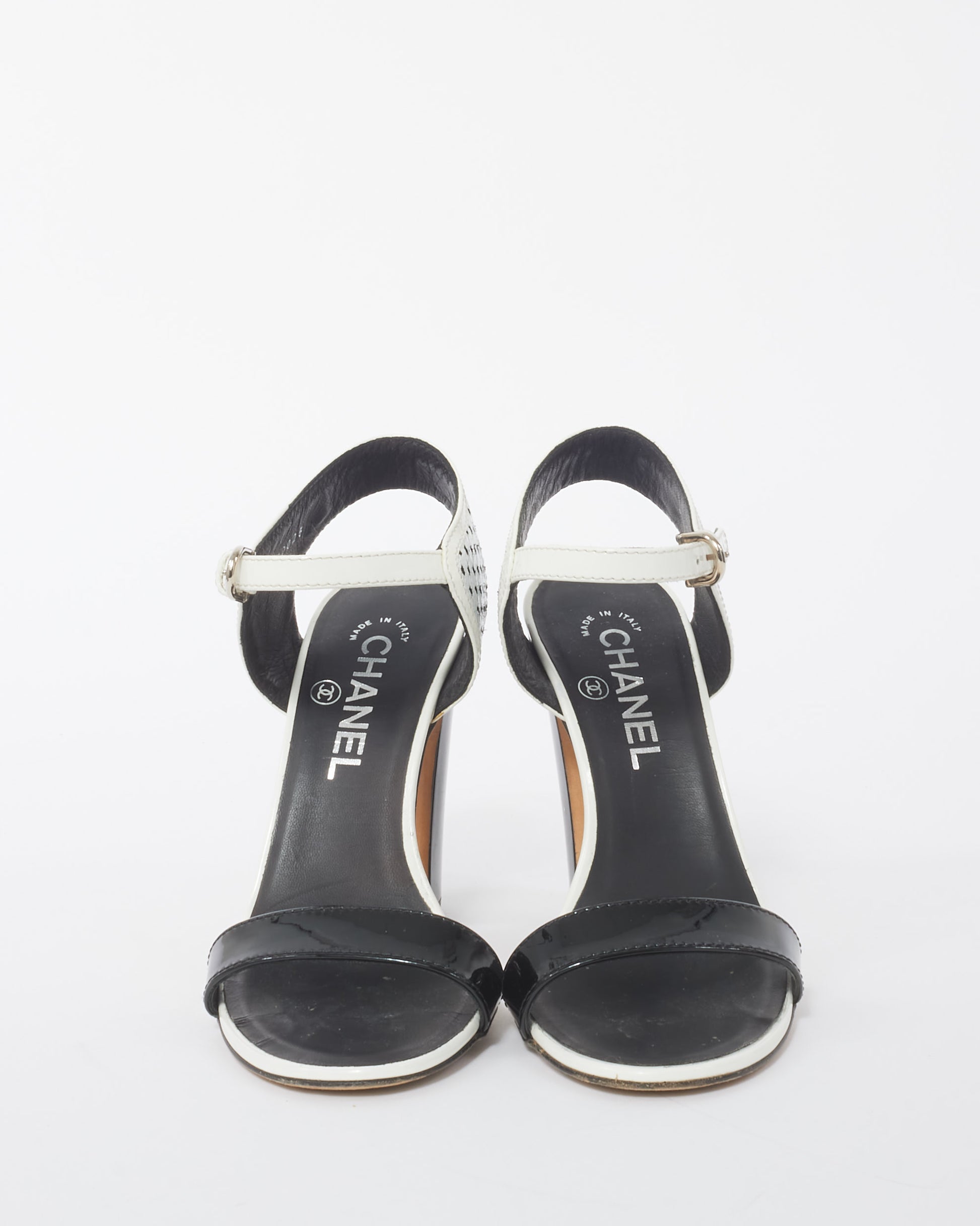 Explore Chanel's exquisite collection of Footwear, featuring this certified pre-owned Black and White Perforated Crackled Patent Leather Calfskin Block Heel Sandals - 37. Embodying timeless elegance and modern sustainability, each piece, including favorites like this, is authenticated by Retyche. Discover sustainable luxury — shop our current treasures or find inspiration for your next coveted find.
