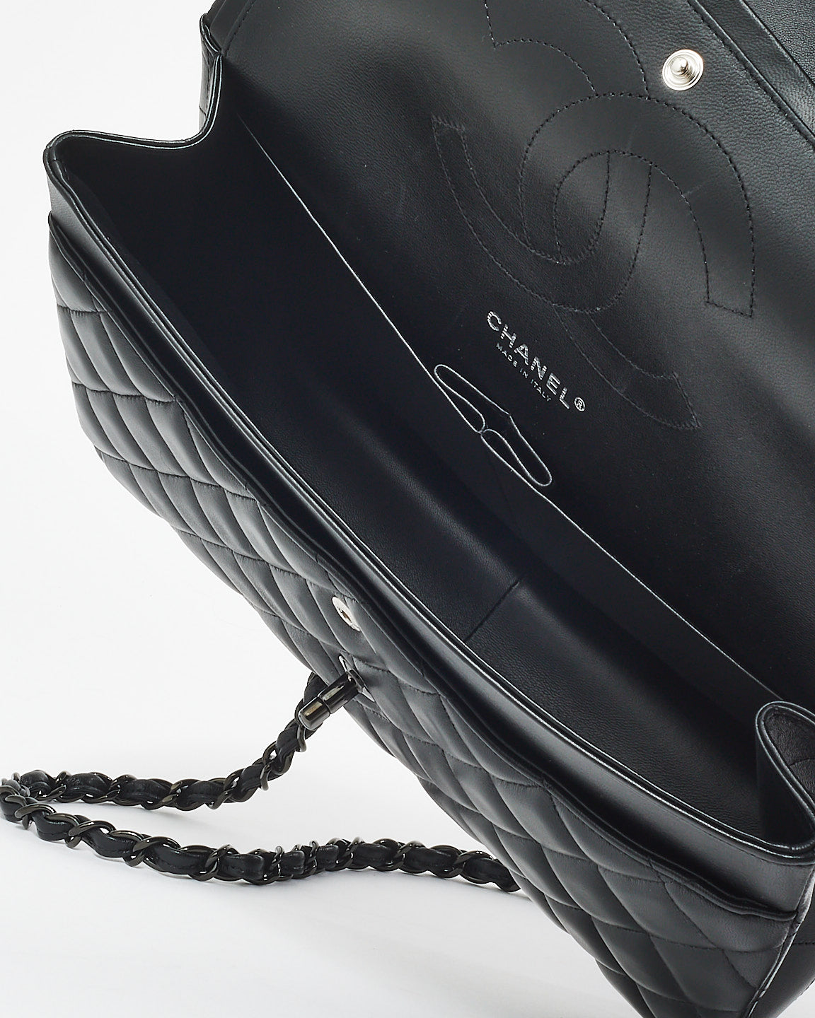 Black Lambskin Leather "So Black" Classic Jumbo Double Flap Bag