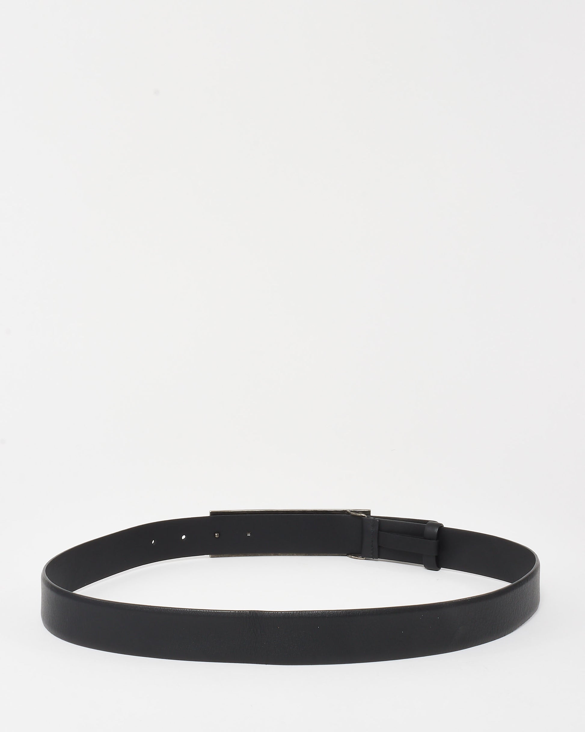 Black Leather Rhinestone Nameplate Logo Buckle Belt - 85/34