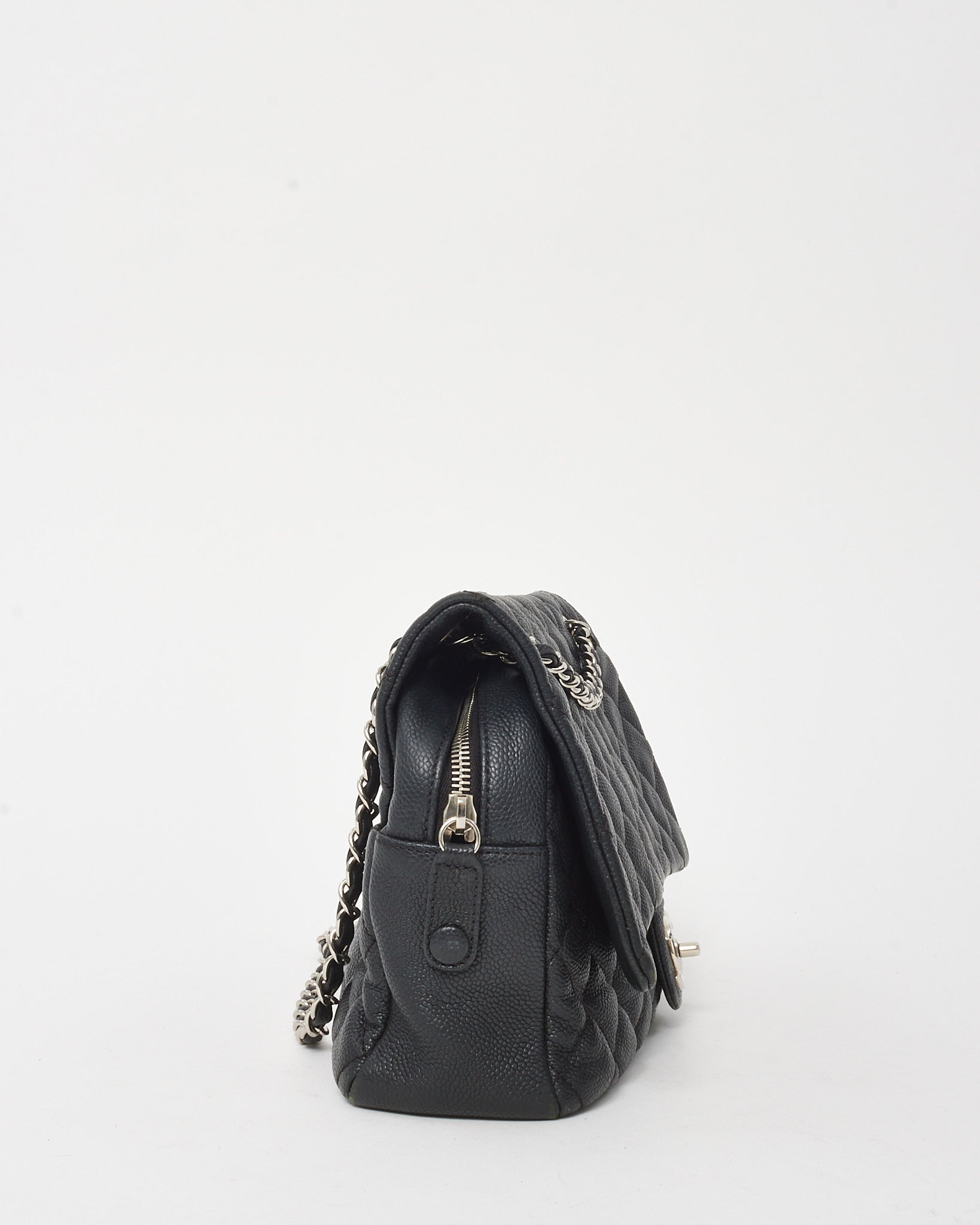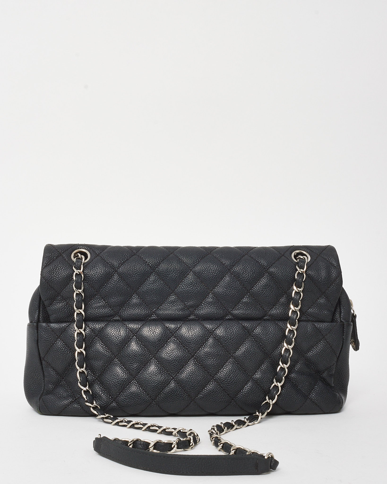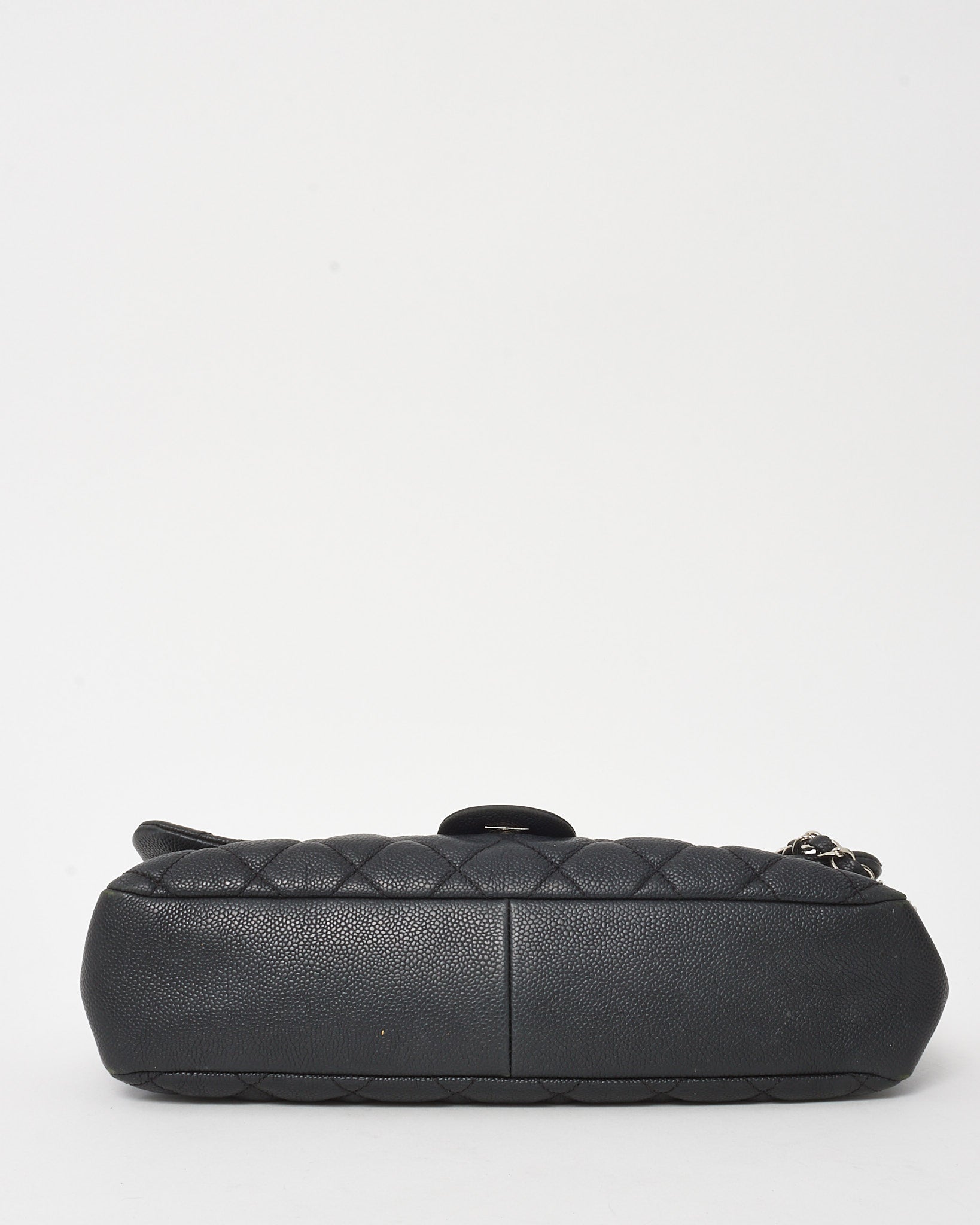 Black Quilted Caviar Leather Jumbo Easy Flap Bag SHW