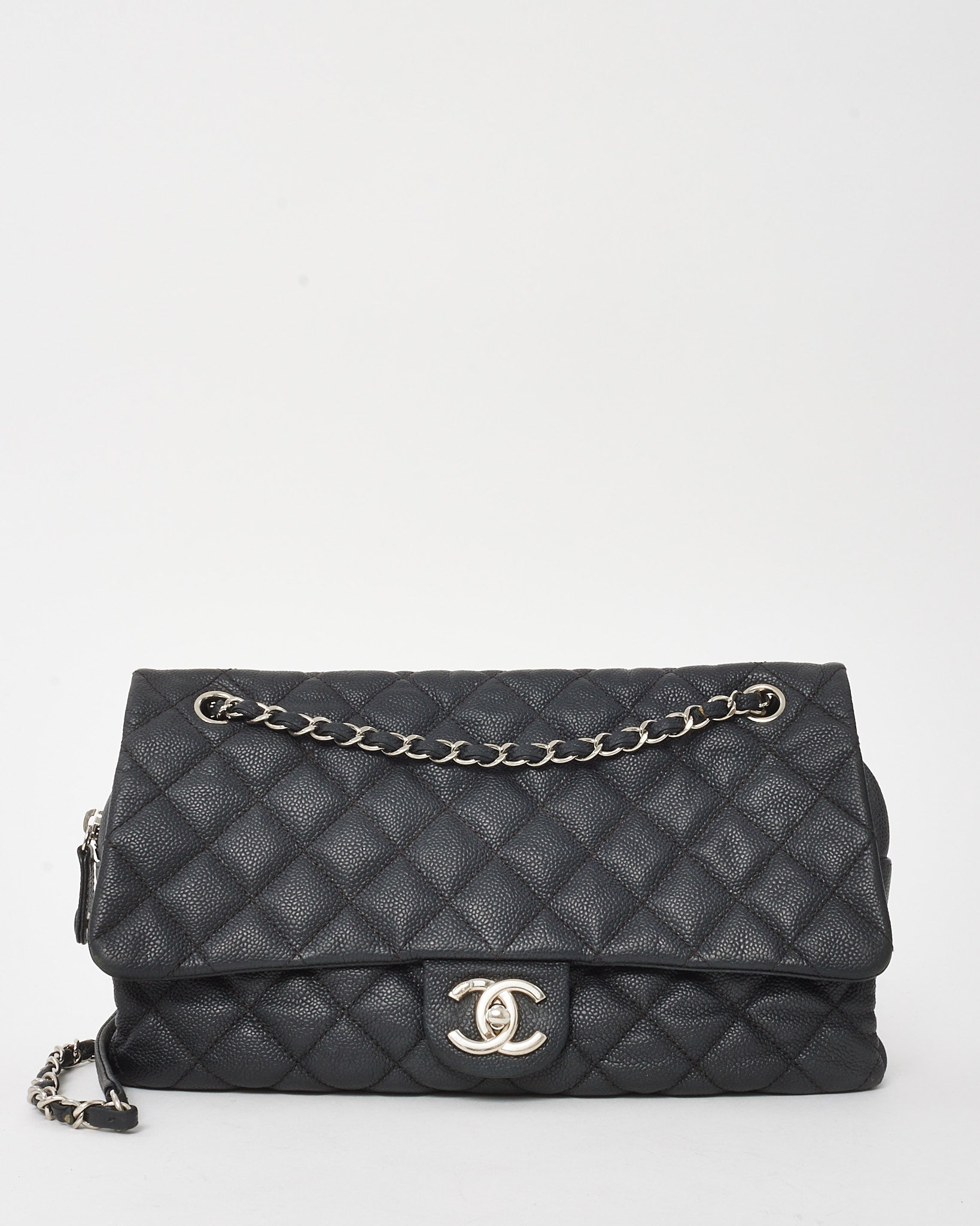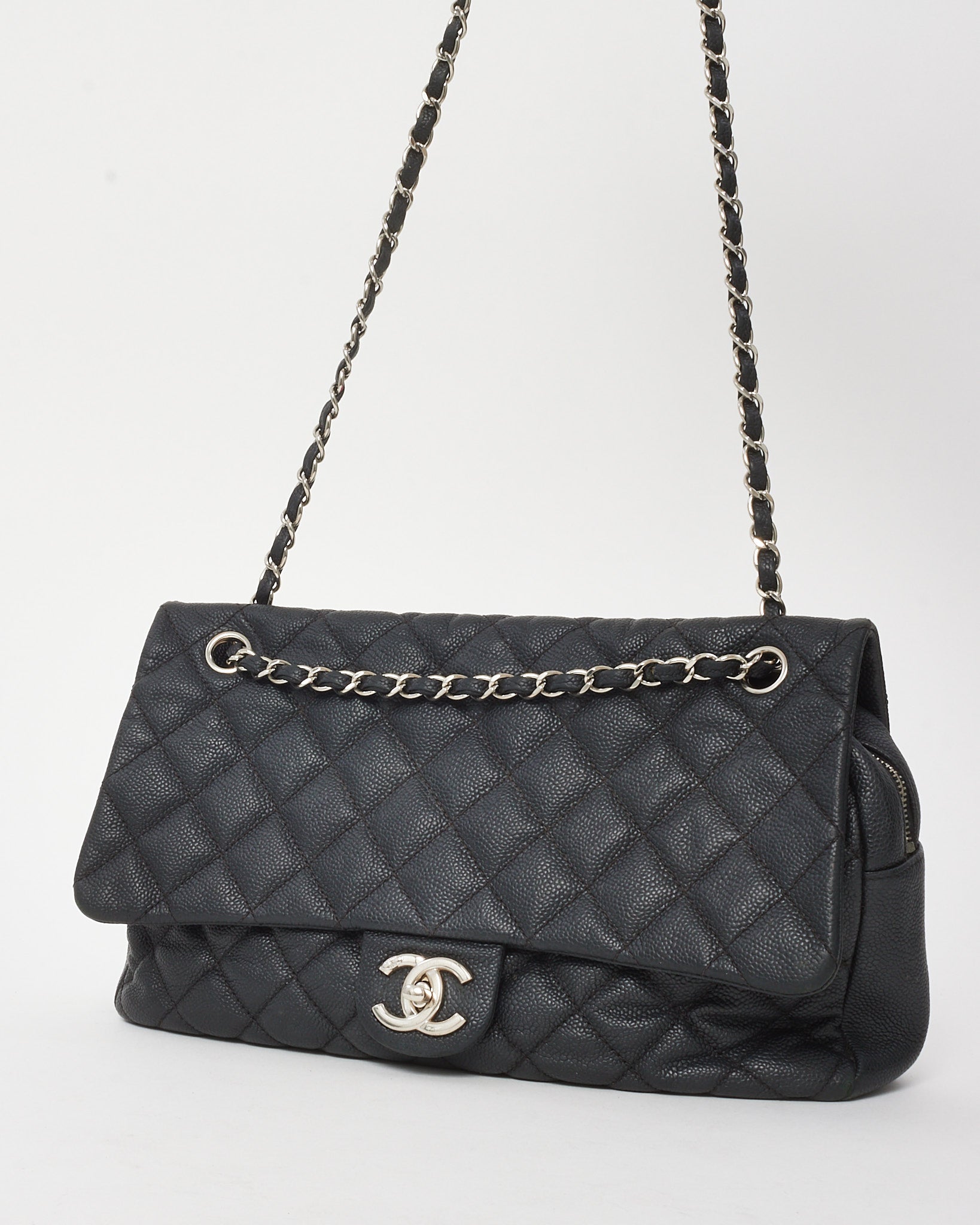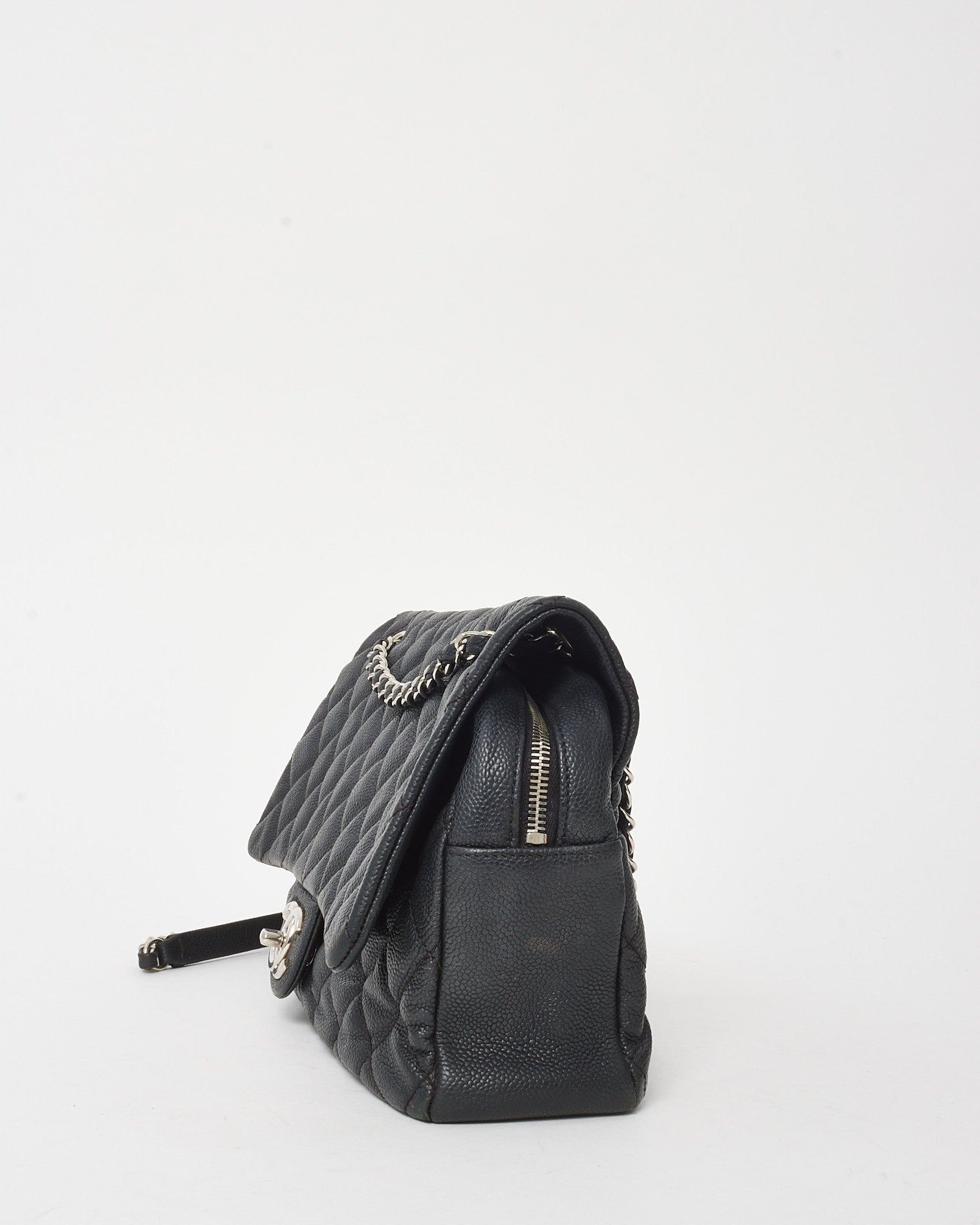 Black Quilted Caviar Leather Jumbo Easy Flap Bag SHW