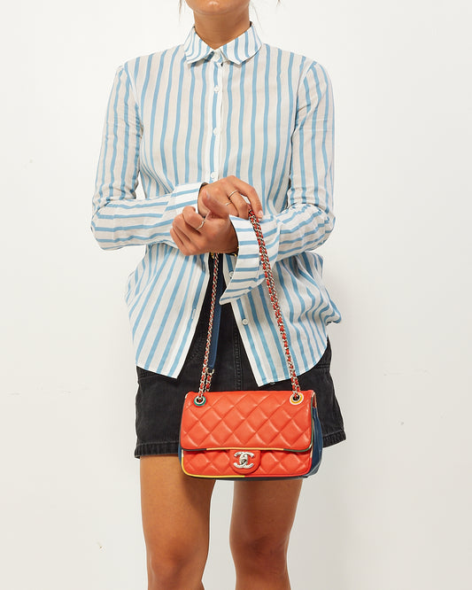 Coral & Navy Quilted Leather Paris-Cuba Single Flap Bag with Silver Hardware