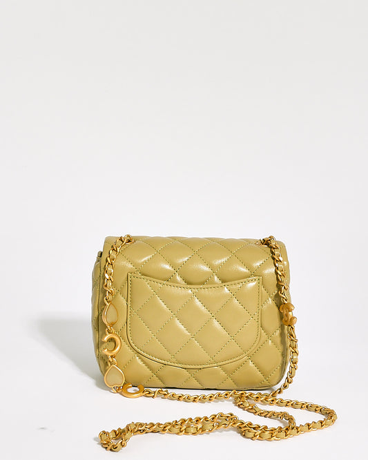 Light Green Lambskin Leather Mini Flap Bag with Coco Heart Charm Chain