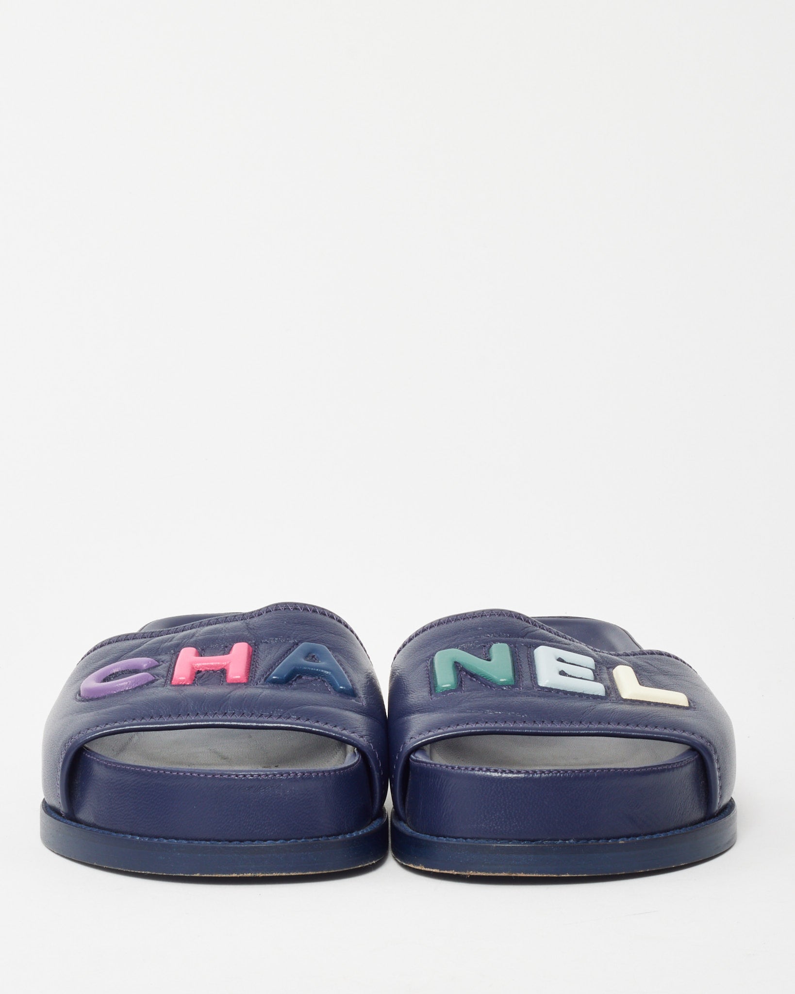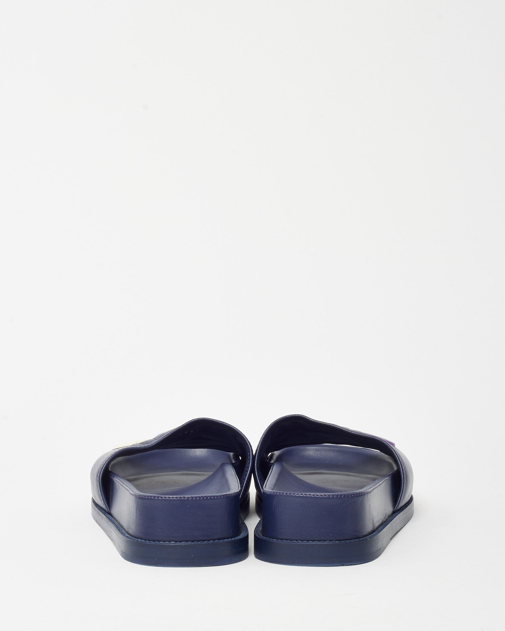 Navy Leather Multi CHA-NEL Mule Sandals - 40.5