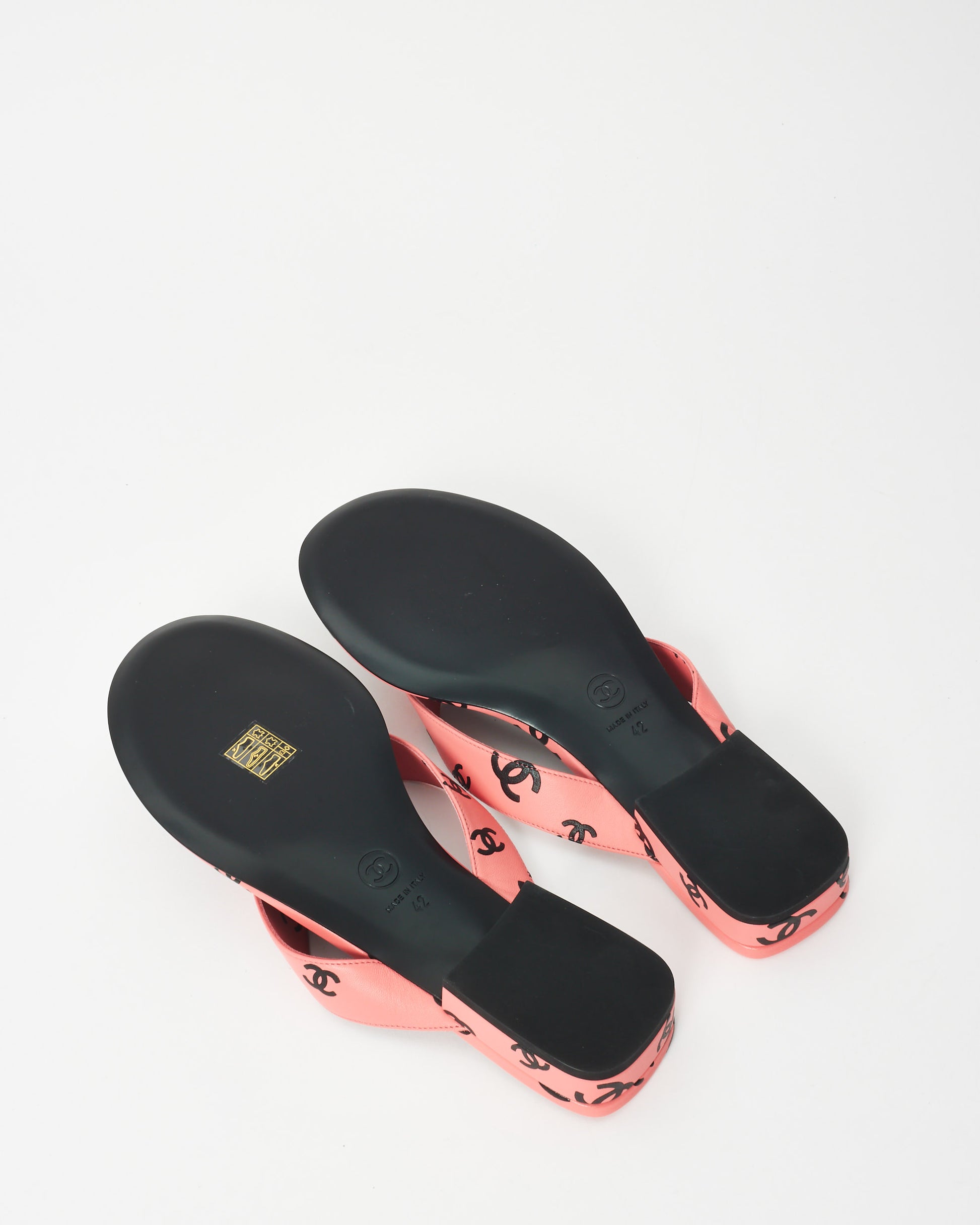 Pink & Black Logo Leather 22S Flip Flop Sandals - 42