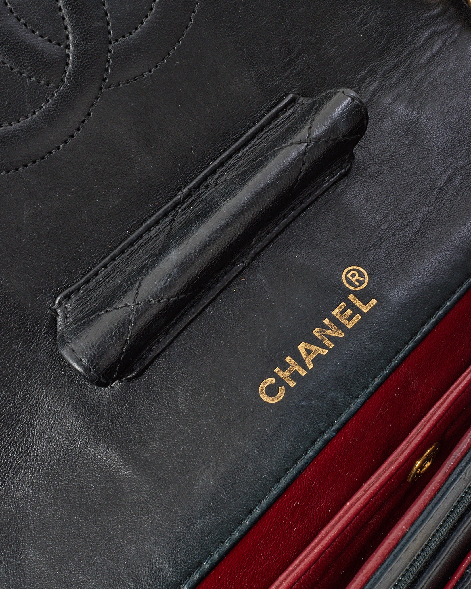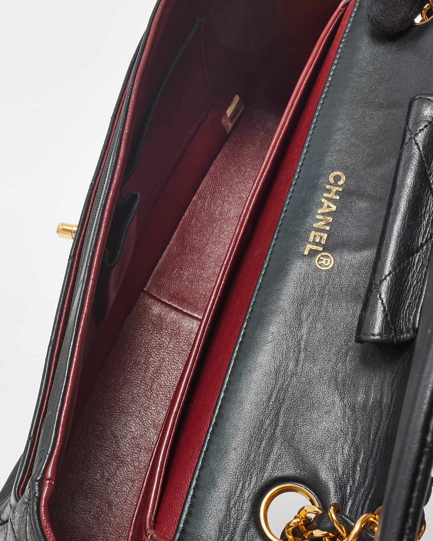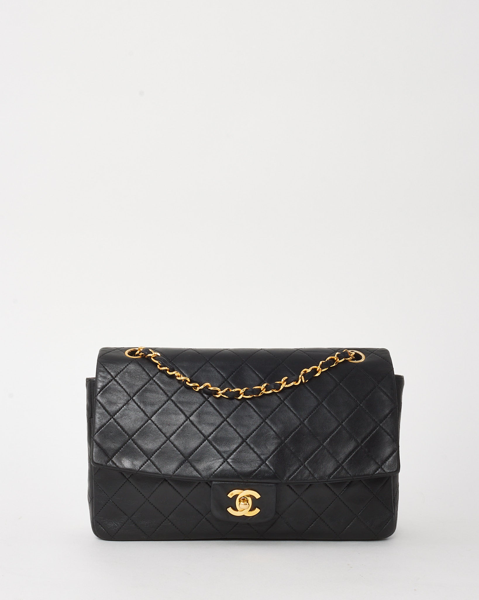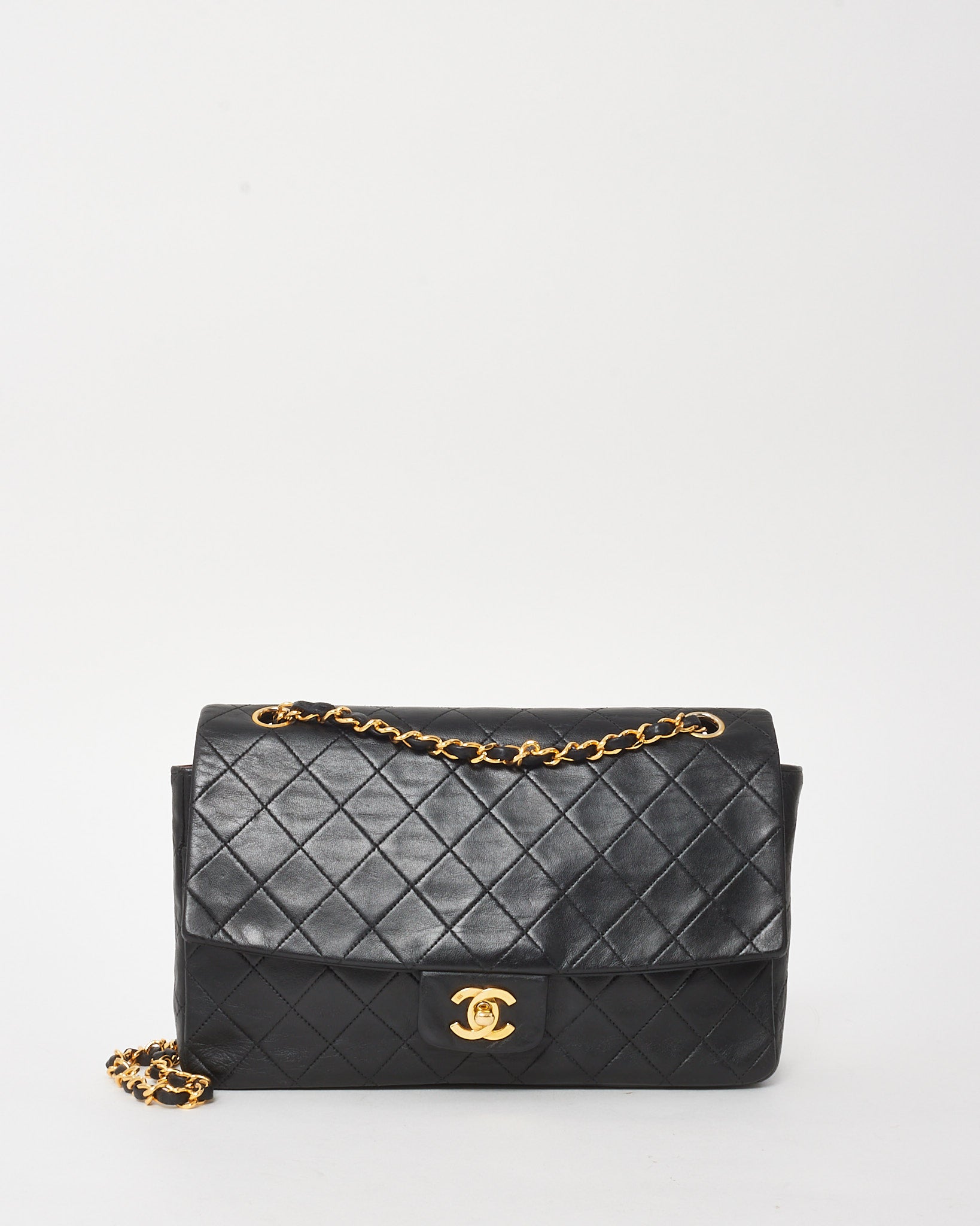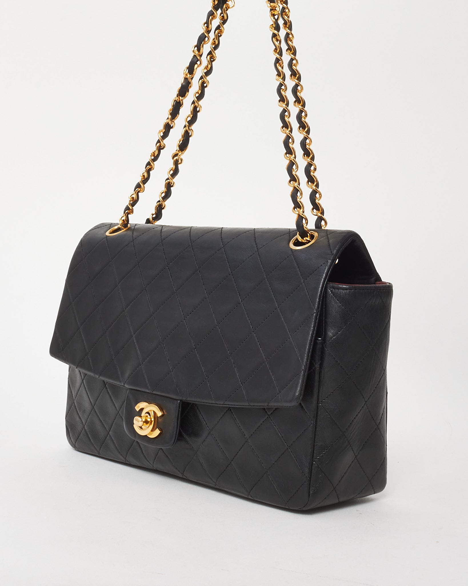 Vintage Black Lambskin Medium Single Flap Bag 24K GHW