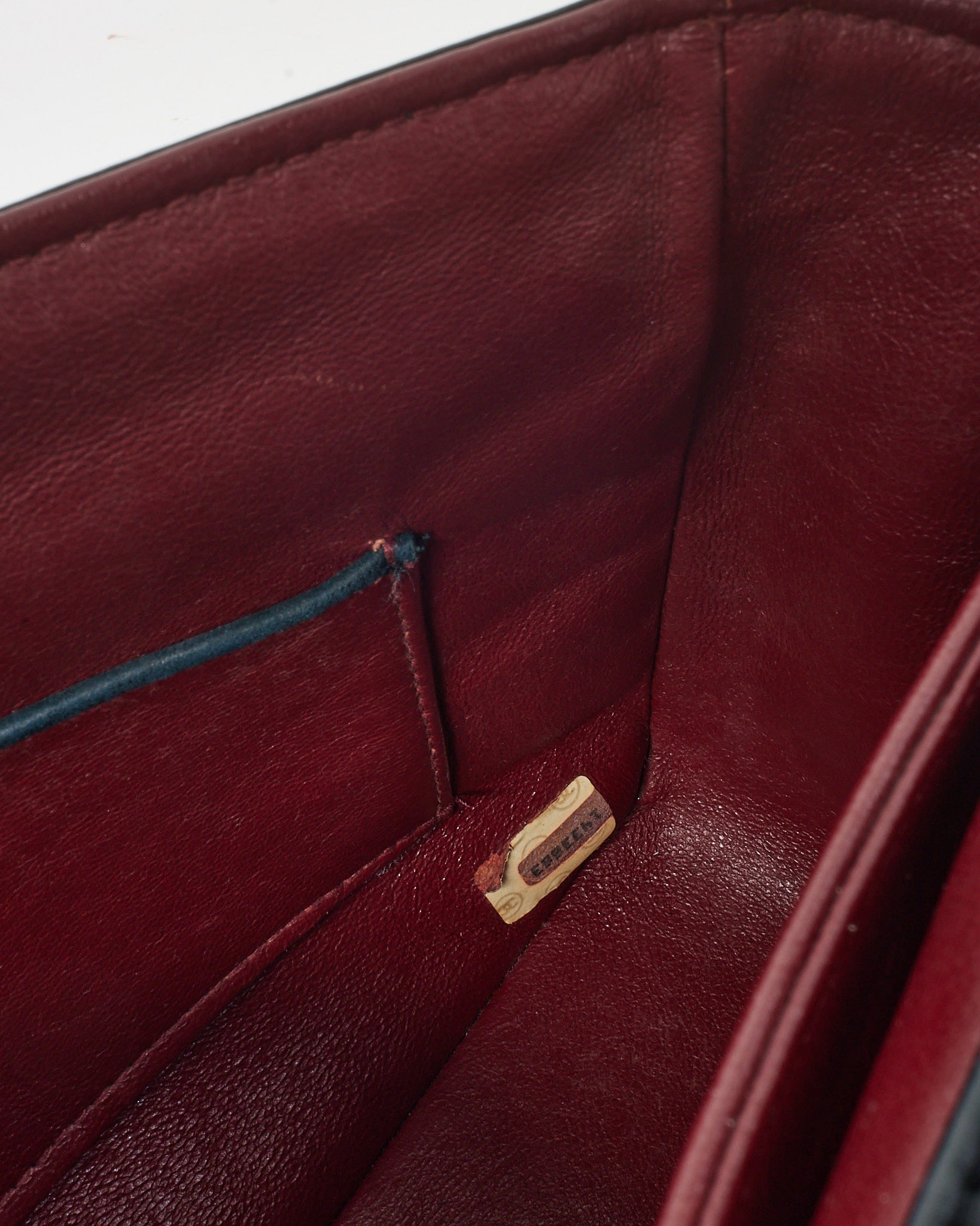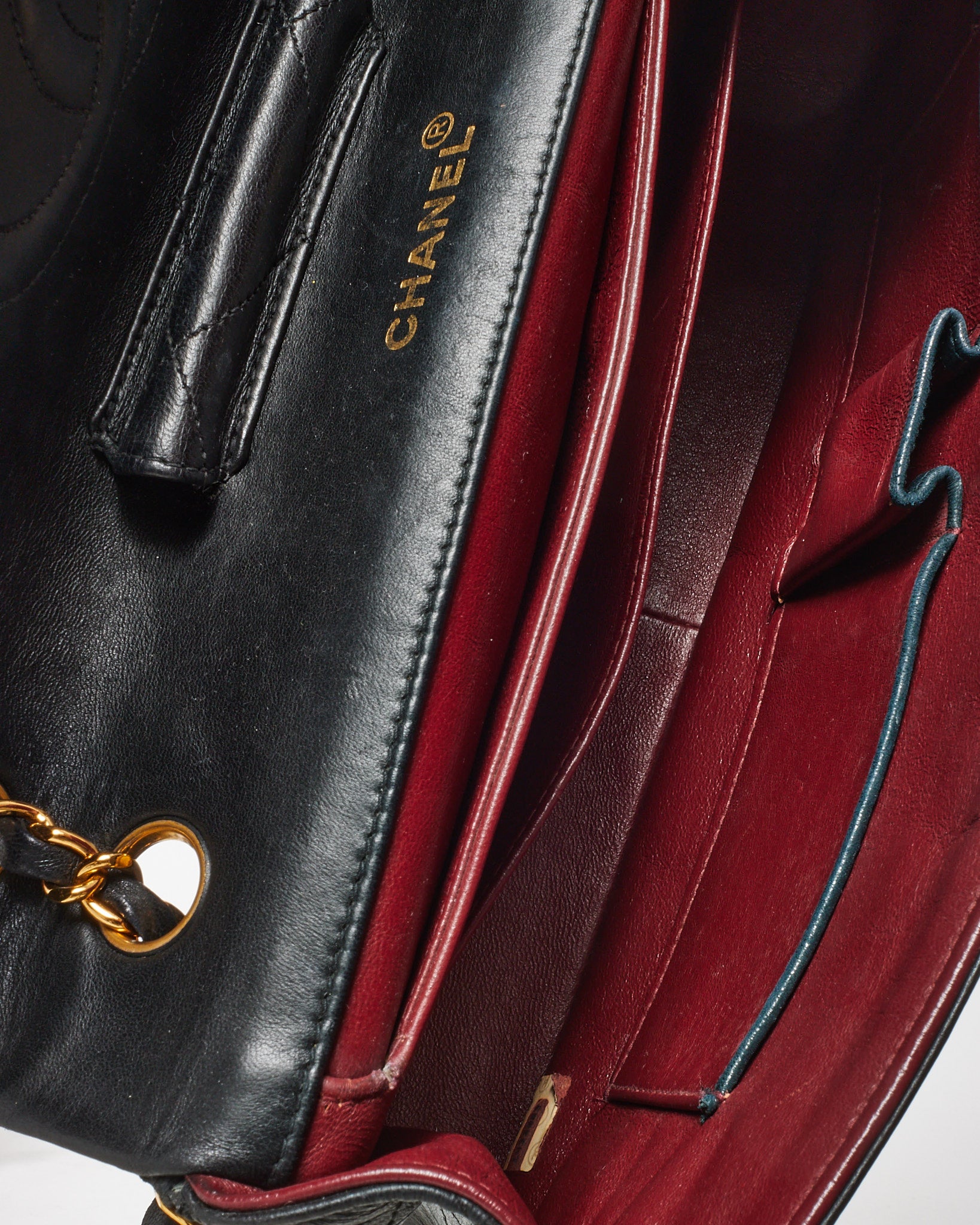 A timeless emblem of classic Chanel elegance, this pre-loved authentic Chanel Vintage Medium Single Flap Bag is beautifully crafted from supple black lambskin. The signature diamond pattern is complemented by the iconic CC turn-lock closure in gleaming 24K gold-plated hardware—exclusive to vintage Chanel designs. Featuring a leather-woven chain strap and burgundy leather interior, this coveted piece captures the enduring sophistication of the House’s most collectible era.