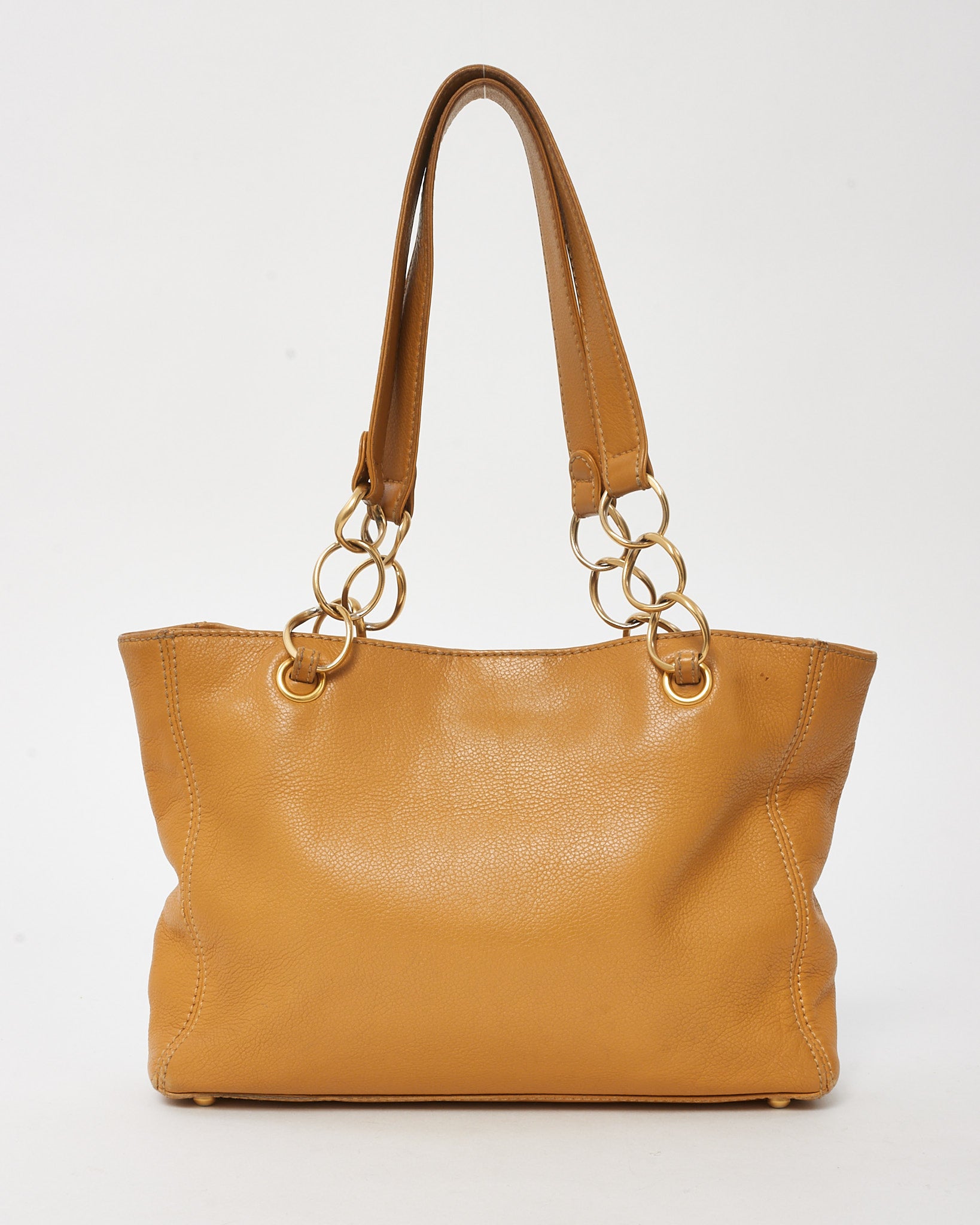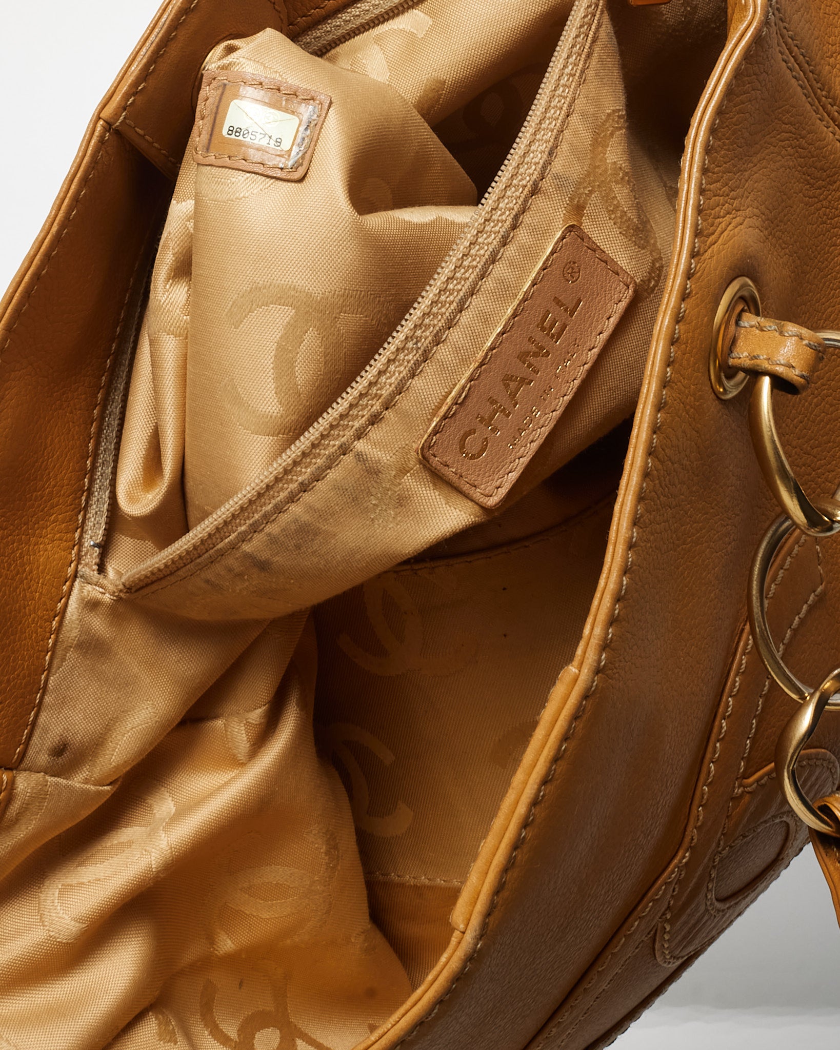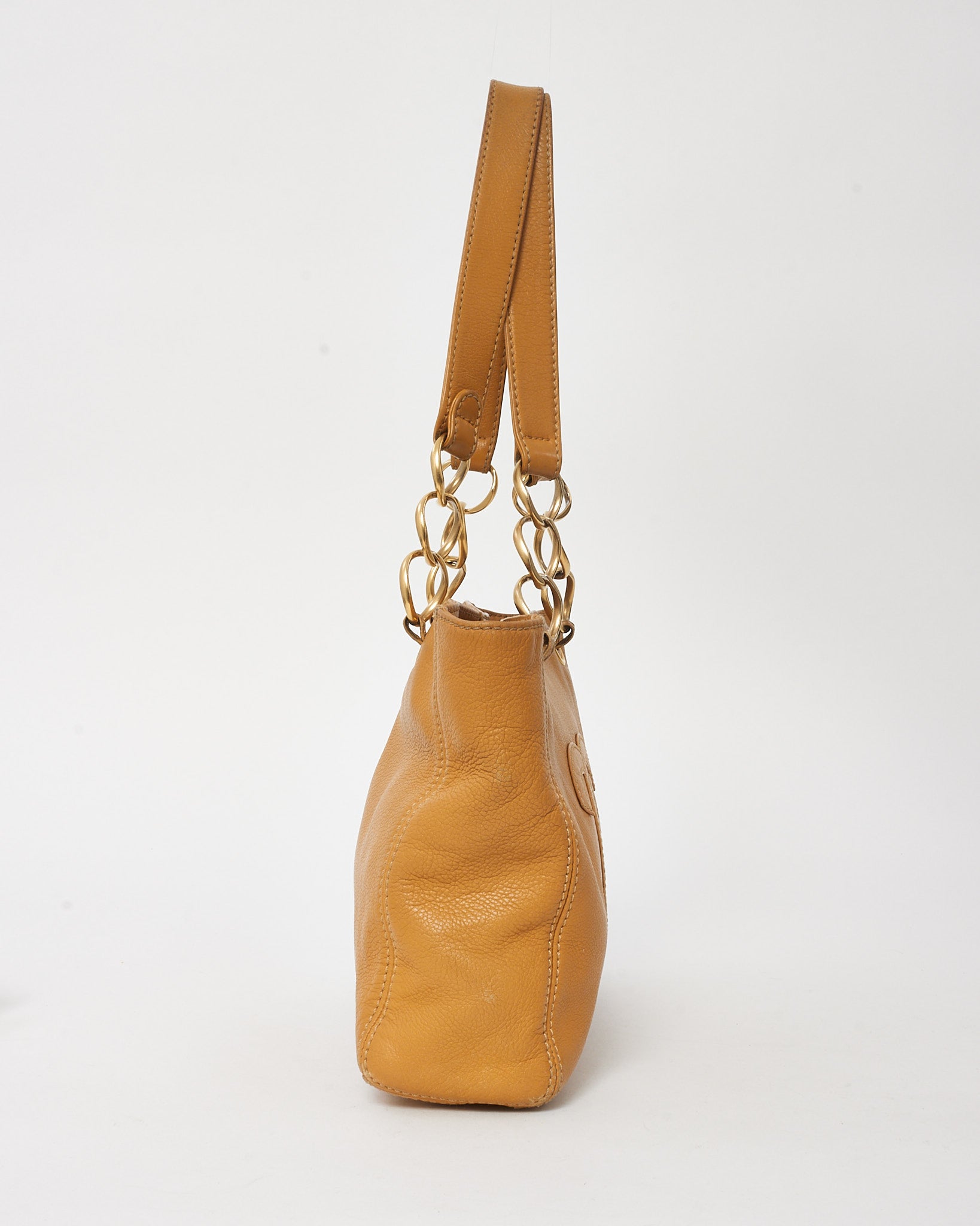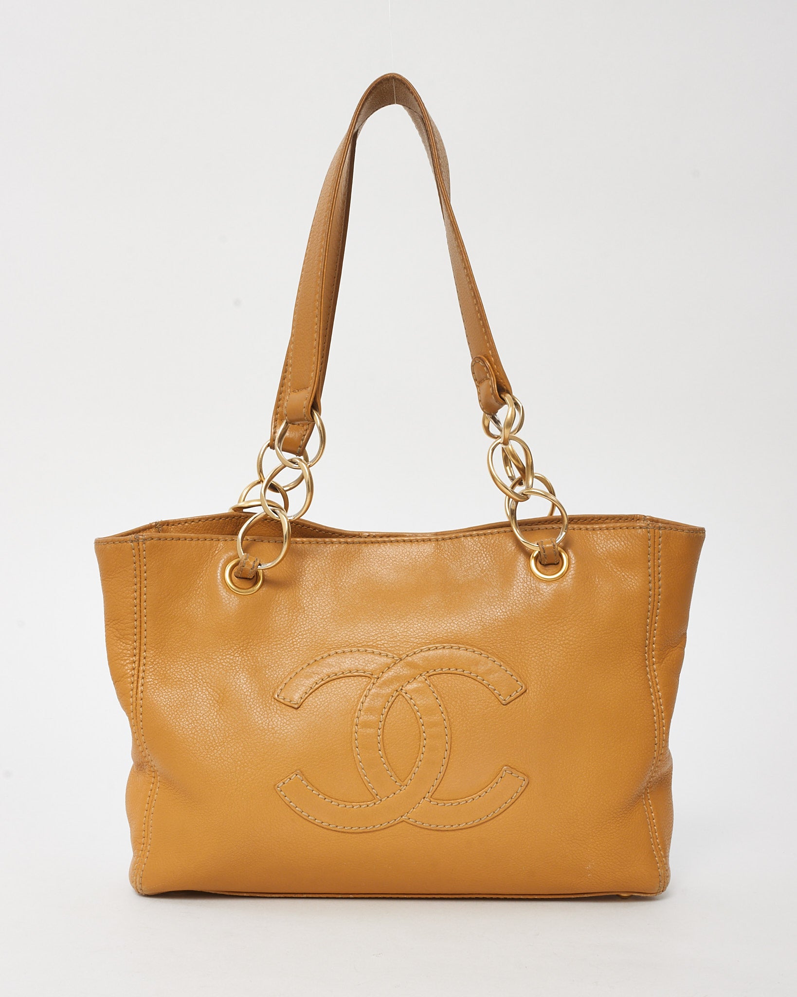 Vintage Tan Calfskin Leather CC Logo Chain Tote
