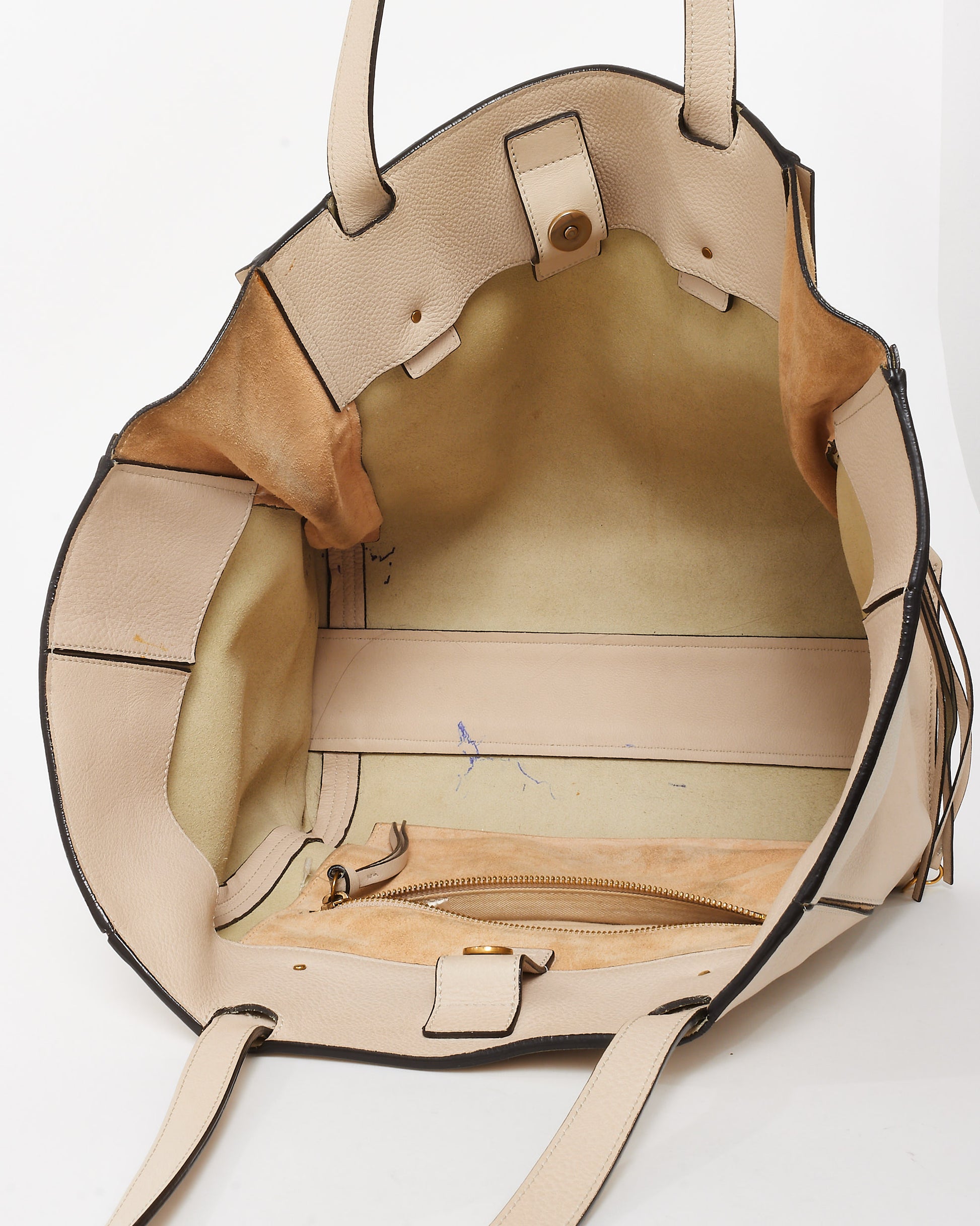 A blend of effortless sophistication and everyday practicality, the pre-owned authentic Chloé White Leather Milo Shopping Tote is a refined essential for those who appreciate understated luxury. Crafted from smooth white leather, this tote features a minimalist silhouette accented by signature contrast suede side panels, adding a touch of textural depth.