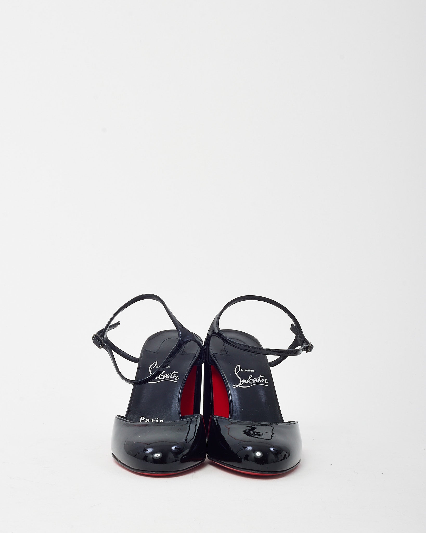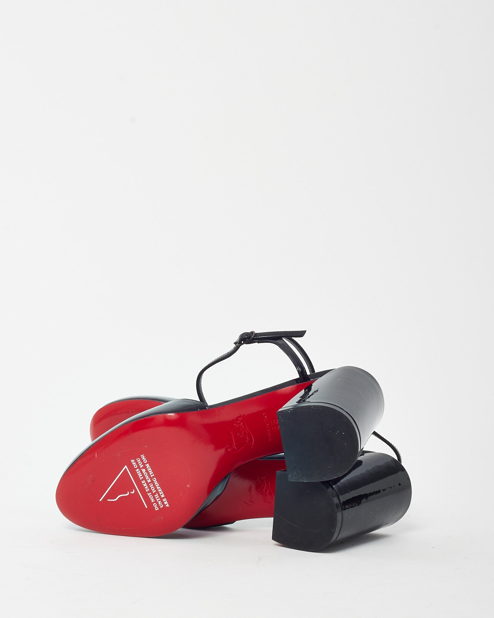 Elevate your evening edit with these pre-loved authentic Christian Louboutin Jane pumps. Crafted in glossy black patent leather, this Mary Jane silhouette combines classic femininity with the designer’s signature bold edge. The adjustable ankle strap enhances the timeless charm, while the 85mm heel offers flattering height and wearability. Finished with the iconic red sole, these pumps are a statement of refined elegance and unmistakable style—perfect for both formal events and elevated everyday looks.