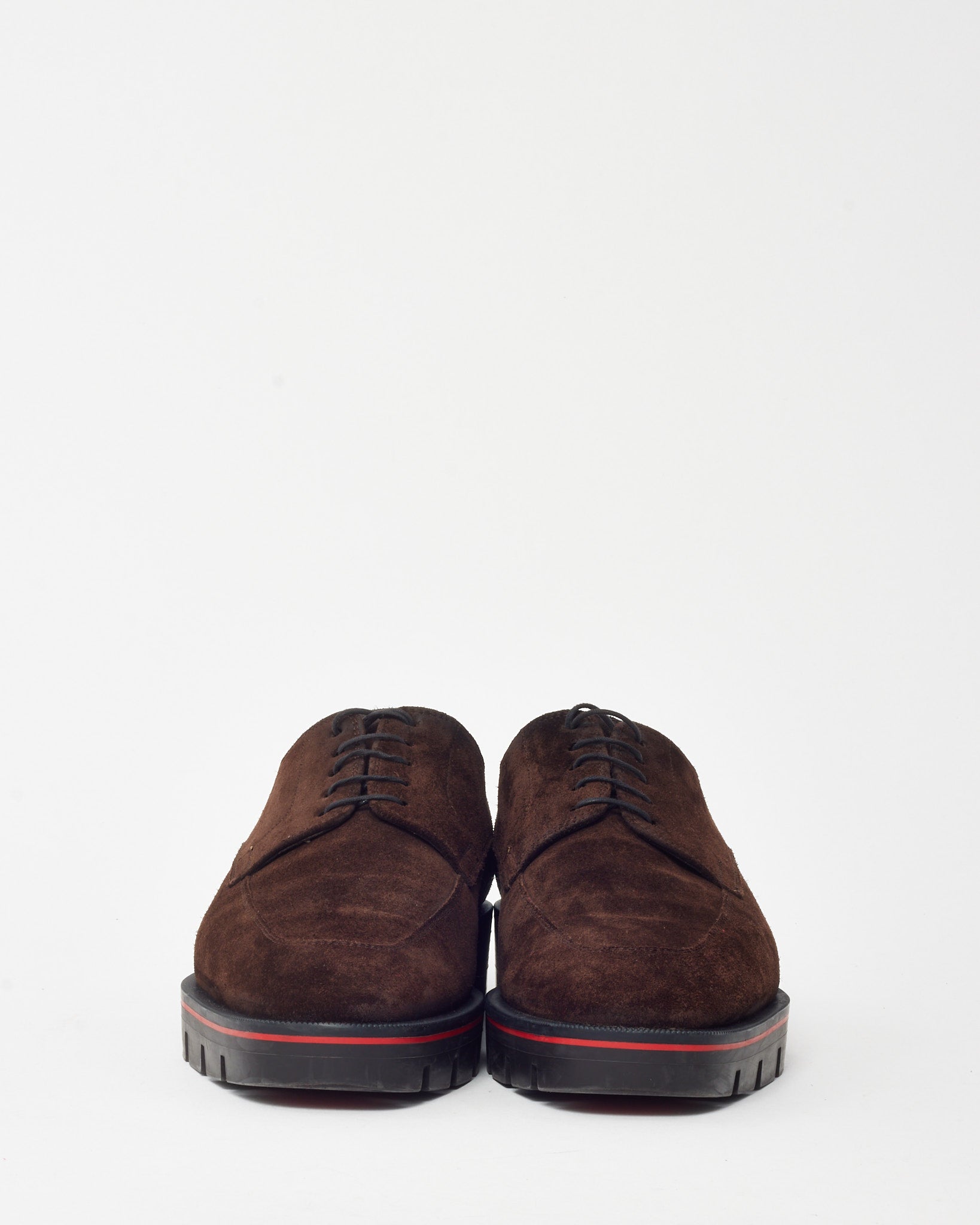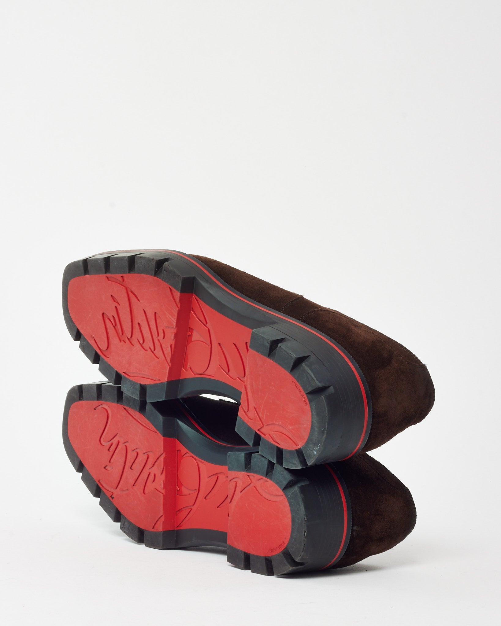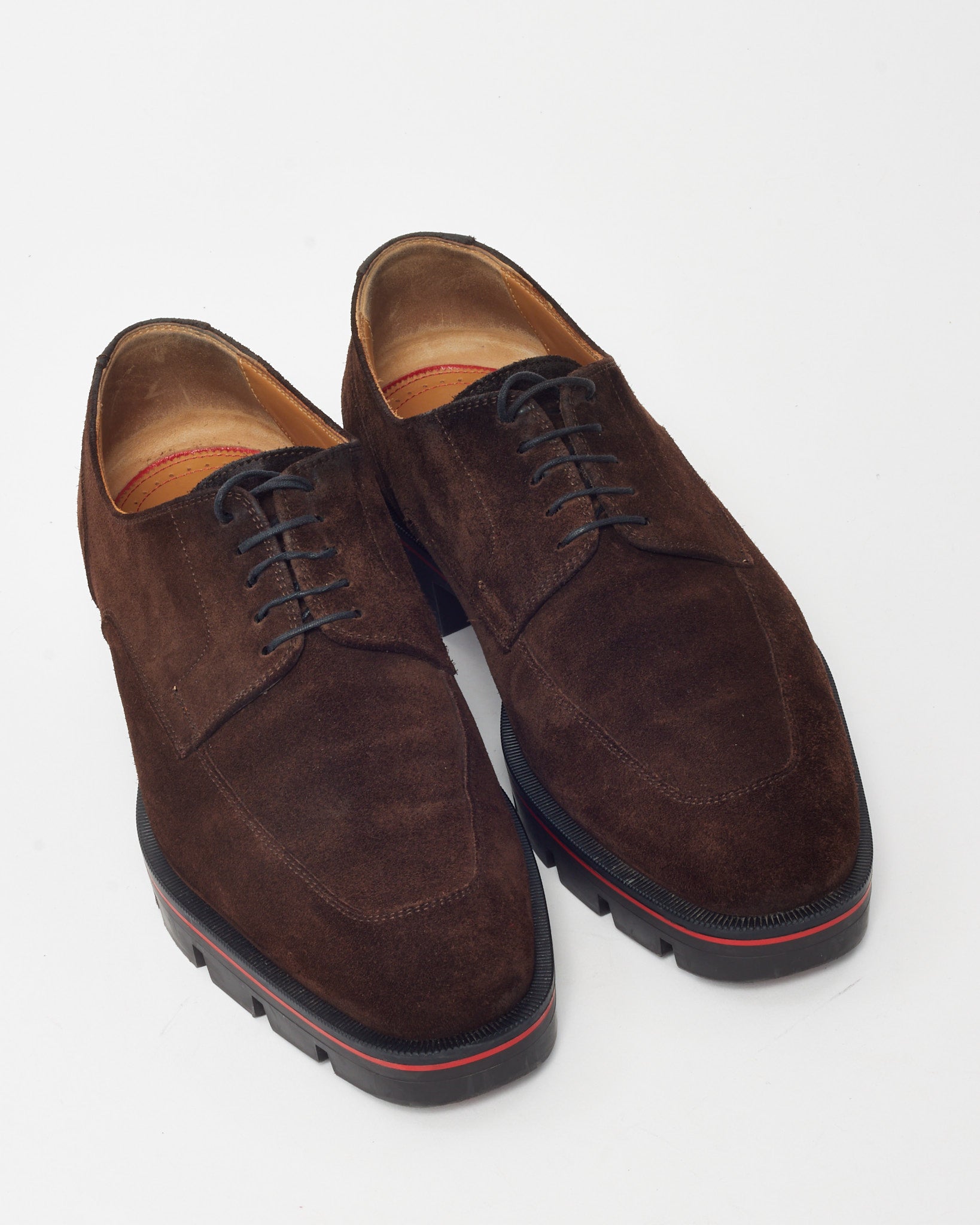 Classic and sophisticated, these pre-loved authentic Christian Louboutin Men’s Brown Suede Davisol Lace Up Derby Loafers bring refined craftsmanship and effortless style to any wardrobe. Crafted from rich brown suede, they feature a sleek lace-up design and the brand’s signature red soles for a touch of iconic flair. The streamlined silhouette and soft texture make them perfect for both smart casual and formal occasions. A timeless pair that embodies understated luxury and Louboutin’s renowned elegance.
