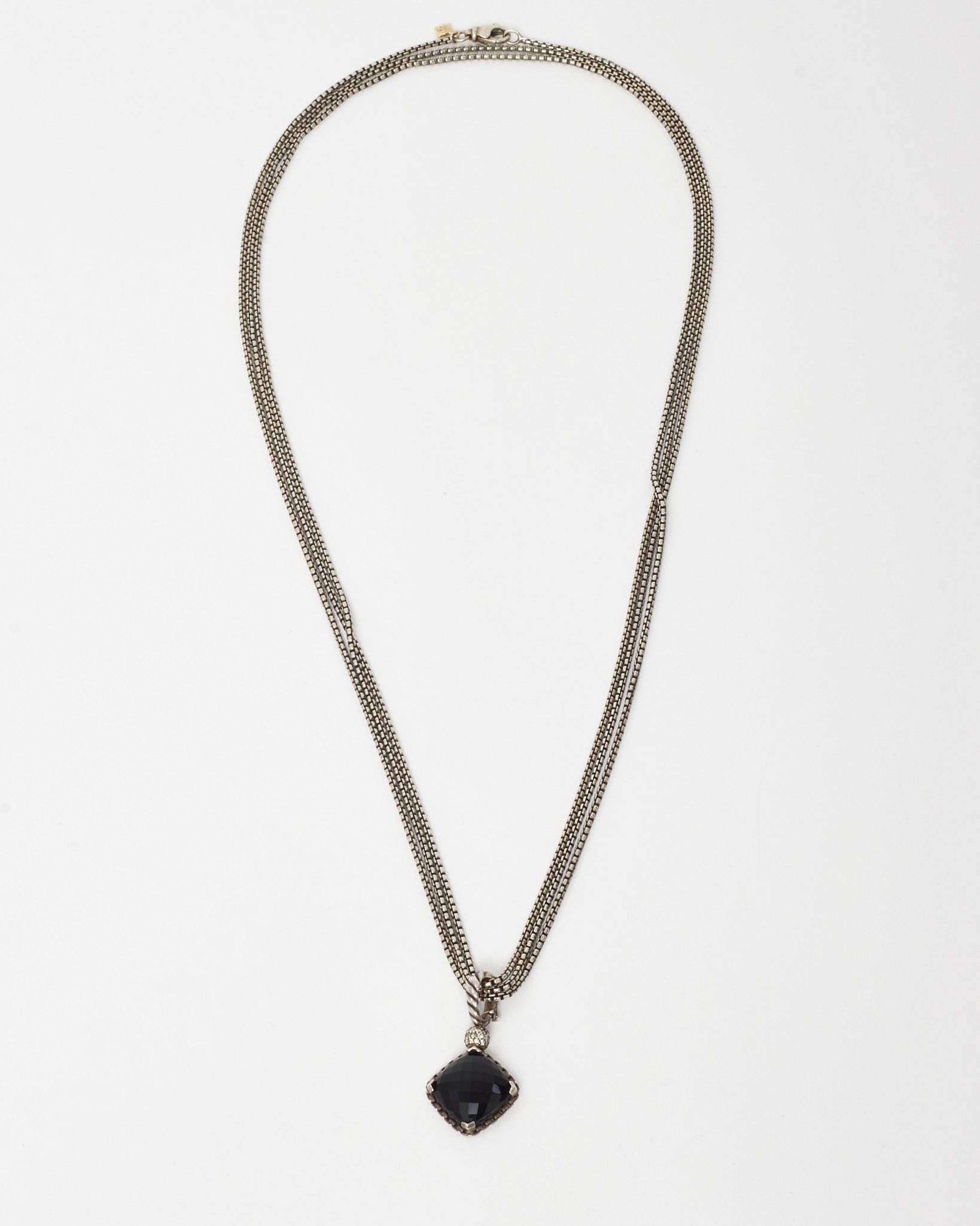 Sterling Silver and Black Onyx Diamond Cushion On Point 20mm Pendant Necklace