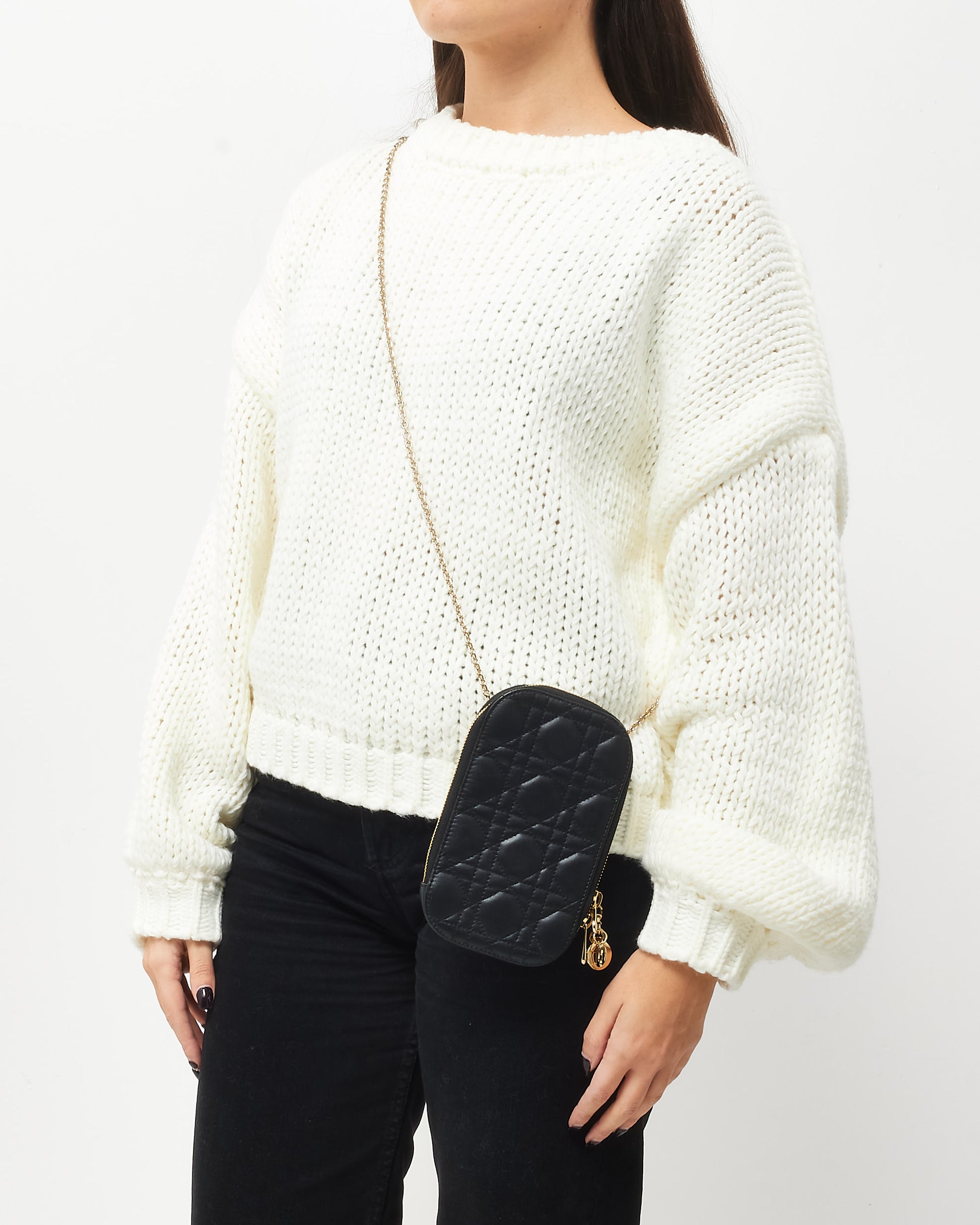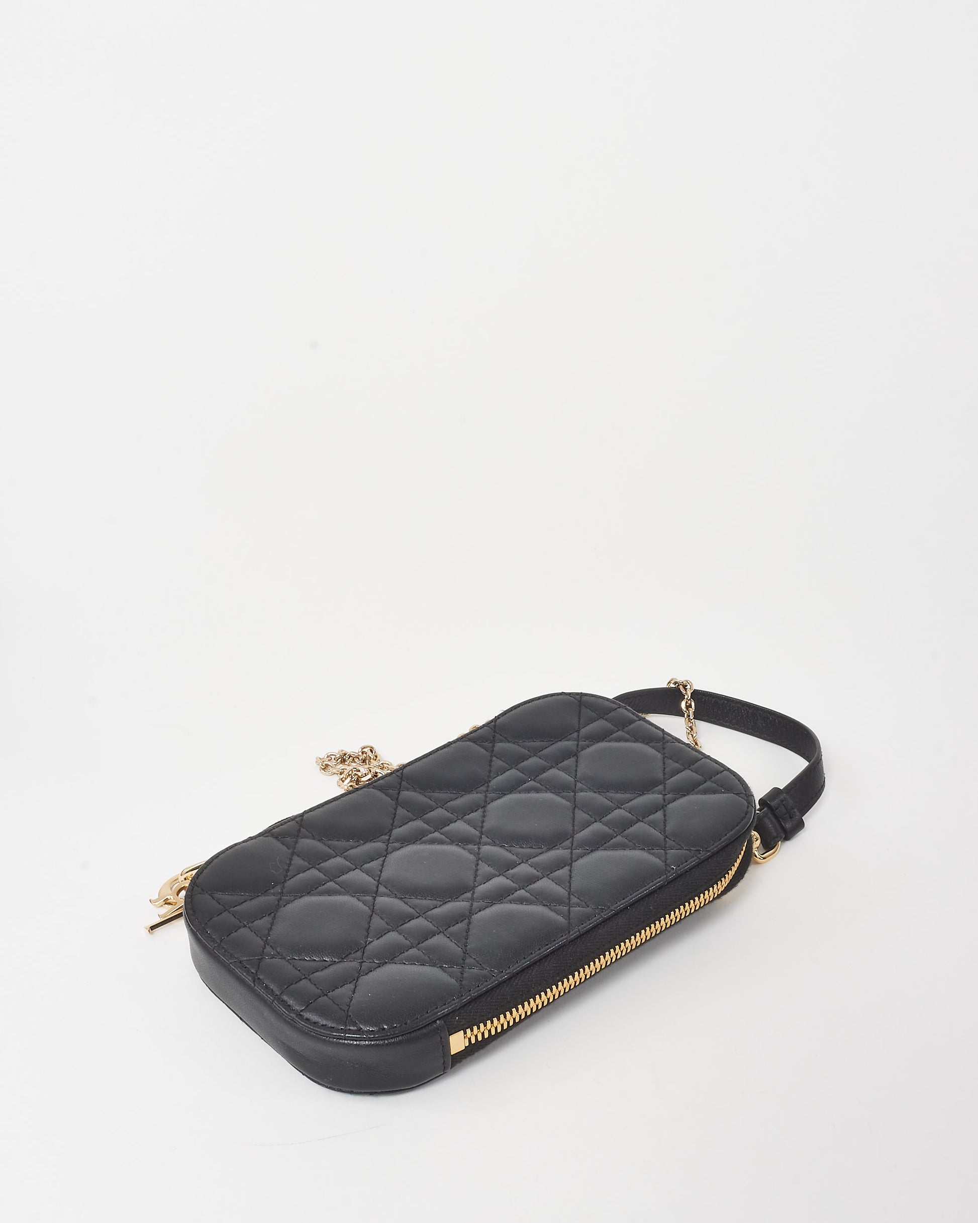 Black Cannage Lambskin Leather Lady Dior Call'in Dior Phone Holder Crossbody Bag