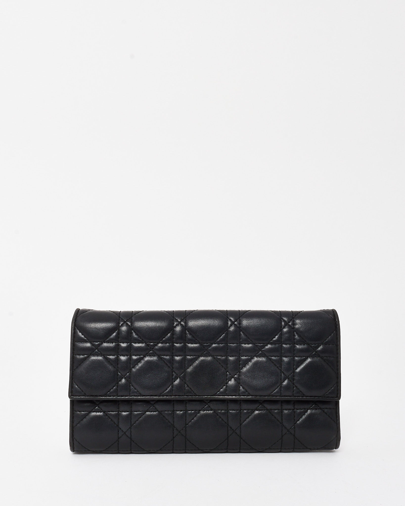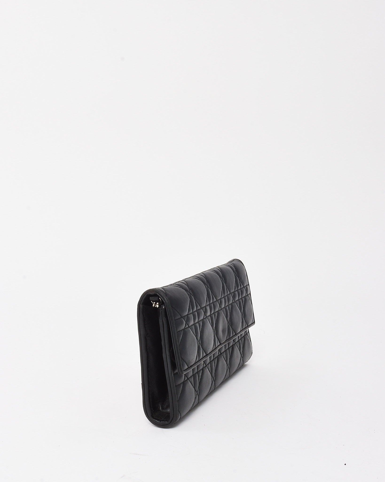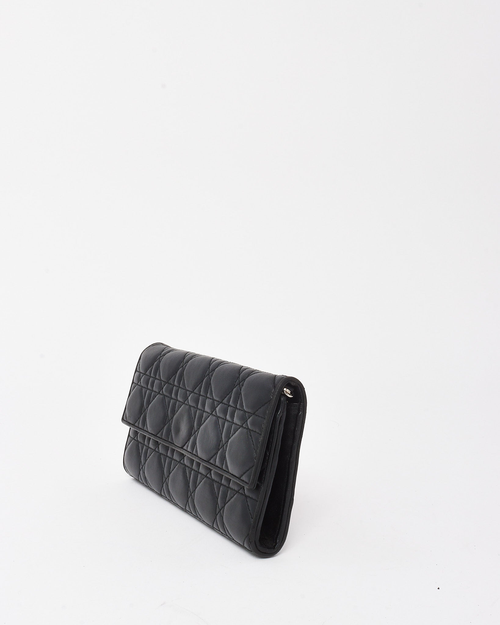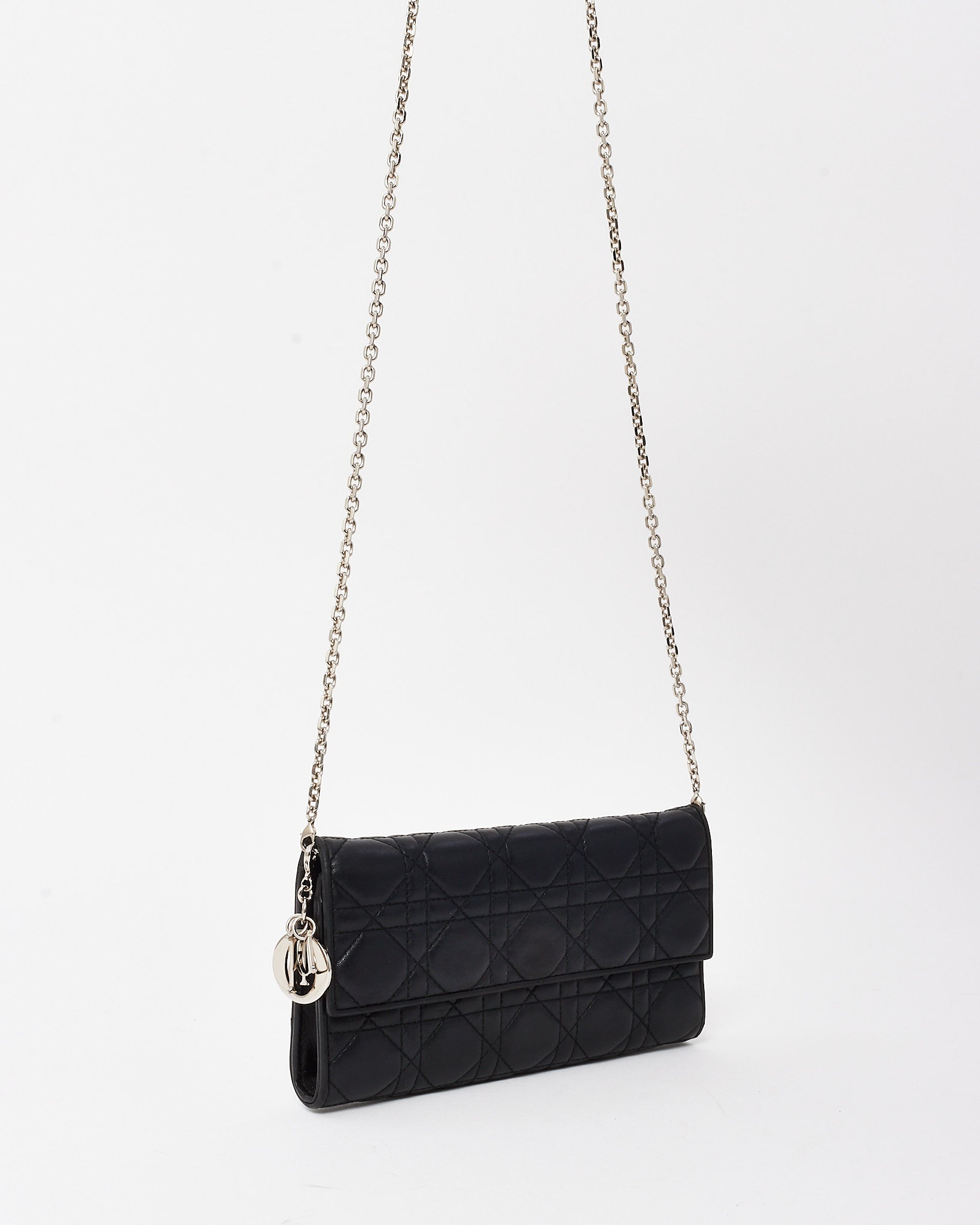 Black Cannage Leather Lady Dior Pouch WOC Crossbody Bag SHW