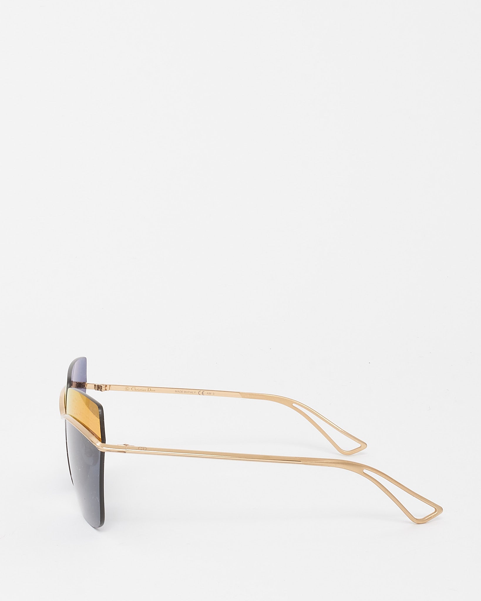 Make a bold statement with these pre-loved authentic Dior DiorMetallic sunglasses, featuring oversized square frames in gleaming gold-tone metal. The mirrored pink lenses add a futuristic edge while offering UV protection. Sleek temples and the signature Dior logo subtly enhance the luxe appeal. Lightweight and fashion-forward, these sunglasses are the perfect accessory to elevate both casual and dressed-up looks with a pop of modern glamour.