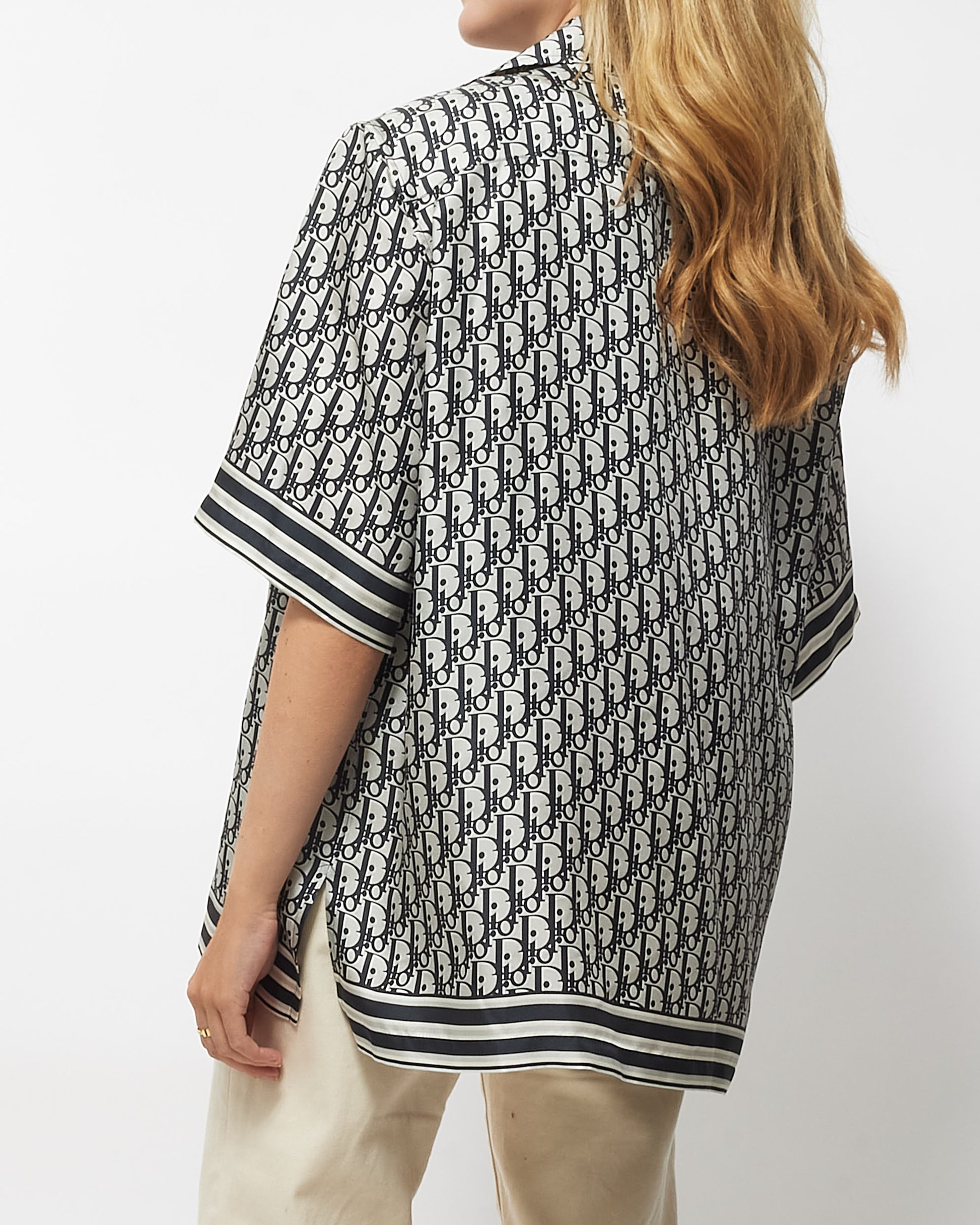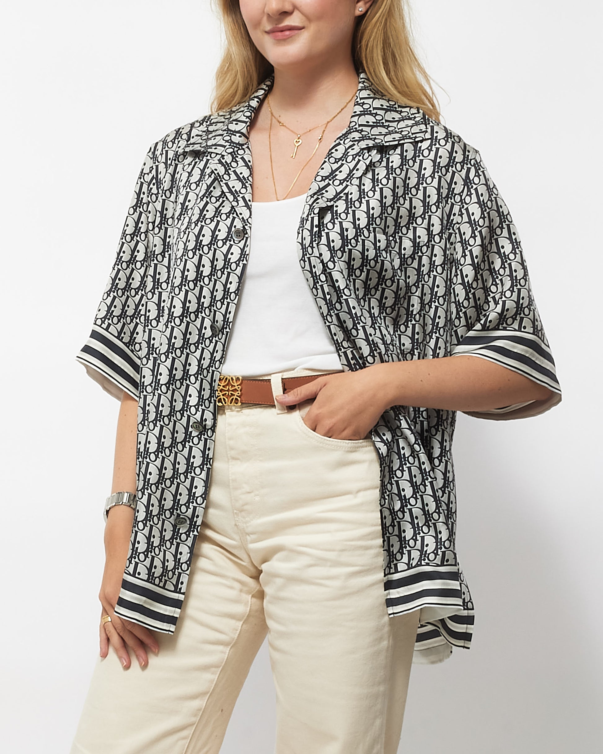 Explore Dior's exquisite collection of clothing, featuring this certified pre-owned Navy Blue Oblique Silk Short Sleeve Collar Blouse - 41. Embodying timeless elegance and modern sustainability, each piece, including favorites like this, is authenticated by Retyche. Discover sustainable luxury — shop our current treasures or find inspiration for your next coveted find.