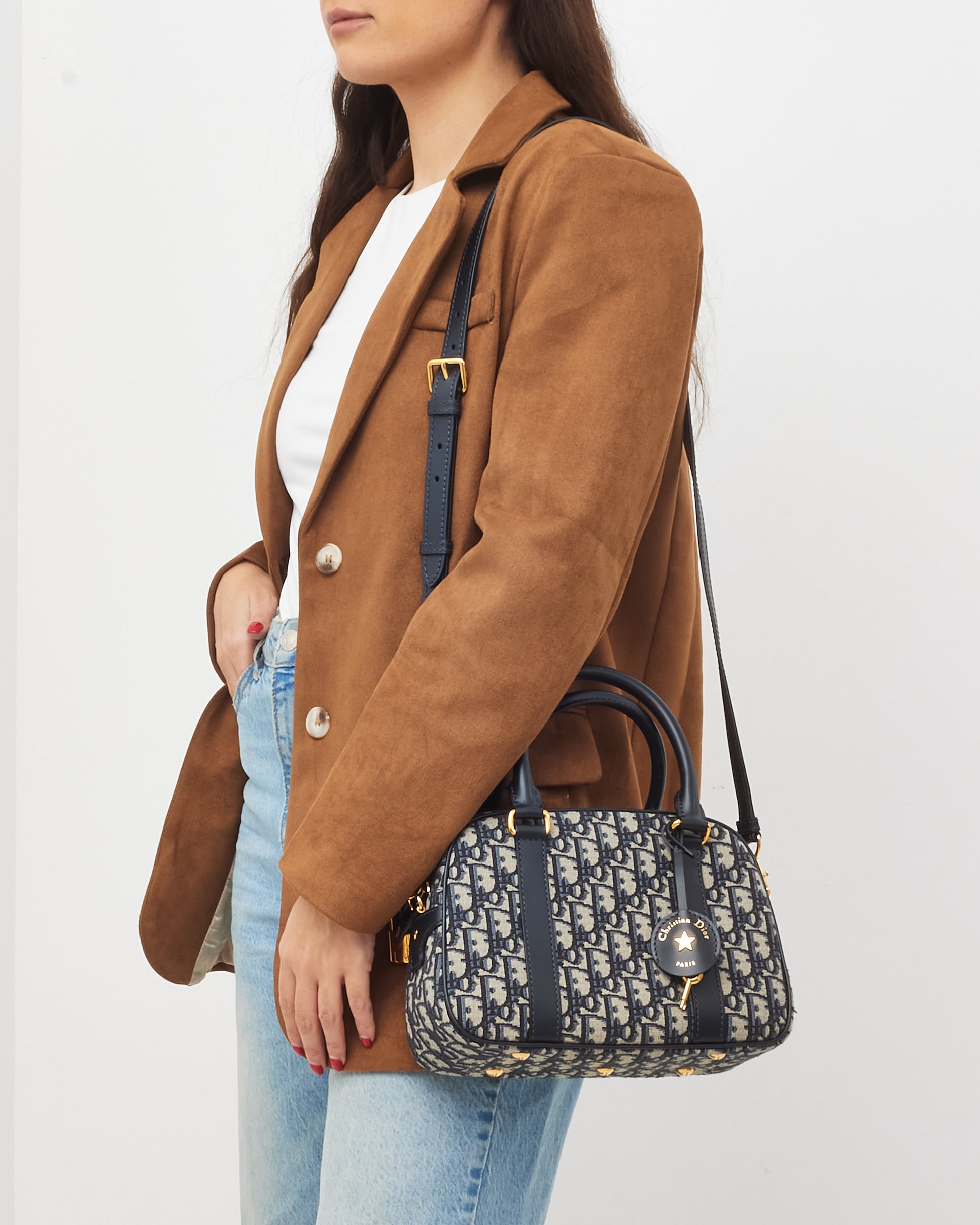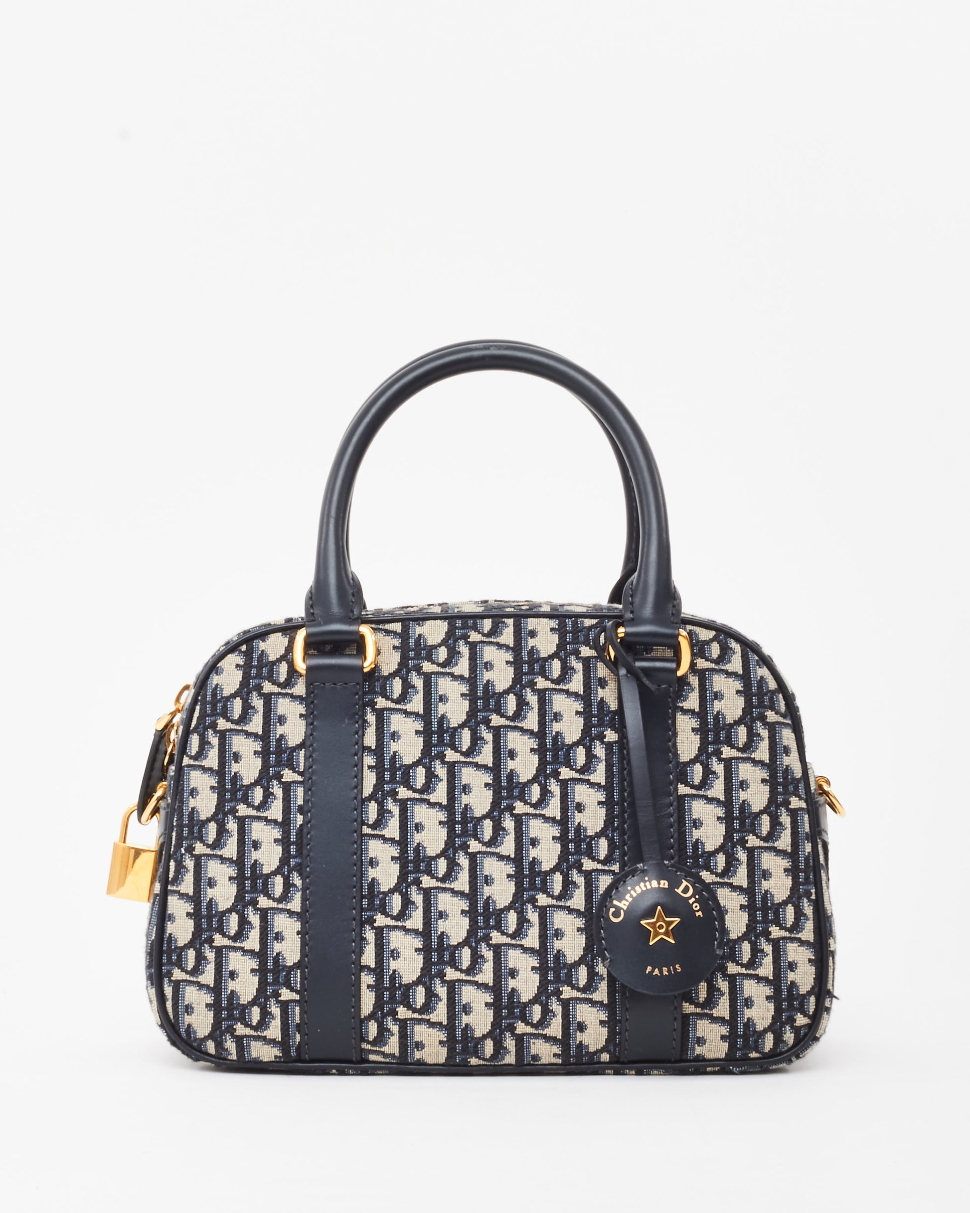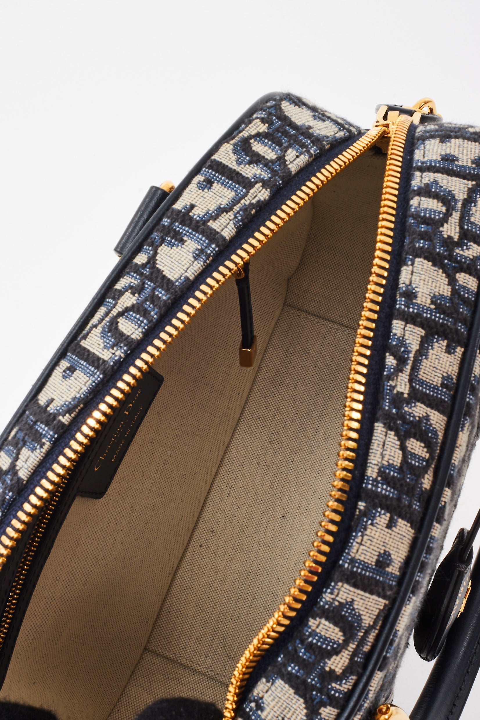 Navy Oblique Monogram Jacquard Canvas Medium D-Vibe Bowling Bag w/ Strap