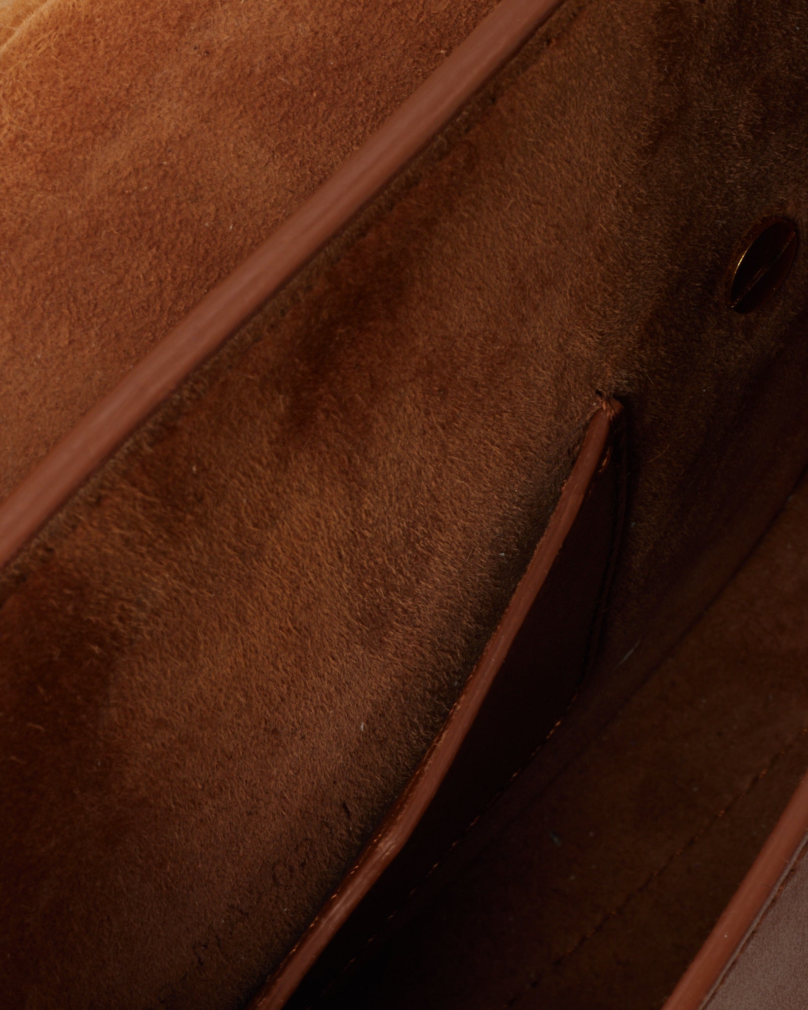 CONDITION SUMMARY: The item shows some signs of wear and use. Slightly worn corners, creases in leather, fraying or wear, and tarnished hardware may be visible. Any noticeable signs of wear will be stated in the images. Pen mark to the upper interior on suede.