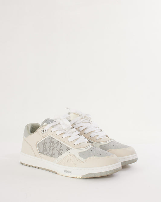 White and Grey Smooth Calfskin Leather Low Top B27 Sneakers - 40