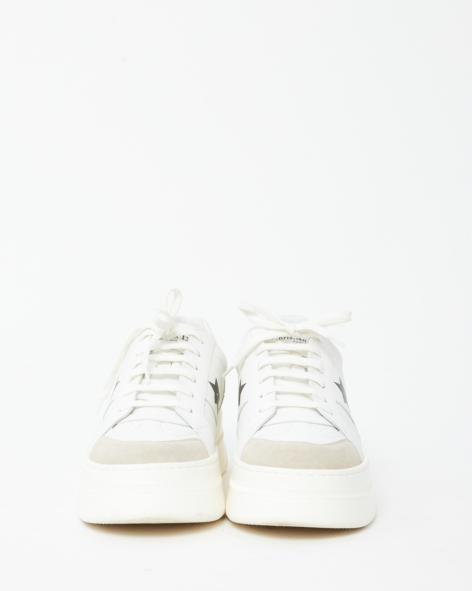Refresh your everyday wardrobe with these pre-loved authentic Dior White Calfskin Leather and Beige Suede Dior Star Sneakers - 39, designed with a sleek low-top silhouette that blends sporty comfort with refined Dior style. Crafted from smooth white calfskin leather and soft beige suede accents, these sneakers feature the signature Dior Star detailing and a clean rubber sole for effortless wear. The neutral palette and classic design make them easy to pair with casual denim, tailored separates, or relaxed weekend looks. A timeless pair of Dior sneakers that deliver both comfort and iconic designer appeal for everyday luxury styling.