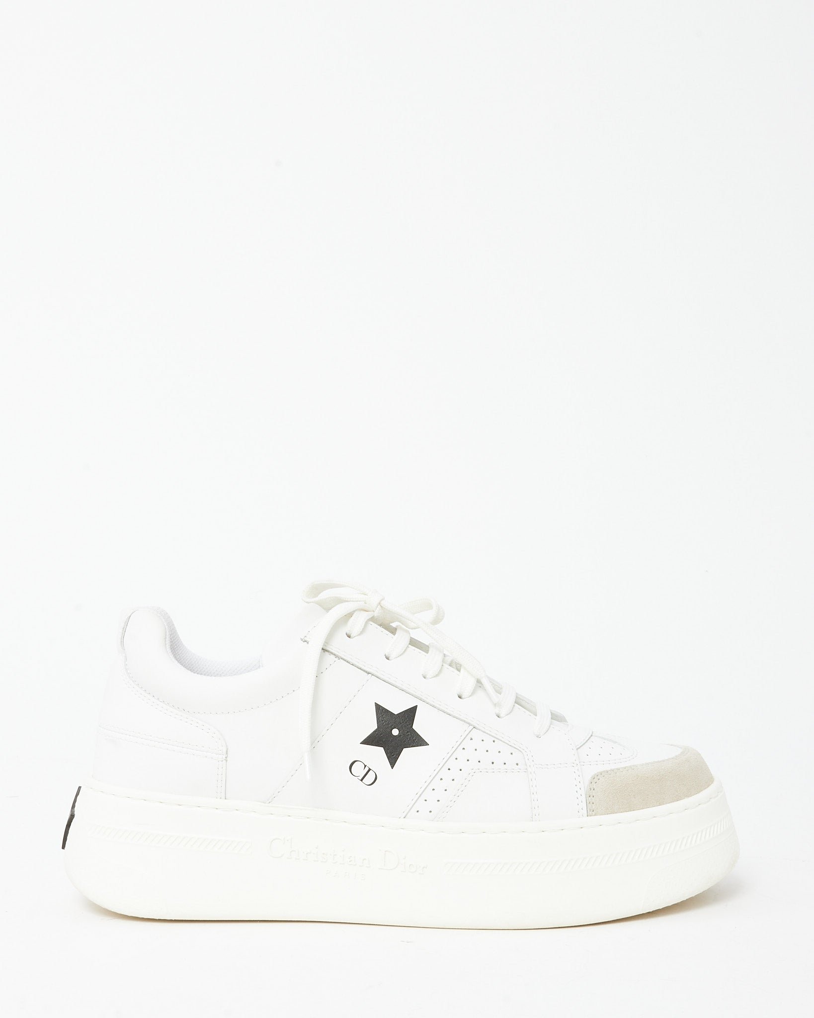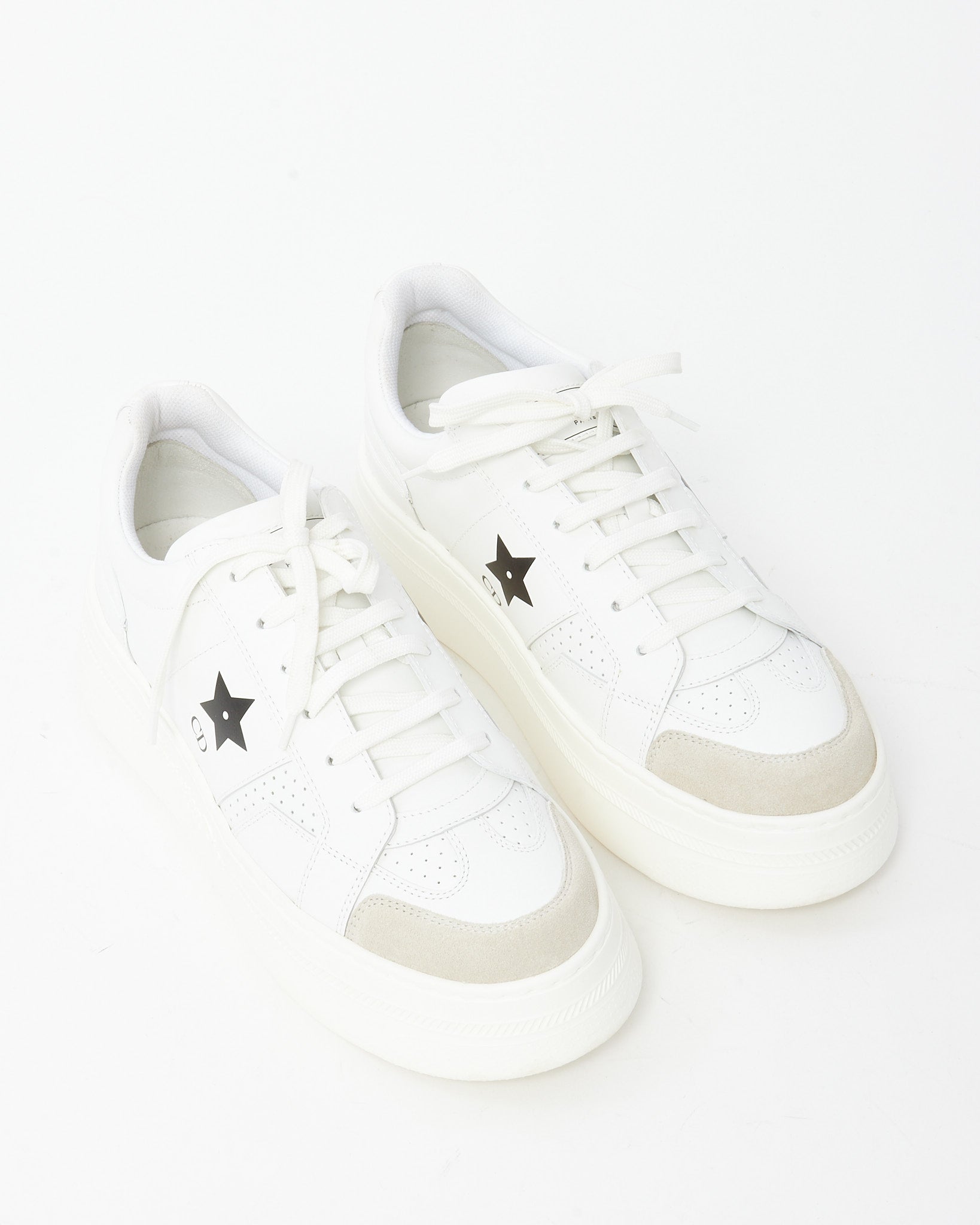 White Calfskin Leather and Beige Suede Dior Star Sneakers - 39