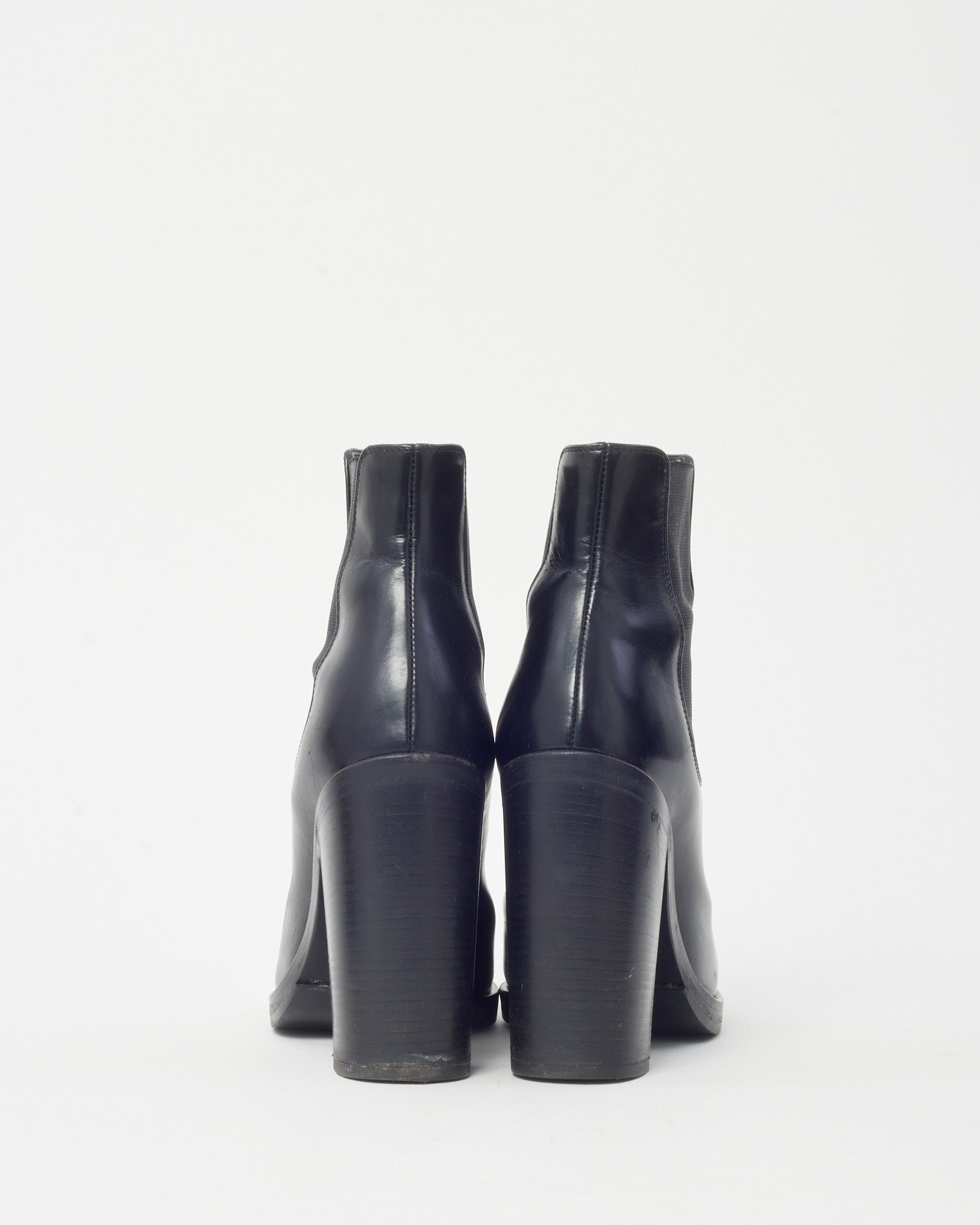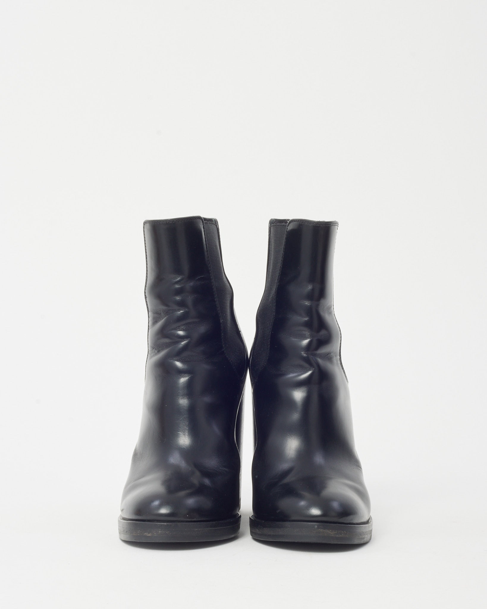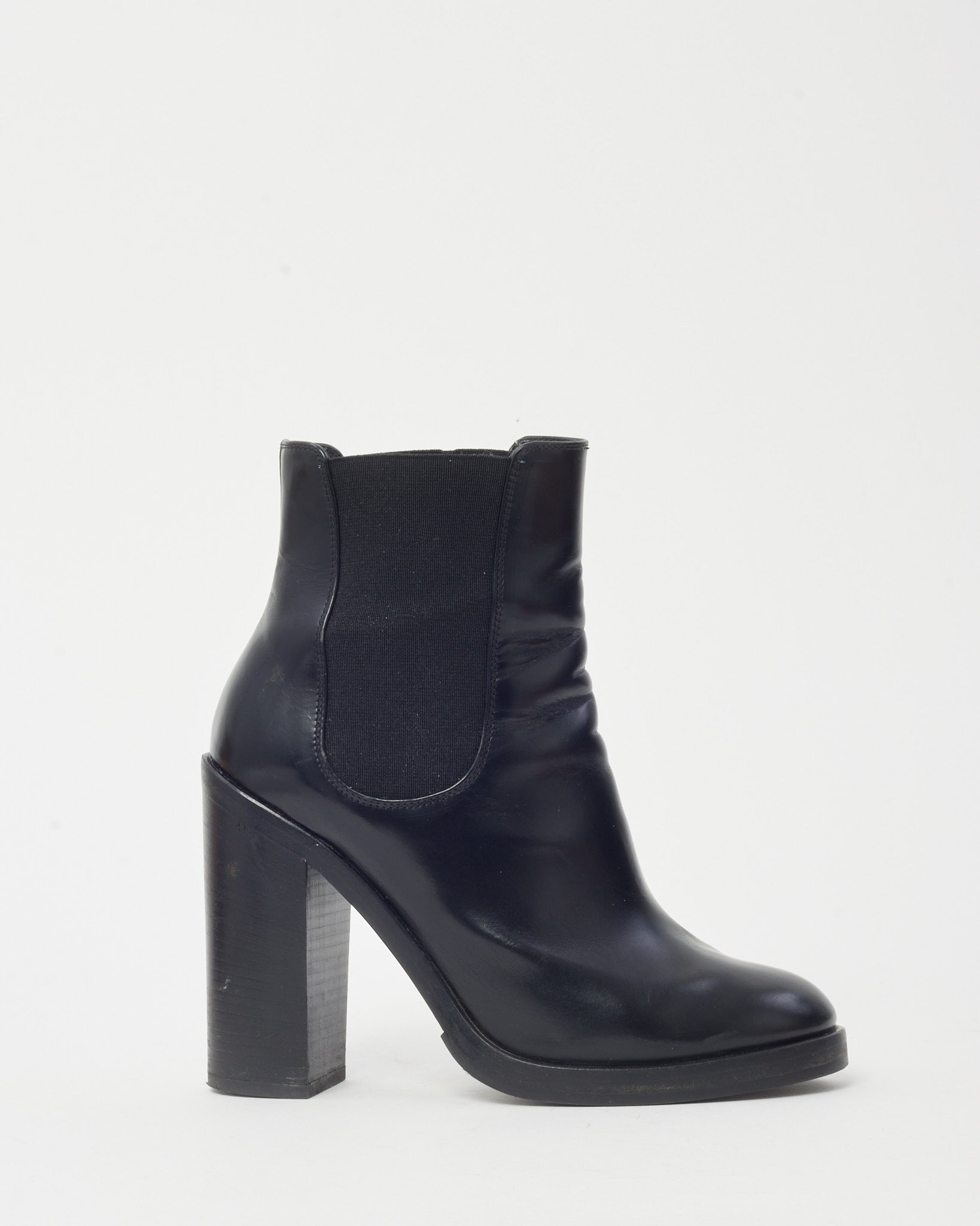 Black Leather and Elastic Round Toe Heeled Booties - 37.5