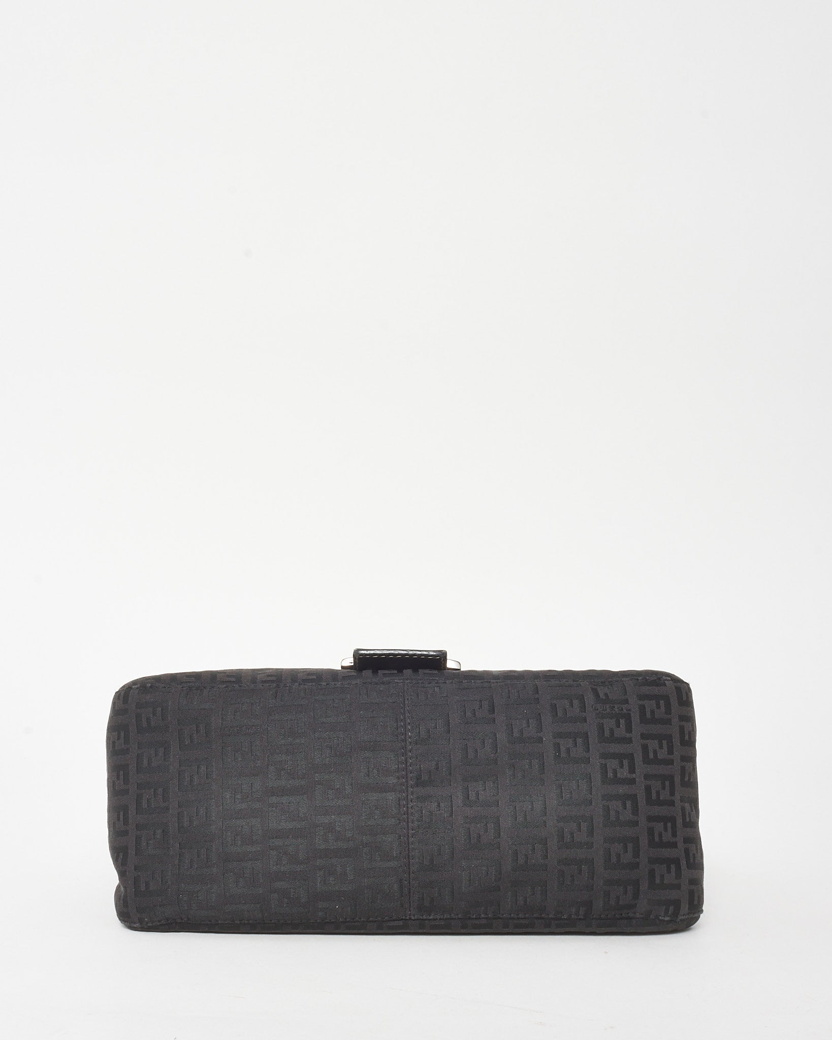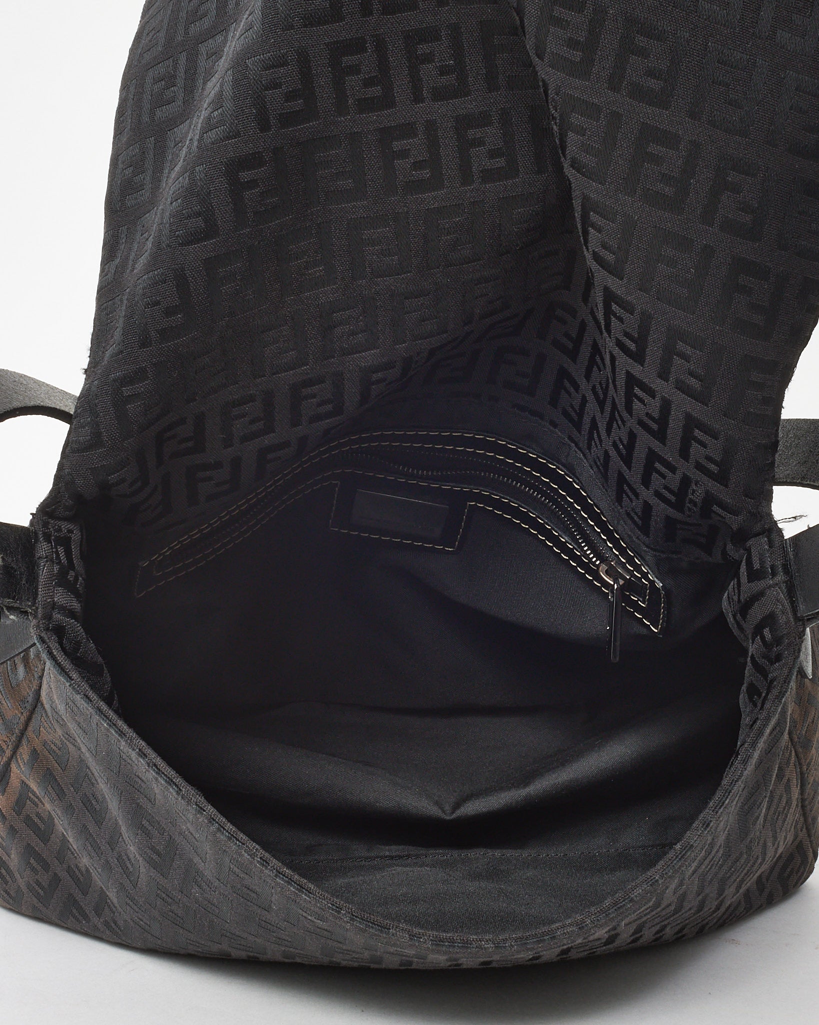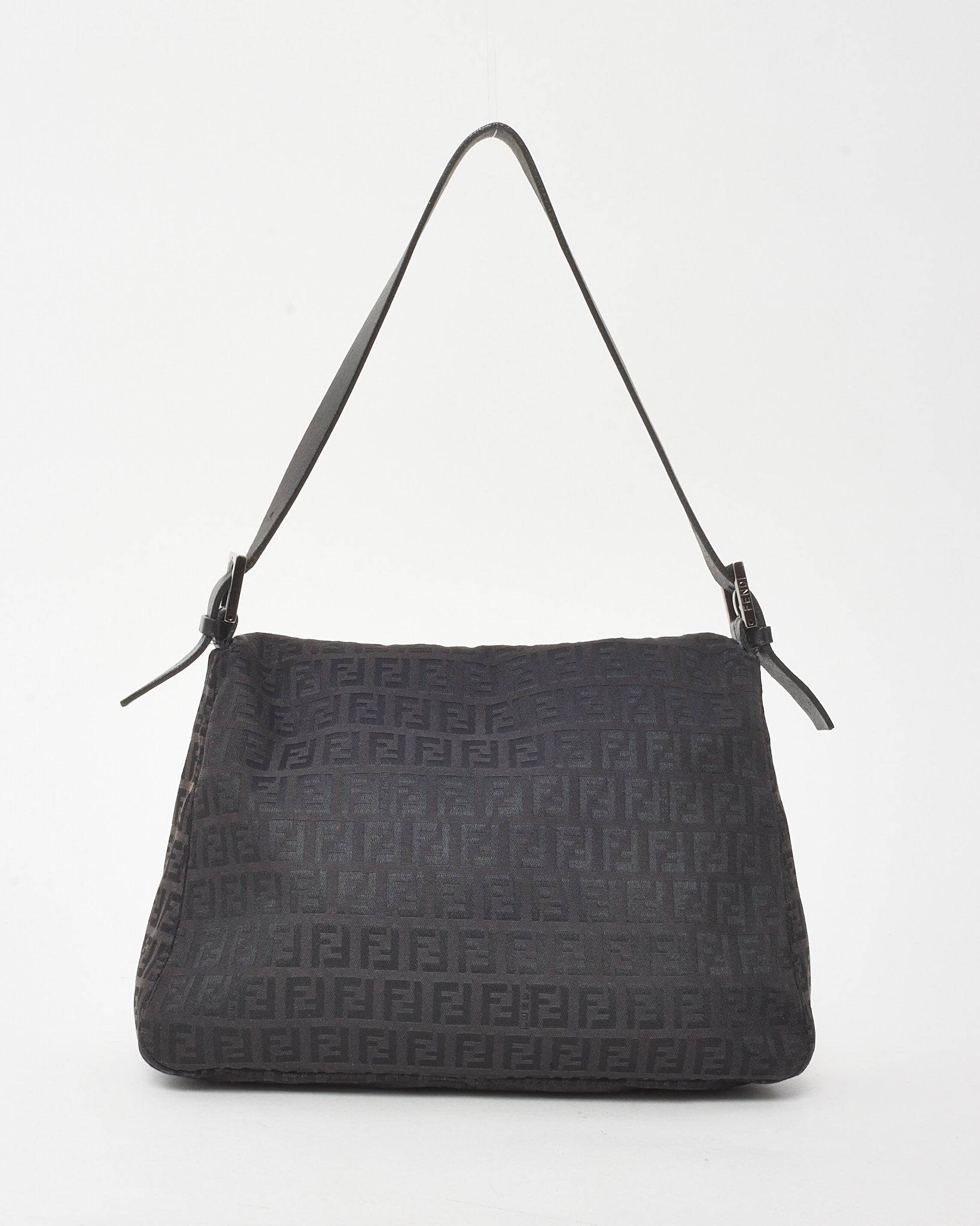 A timeless expression of Fendi’s iconic style, this pre-loved authentic Mamma Forever Baguette Shoulder Bag features black and dark brown Zucchino print canvas with leather trim and silver-tone hardware. The signature flap silhouette is finished with an FF logo buckle and magnetic snap closure, while the adjustable strap ensures versatile carry. A sophisticated everyday essential infused with heritage charm.