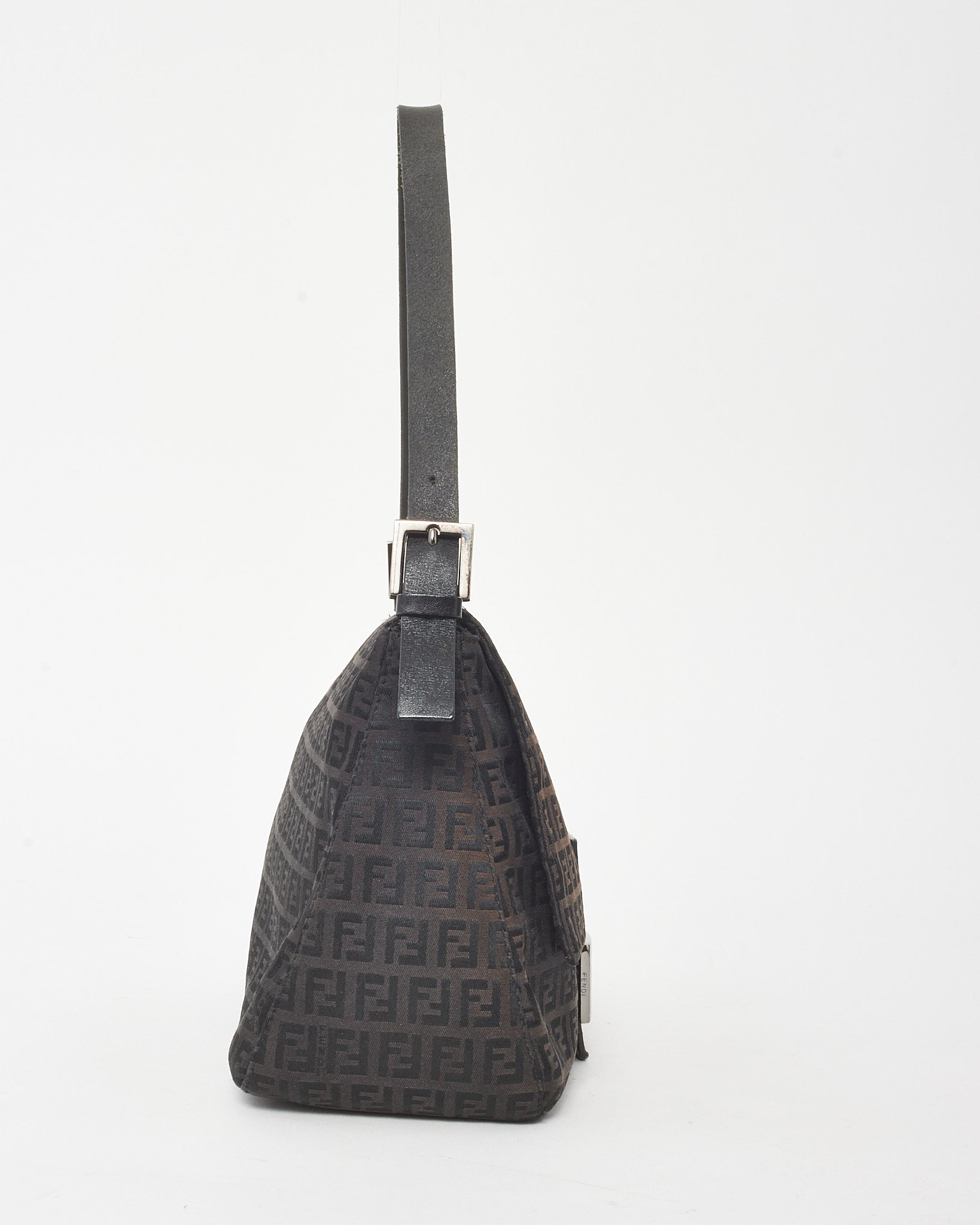 Dark Brown Zucchino Print Canvas Mamma Forever Baguette Shoulder Bag