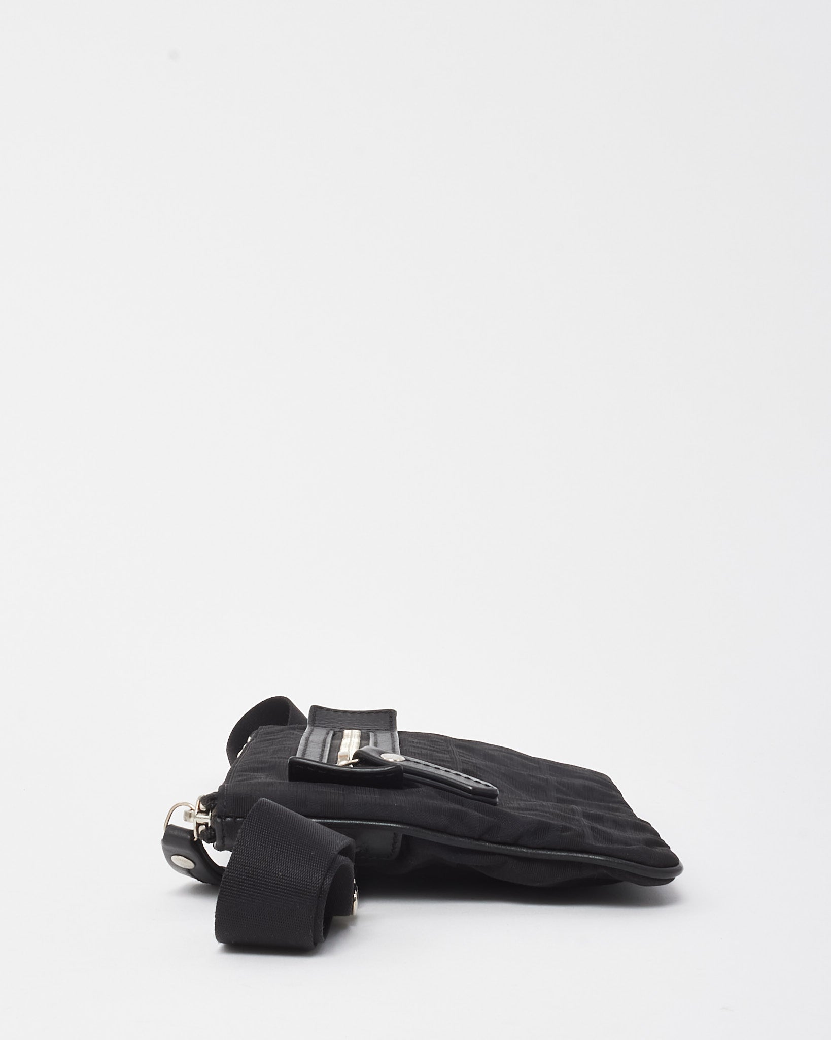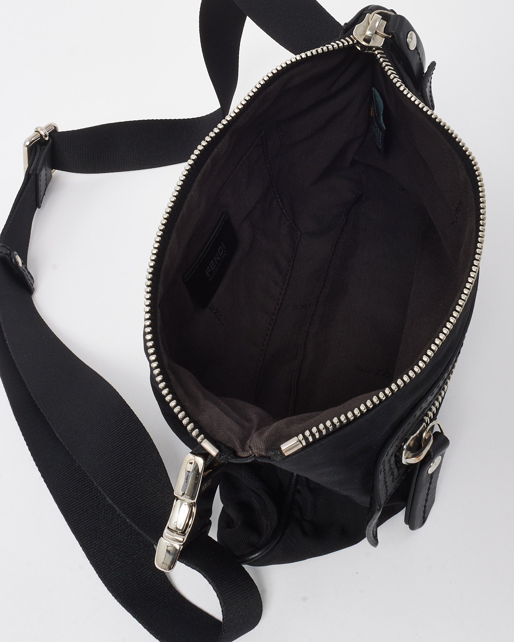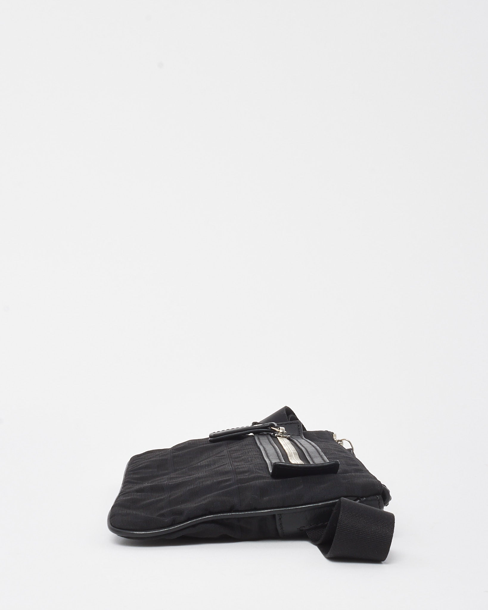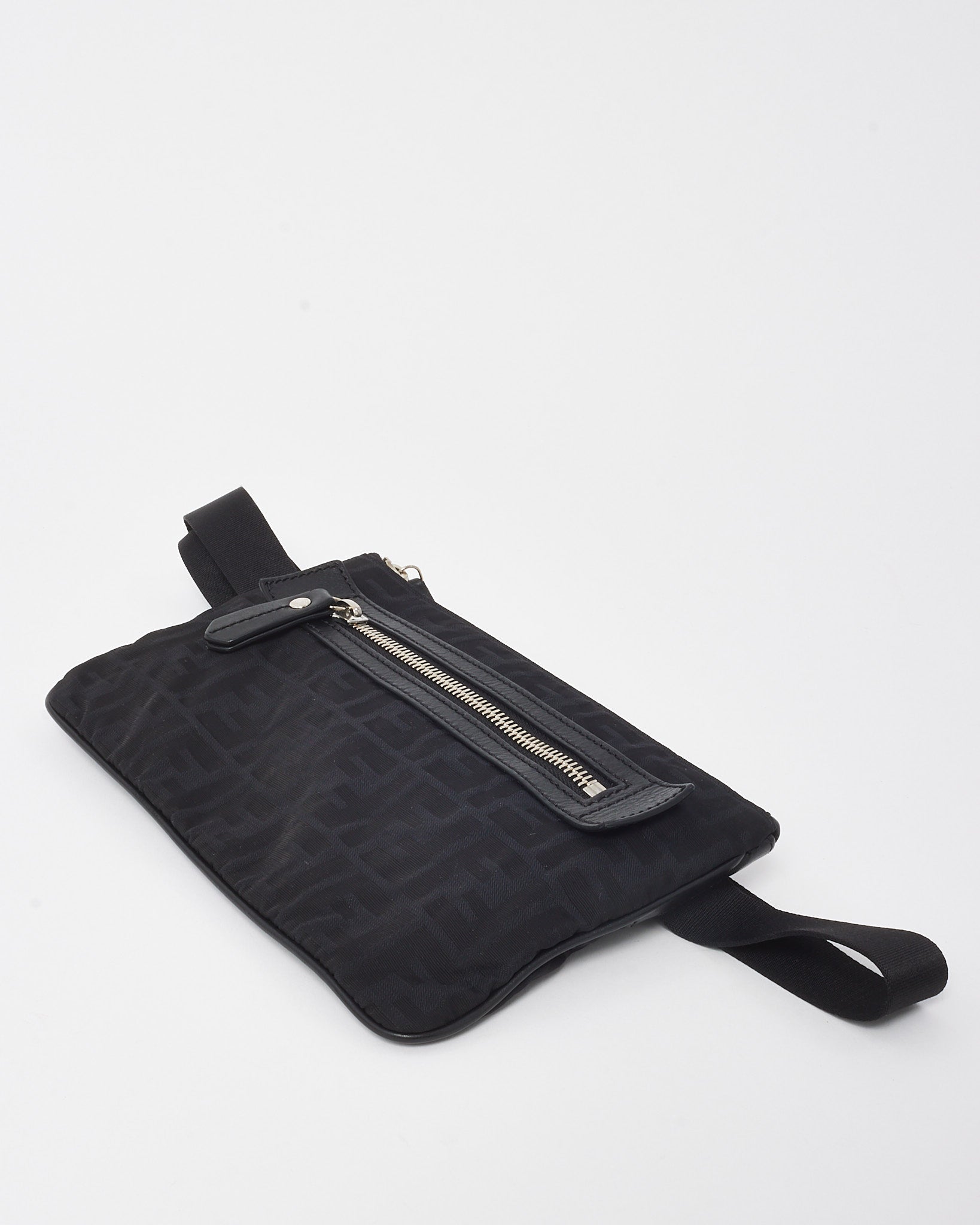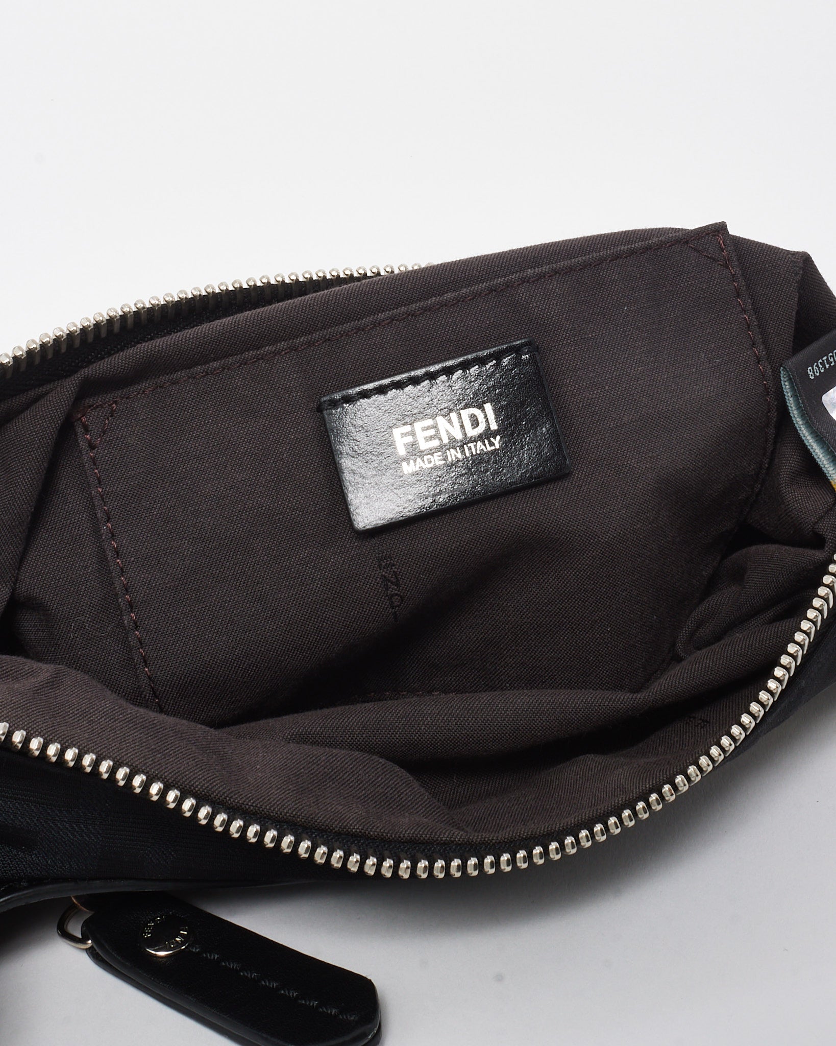 Add sporty sophistication to your accessories rotation with this pre-loved authentic Fendi Black FF Zucca Print Nylon Zip Belt Bag. Crafted from durable black nylon and adorned with Fendi’s iconic FF Zucca logo print, this belt bag is both practical and fashion-forward. The compact silhouette features a zippered main compartment, adjustable strap for waist or crossbody wear, and sleek black leather detailing for a refined finish. Ideal for hands-free convenience, this piece effortlessly combines luxury streetwear styling with everyday functionality, making it the perfect companion for travel, errands, or casual outings.