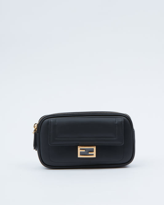 Black Leather Mini Wallet On Chain Crossbody Bag