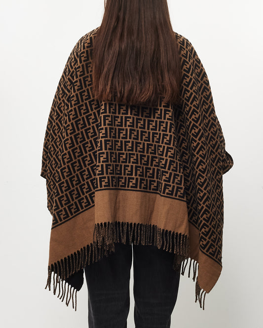 Wrap yourself in iconic luxury with the authentic pre-owned Fendi Brown Zucca Print Wool & Fleece Poncho. Crafted from soft and cozy wool and fleece, this poncho features Fendi’s signature brown Zucca print, making it a bold yet timeless statement piece.