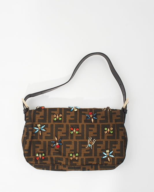 Tobacco Zucca Print Canvas Crystal Embellished Baguette Shoulder Bag
