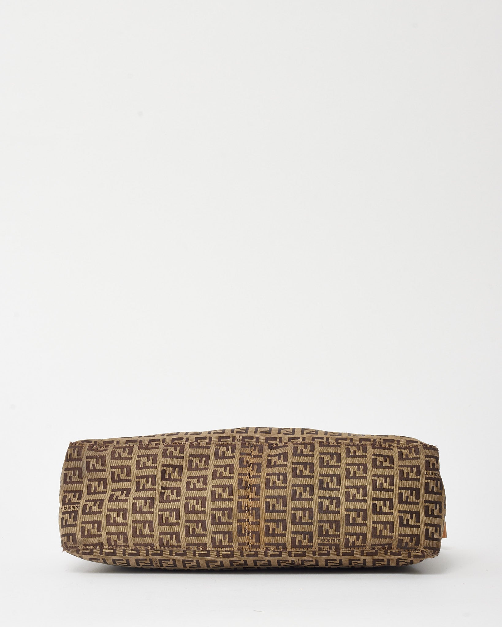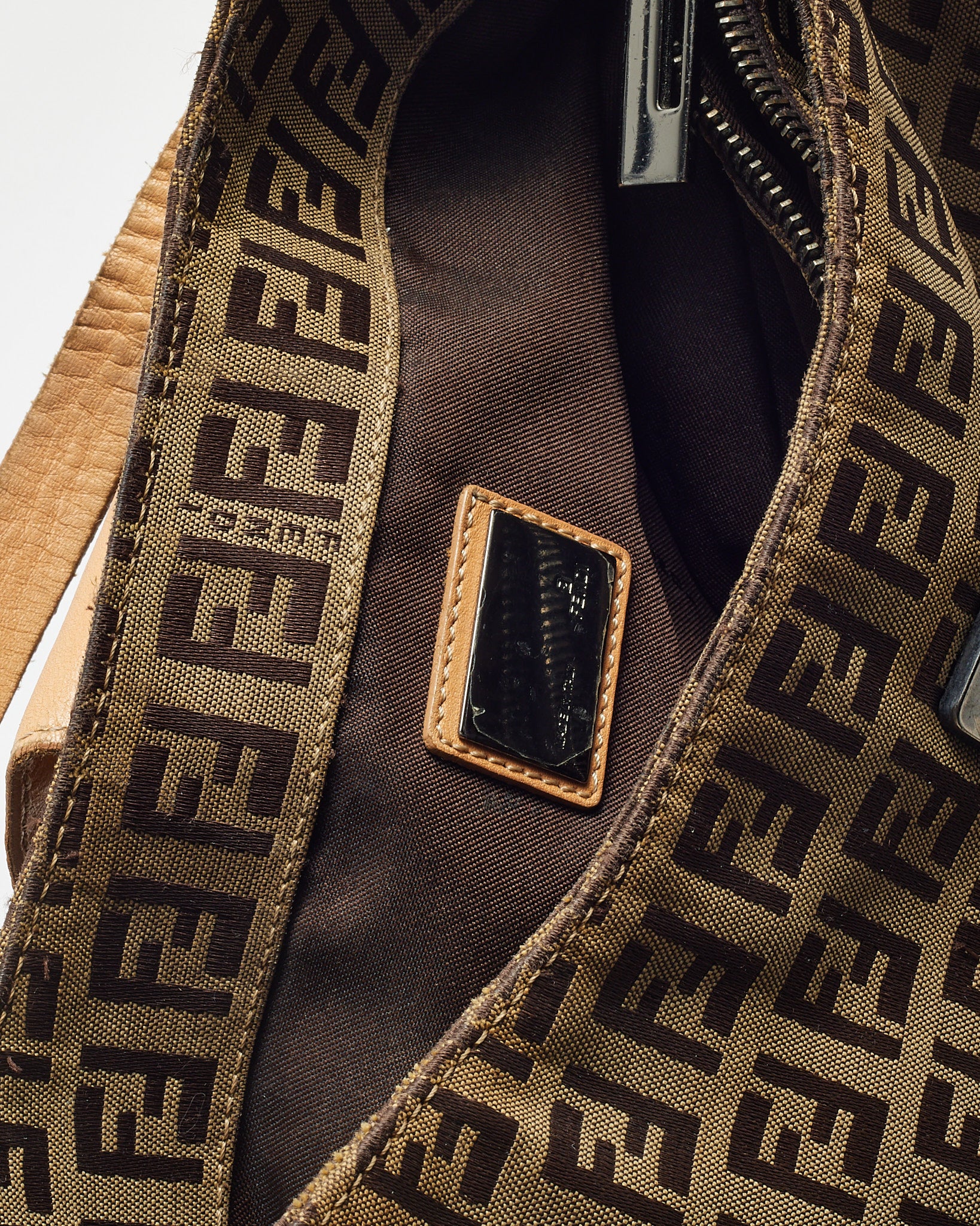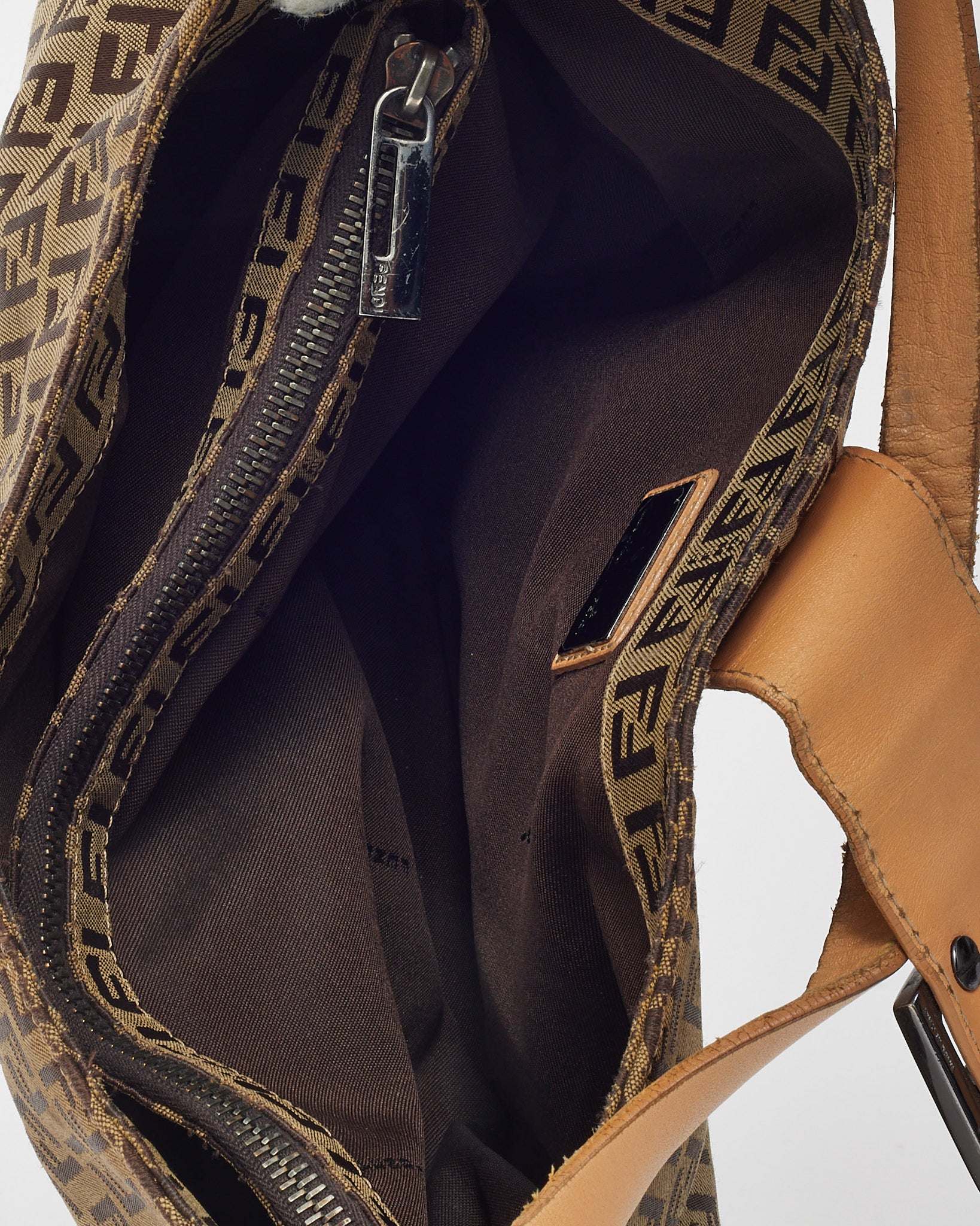 Vintage Beige Leather and Brown FF Zucchino Canvas Hobo Shoulder Bag