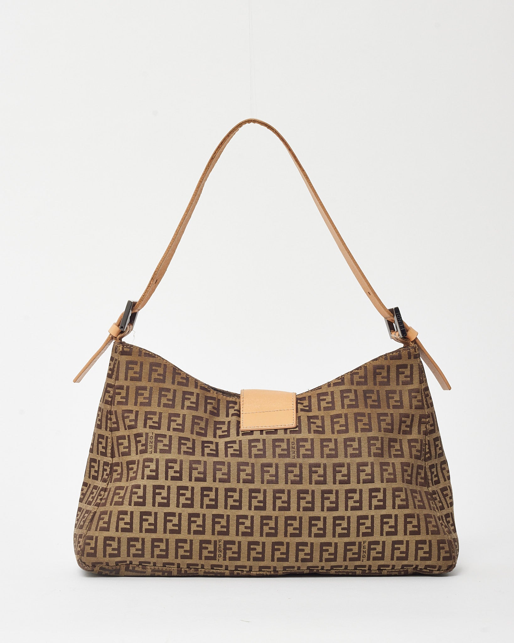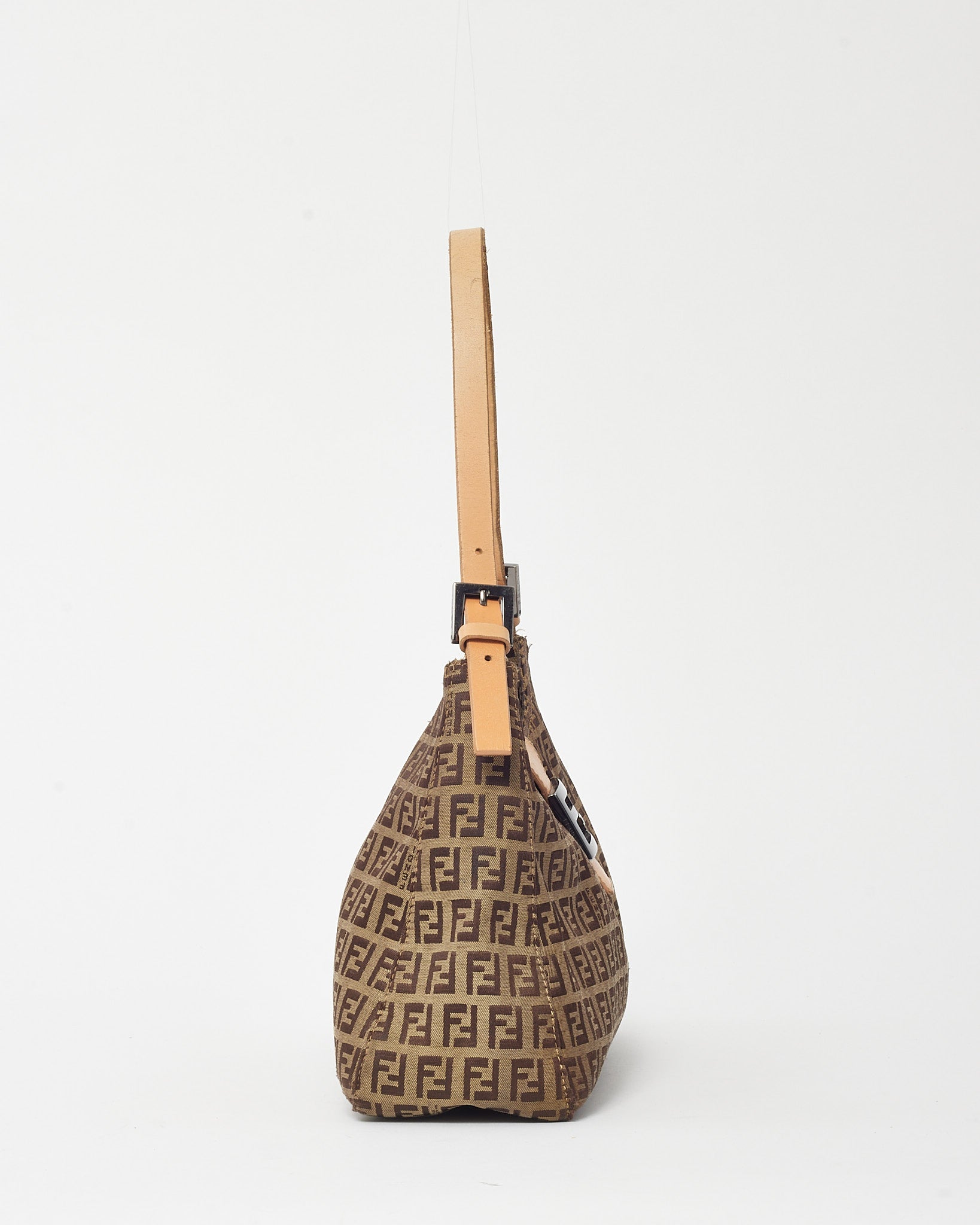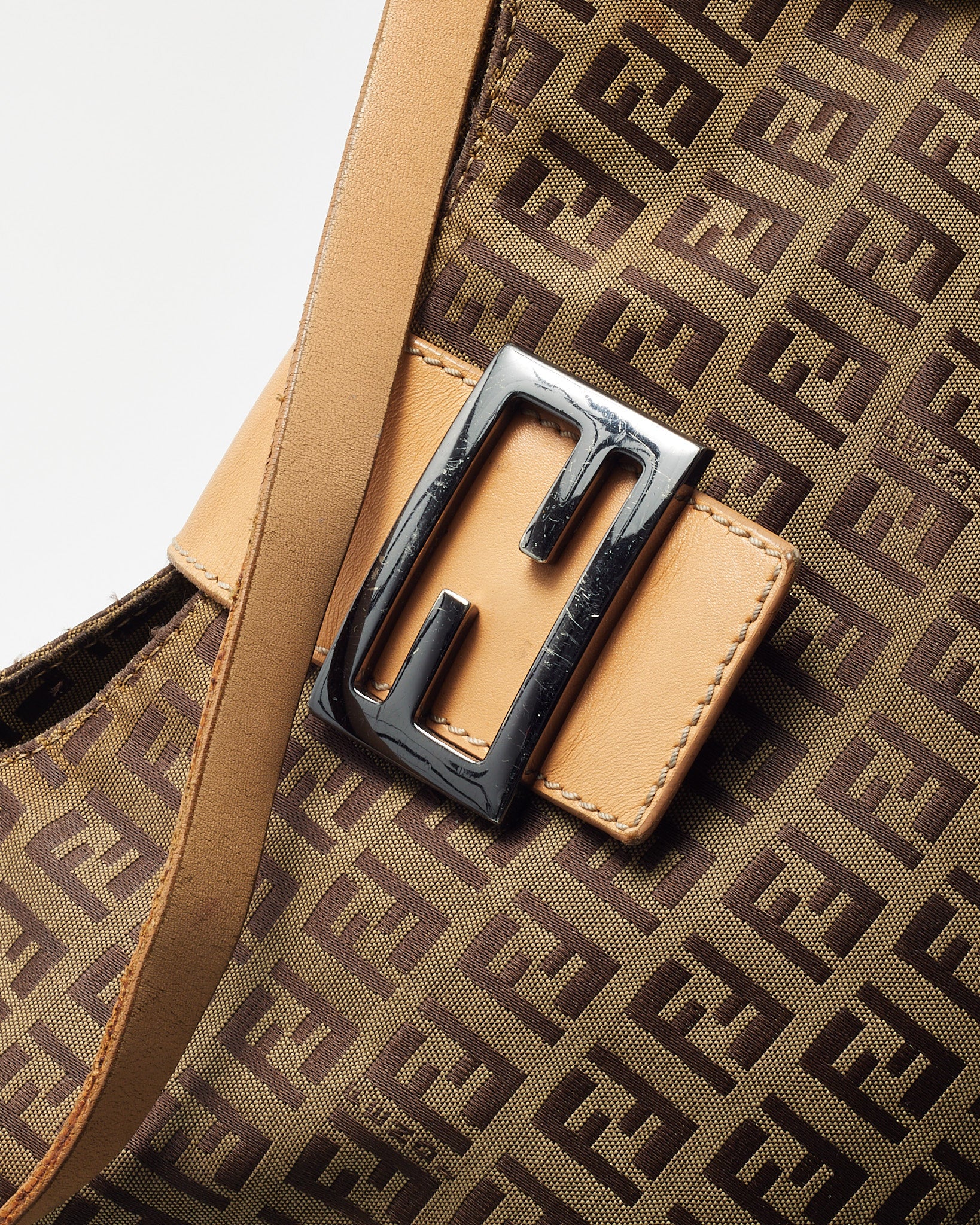 Vintage Beige Leather and Brown FF Zucchino Canvas Hobo Shoulder Bag