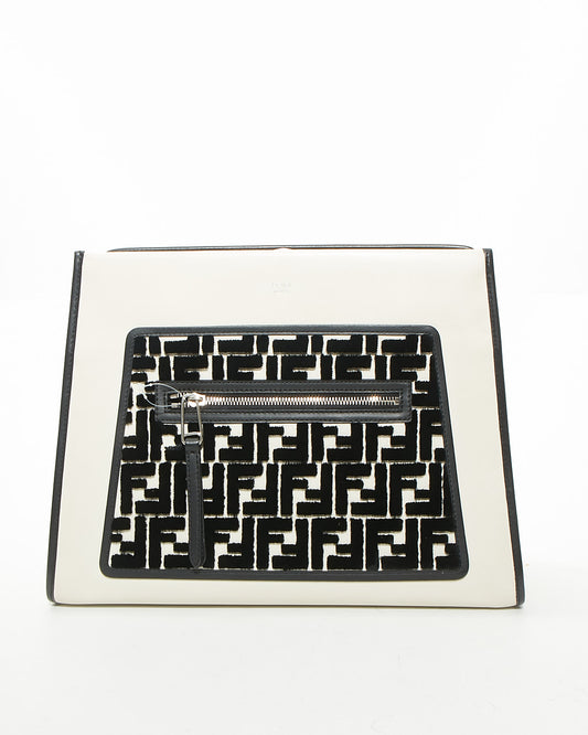 White Leather Zucca Velvet Print Runway Shopping Tote Bag